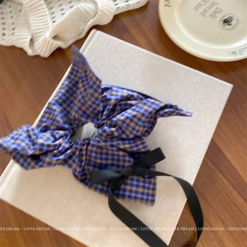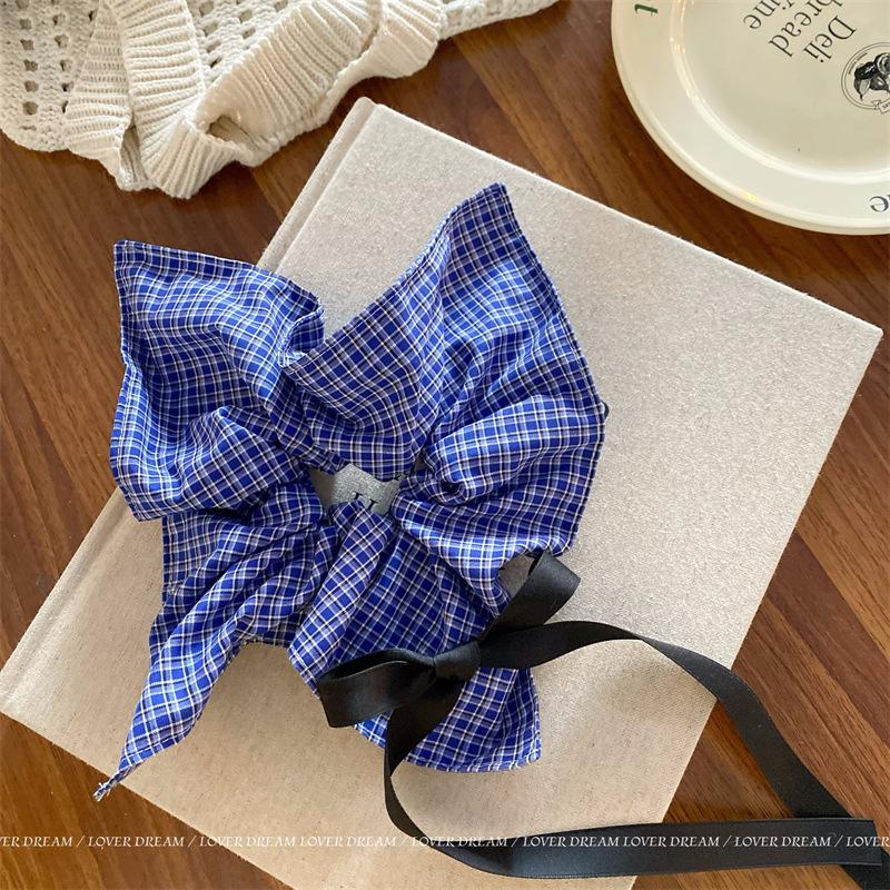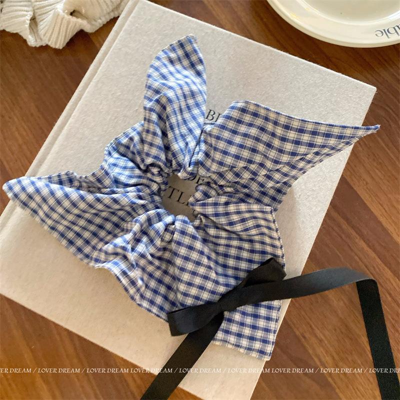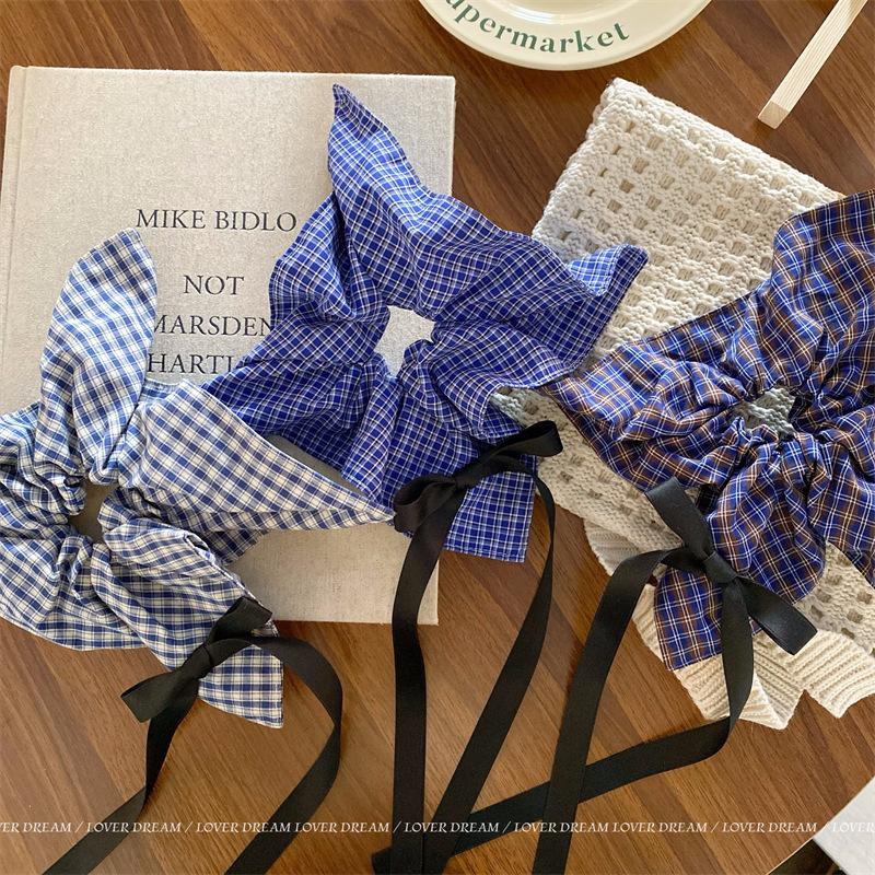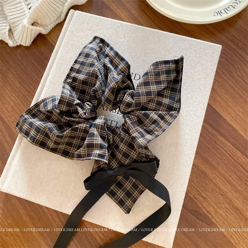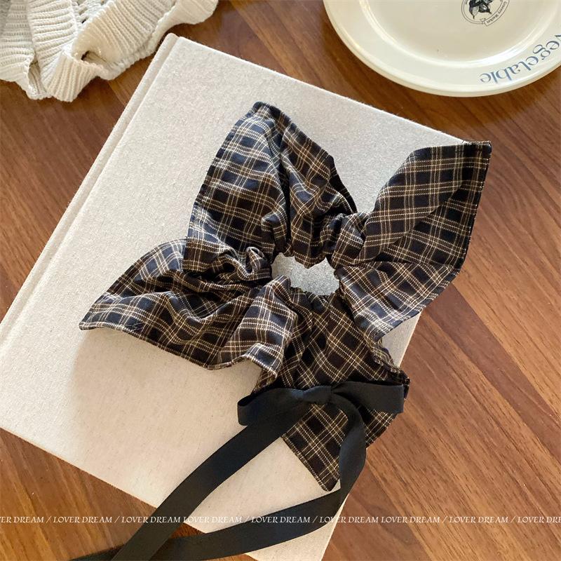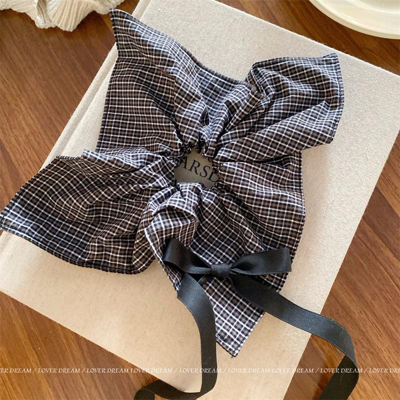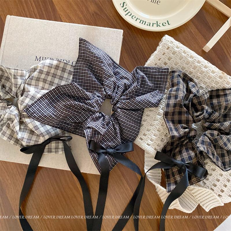 Corea del Sur Ins Nuevo Estilo Lazo de Cinta Negra Cuadros Anillo para el Cabello de Intestino Grueso Grande Moda Accesorios para el Cabello de Alta Textura para Mujeres