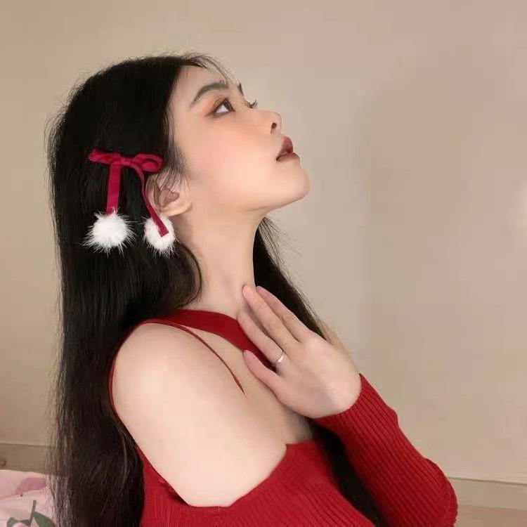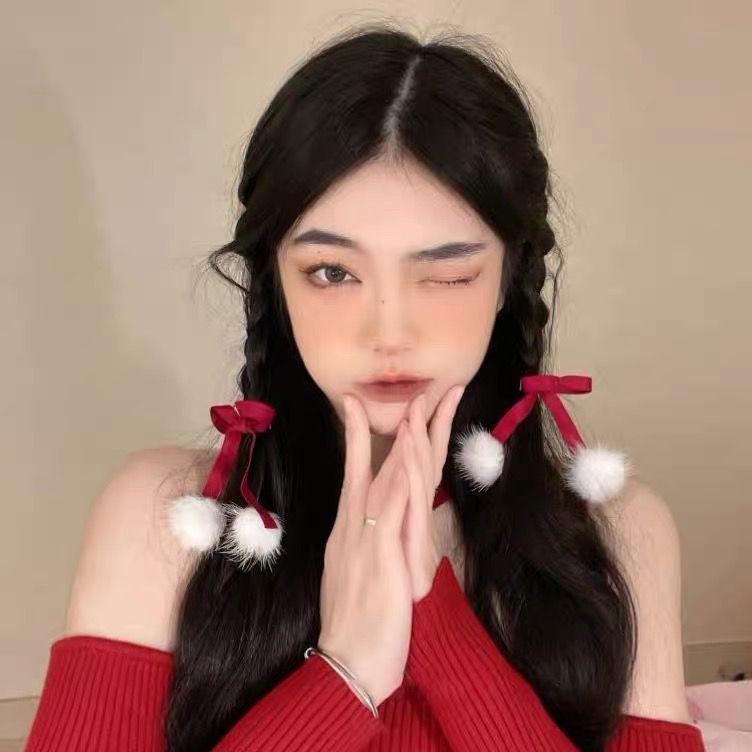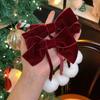 Horquilla de Lazo con Bola de Pelo Rojo Terciopelo para Mujer 2025 Adorno para la Cabeza de Año Nuevo Decoración Navideña