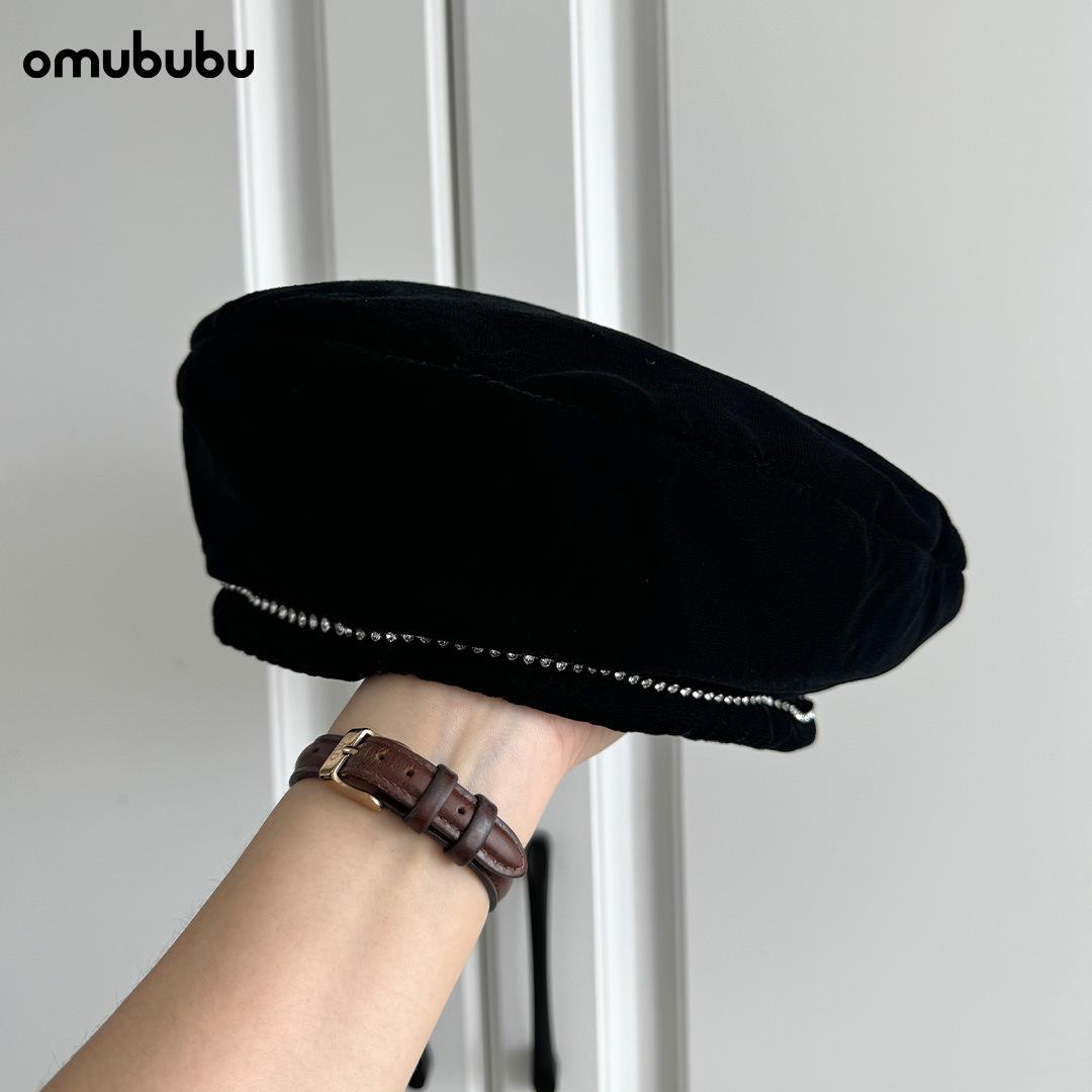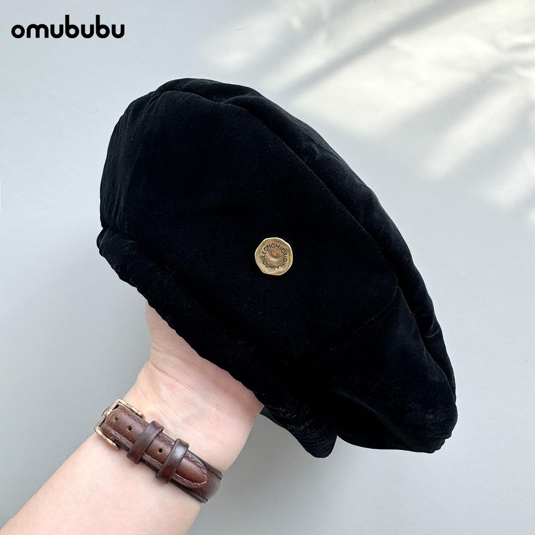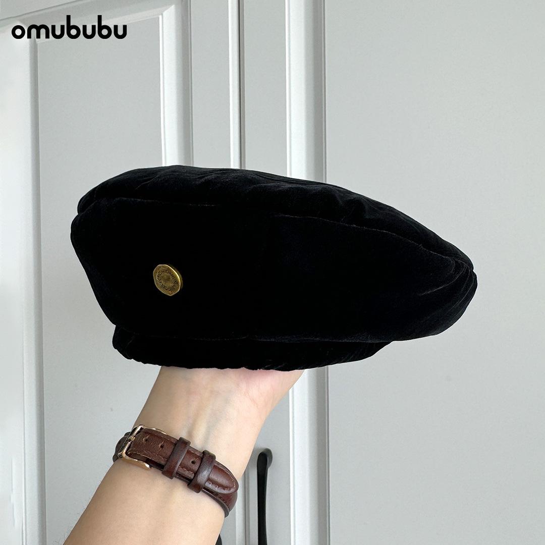 Boina negra para mujer, otoño e invierno, con cara mostrada, pequeña, de moda, combinable, estilo británico, para hija, pintora.