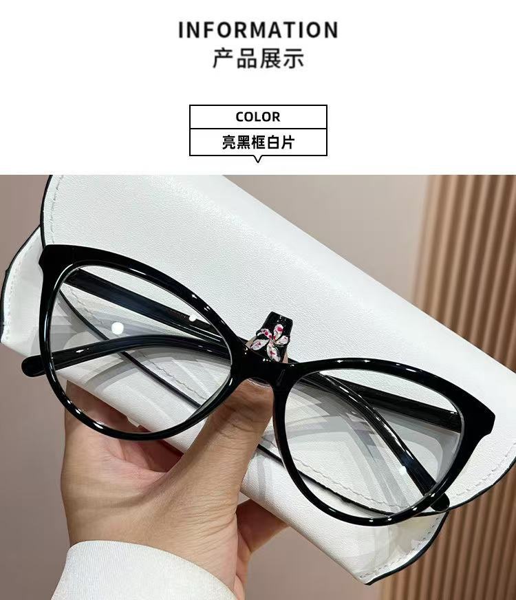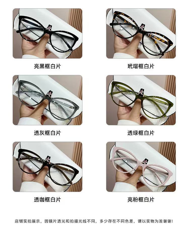 Montura de gafas de ojo de gato europea y americana para mujer sin maquillaje, con diseño decorativo para miopía y graduación, gafas planas ultraligeras con protección contra la luz azul.