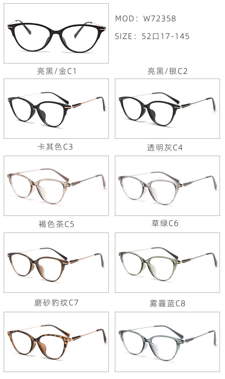 Montura de gafas para miopía TR90 ultraligera, moderna, con diseño de ojo de gato, antiazul, soporte para montura, venta al por mayor, 72358