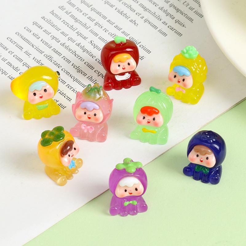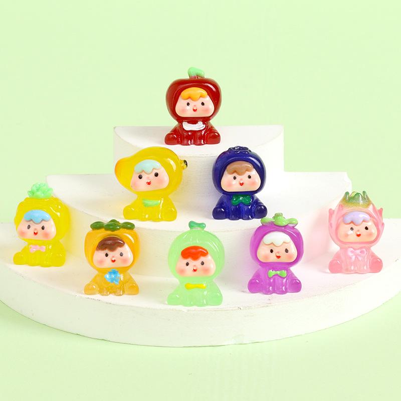 Mini cachorros de fruta de cuatro generaciones de resina luminosa de alta calidad, adorables accesorios de bricolaje, juego de moda, adornos pequeños creativos de escritorio