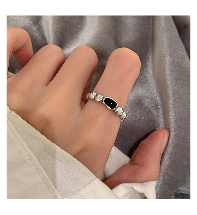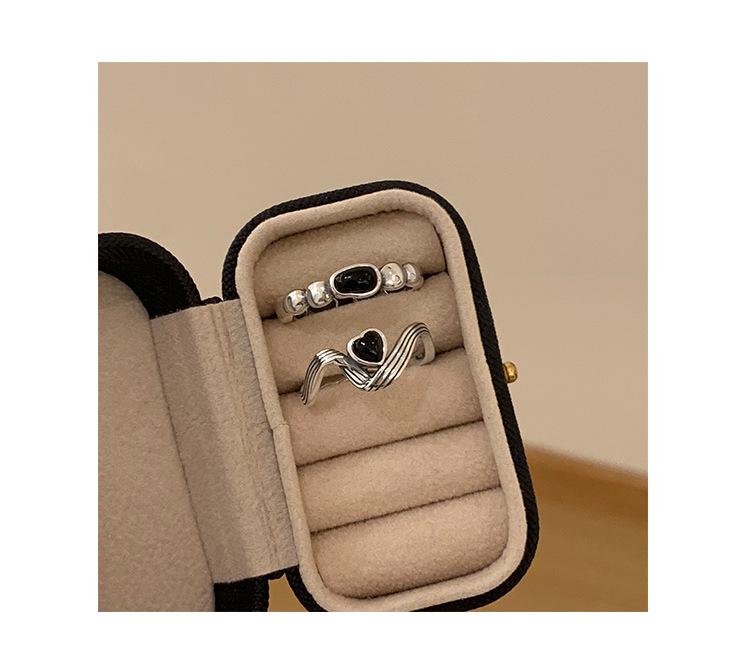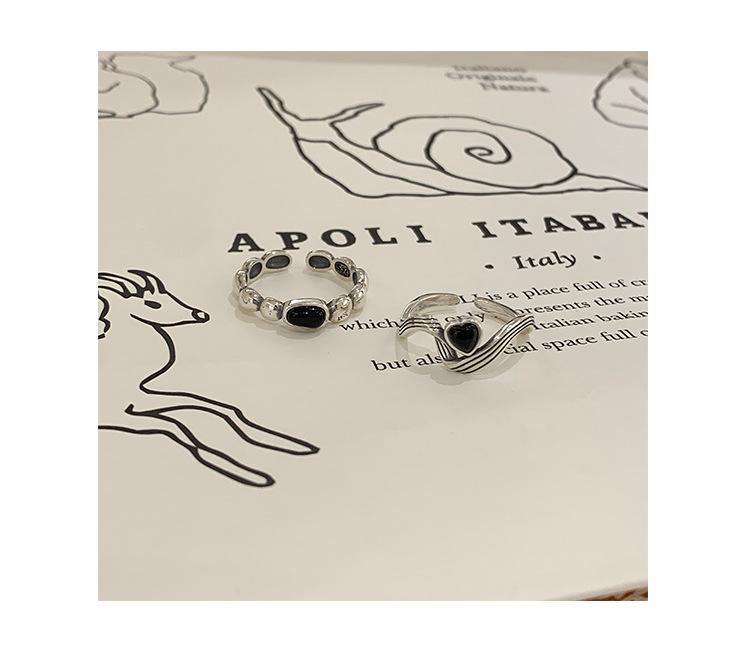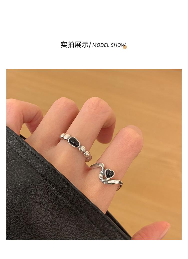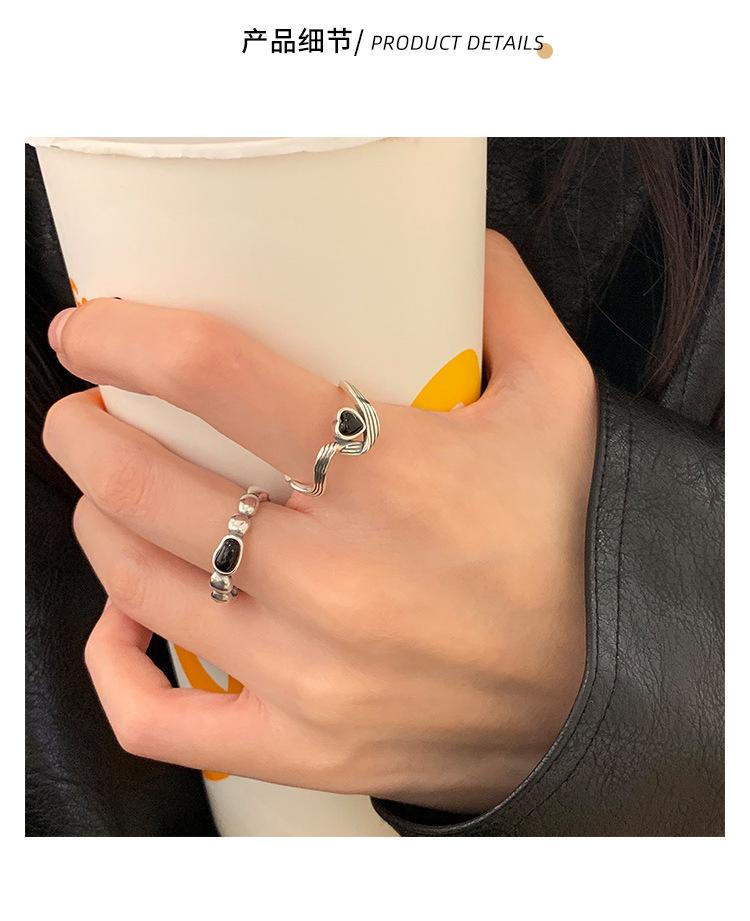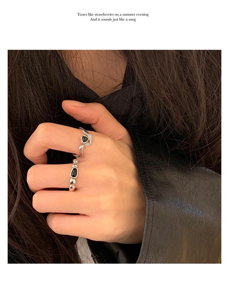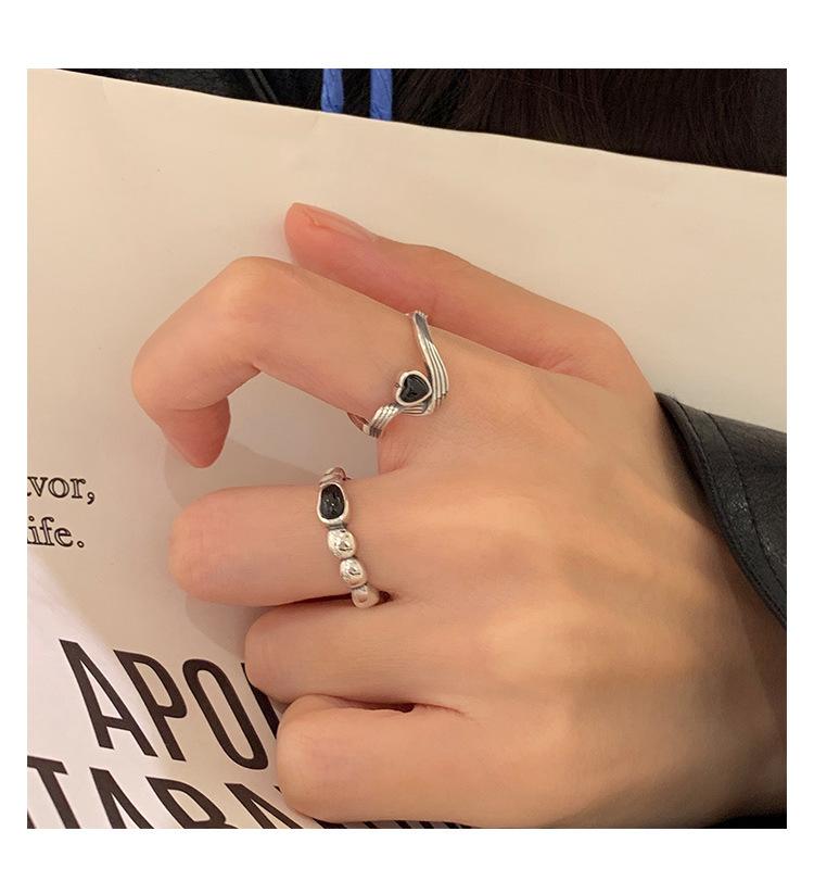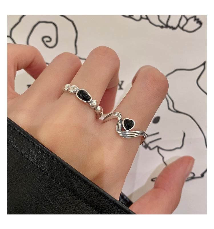 Anillo de Corazón Negro para Mujer Anillo Abierto Sencillo Geométrico de Onda Plateado en Plata S925 Estilo Ins Anillo para el Dedo Índice Moderno