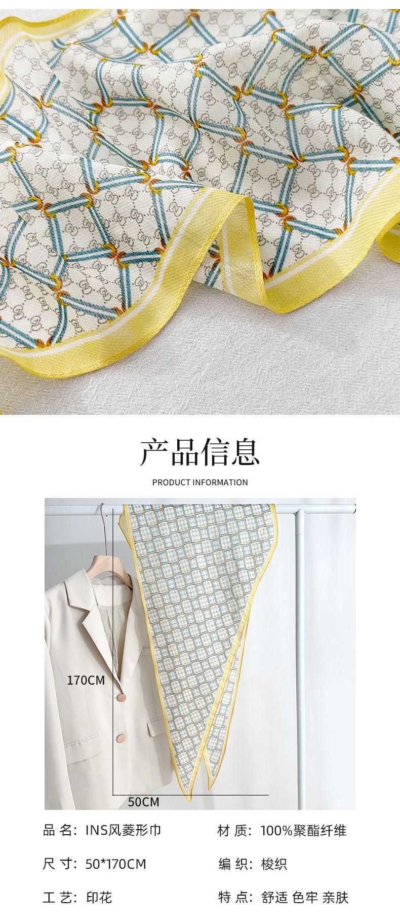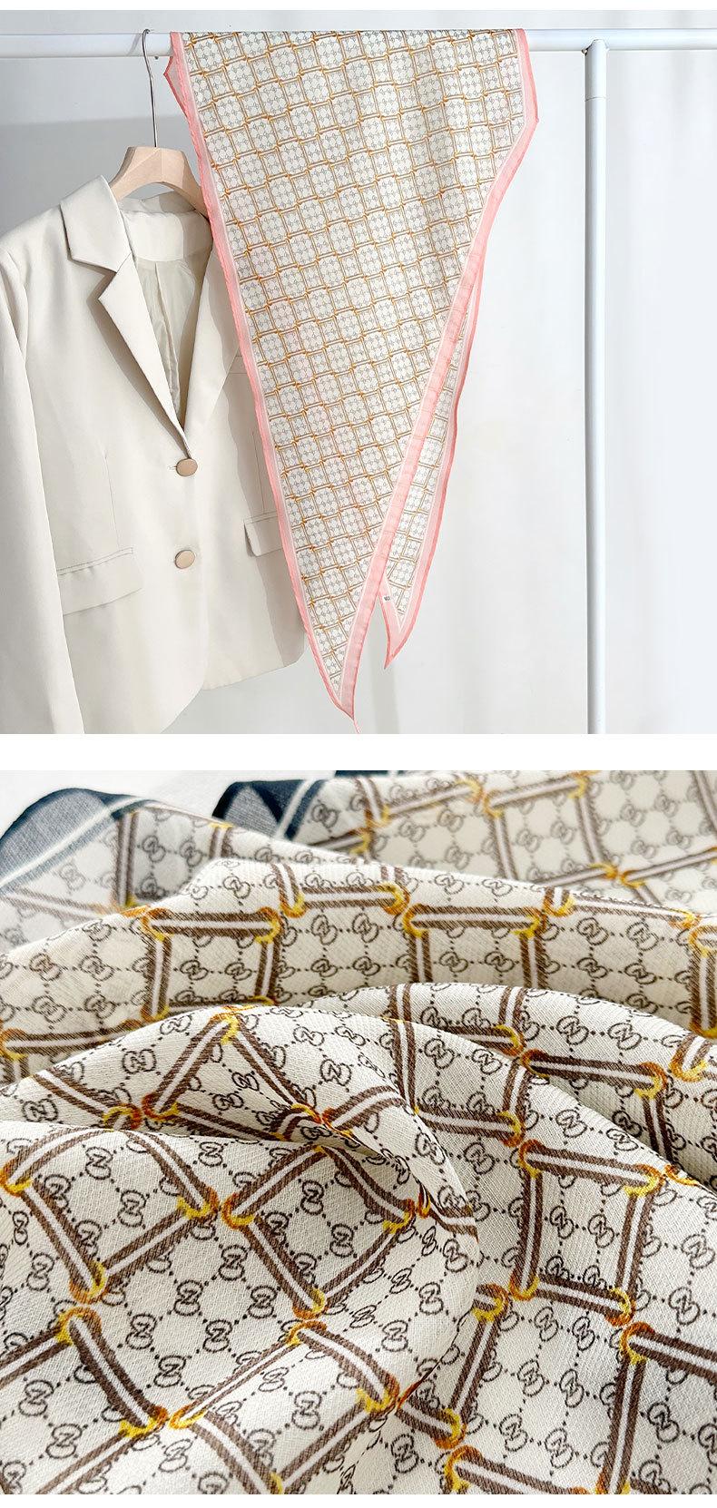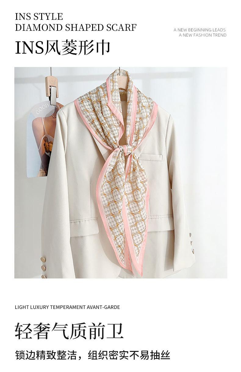 Sentido del diseño temperamento simple imitación seda bufanda de diamantes versión coreana estilo INS señoras sensación de alta gama pequeño pañuelo de seda estampado fresco