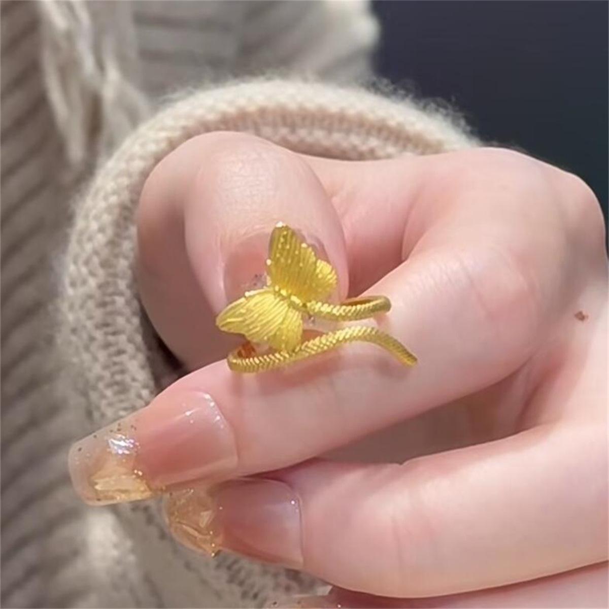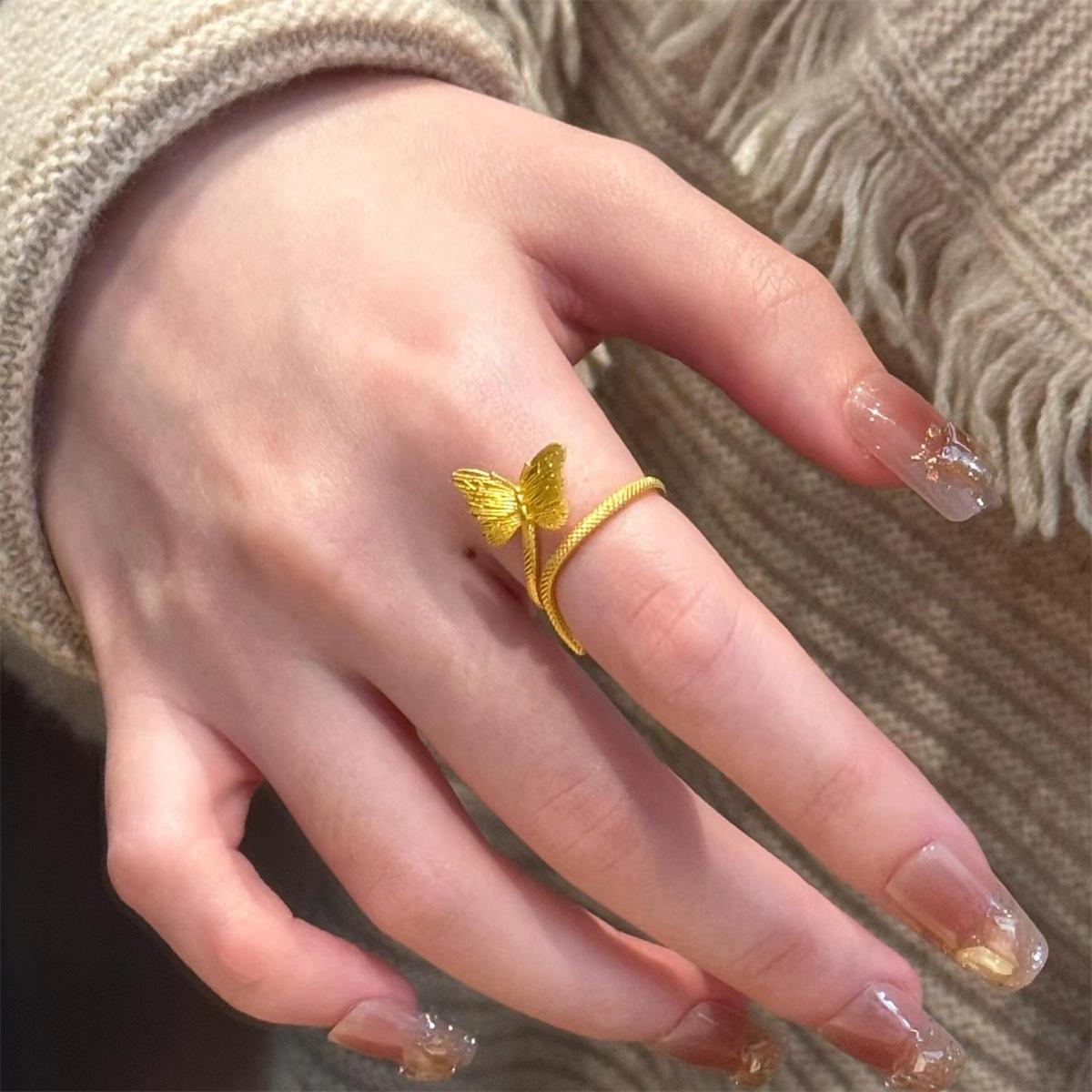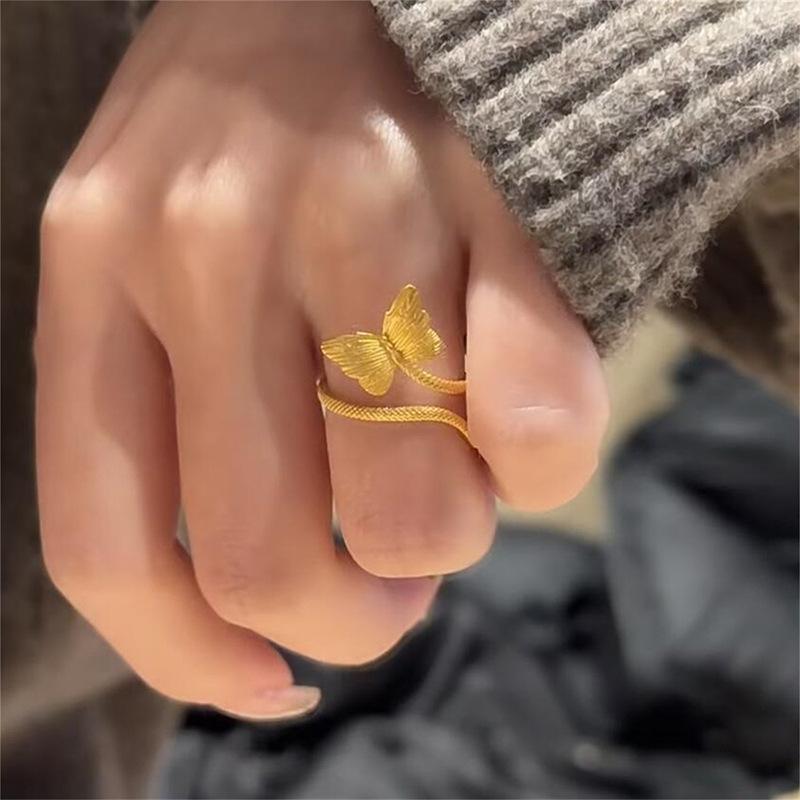Anillo Abierto Envuelto con Serpiente Pequeña a Rayas de Mariposa Moda Simple Personalizado Anillo de Dedo Joyería de Temperamento de Lujo Ligero de Alta Gama