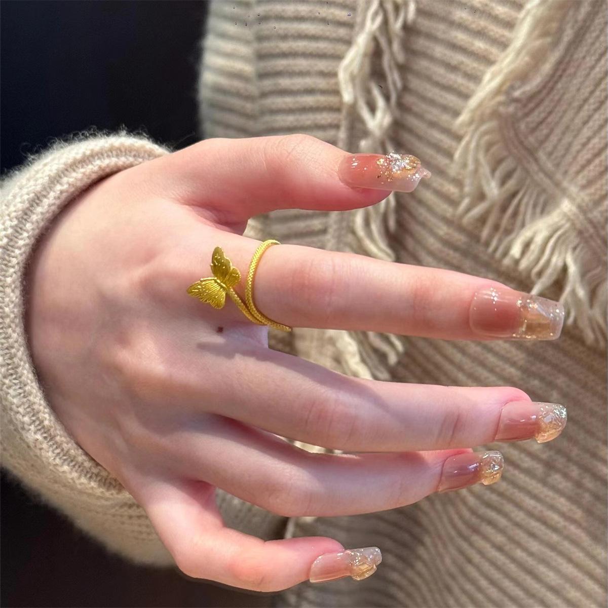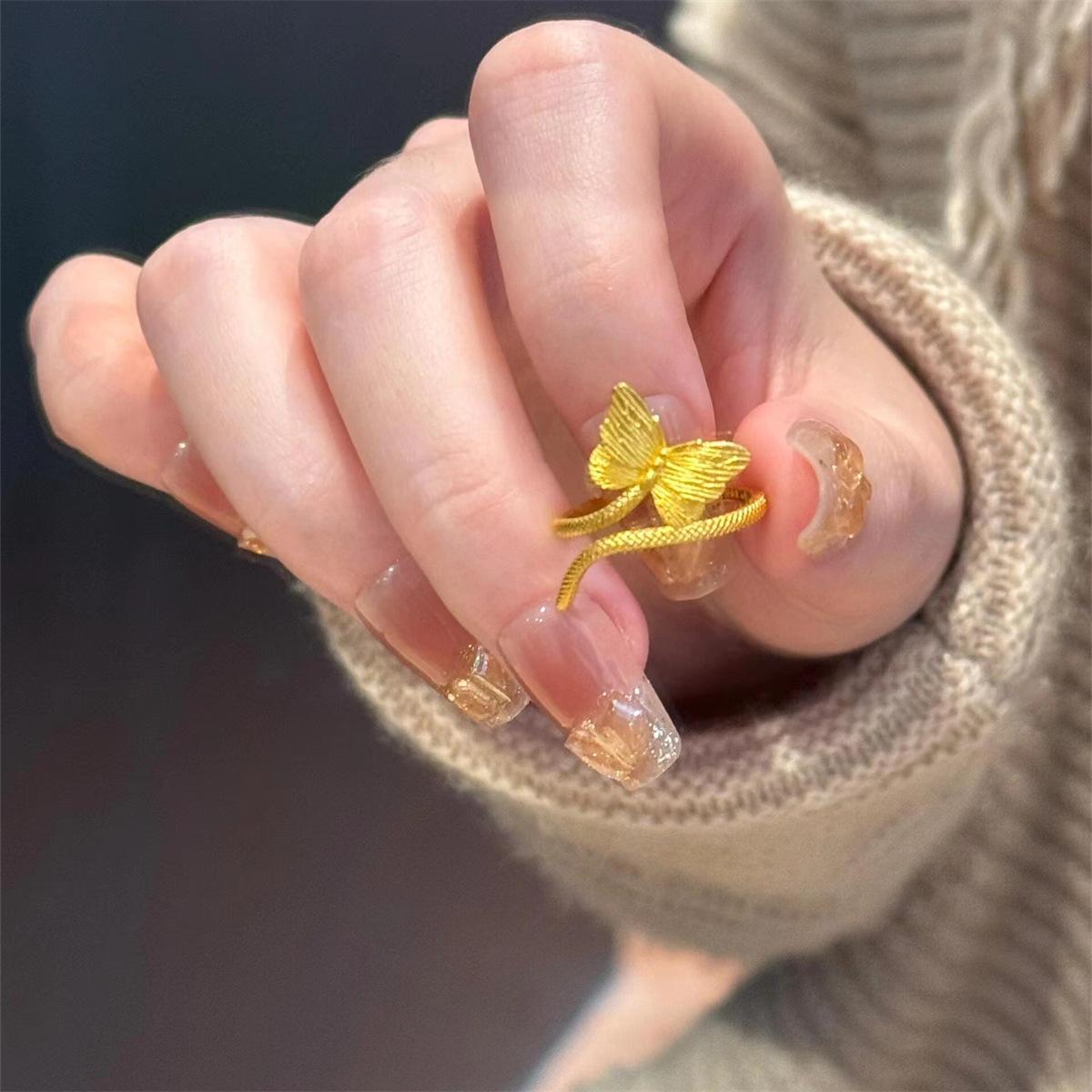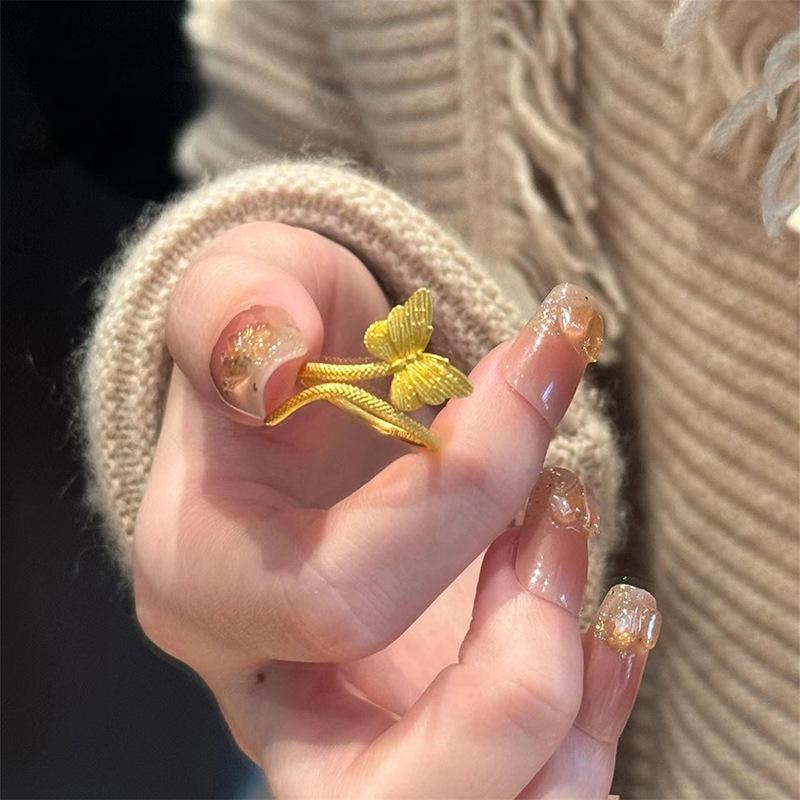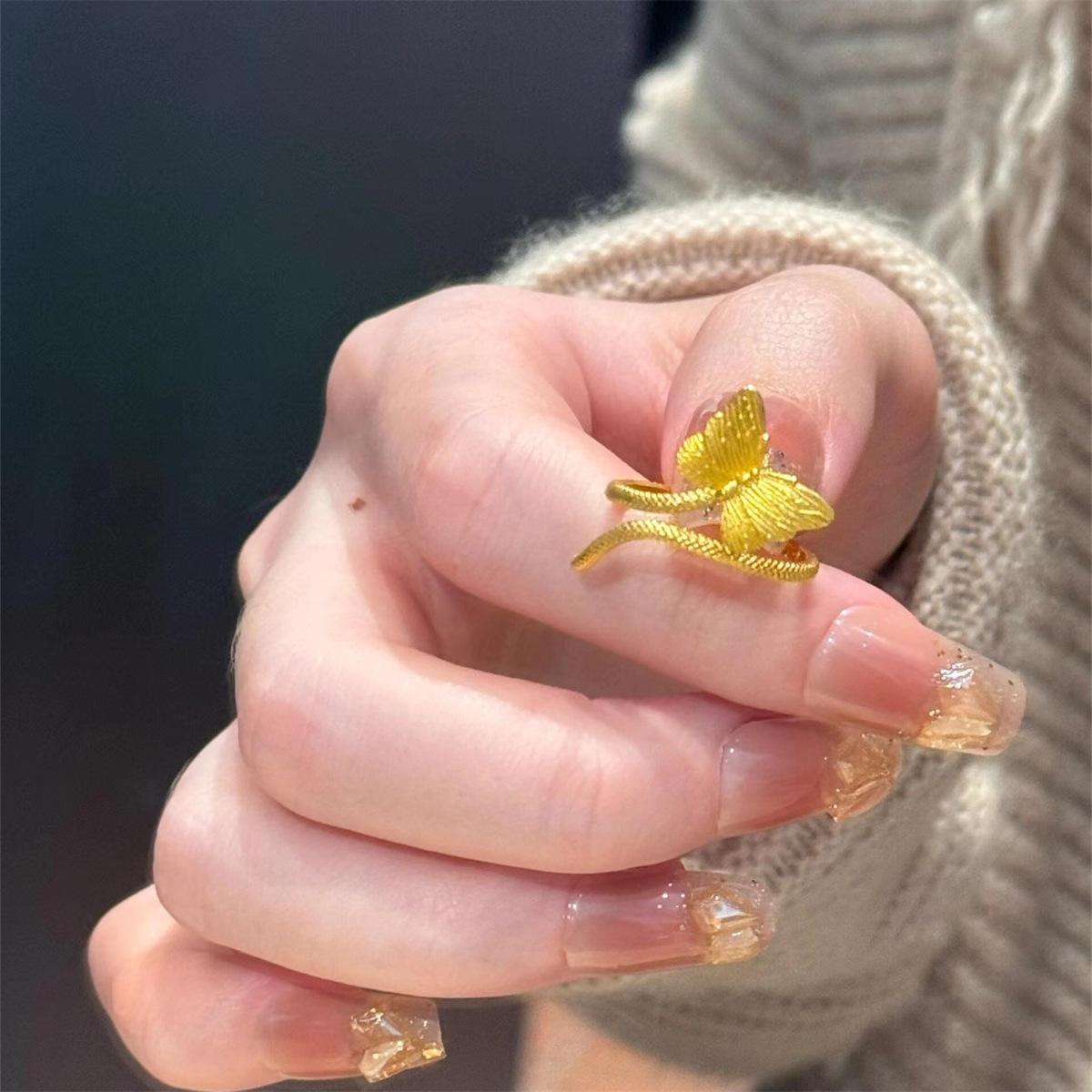 Anillo Abierto Envuelto con Serpiente Pequeña a Rayas de Mariposa Moda Simple Personalizado Anillo de Dedo Joyería de Temperamento de Lujo Ligero de Alta Gama