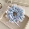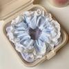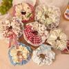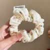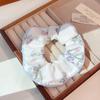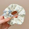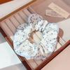 Primavera y verano nueva dulce niña estampado cinta onda punto intestino grueso anillo estudiante cola de caballo baja corbata cuerda bufanda cuadrada cabeza flor