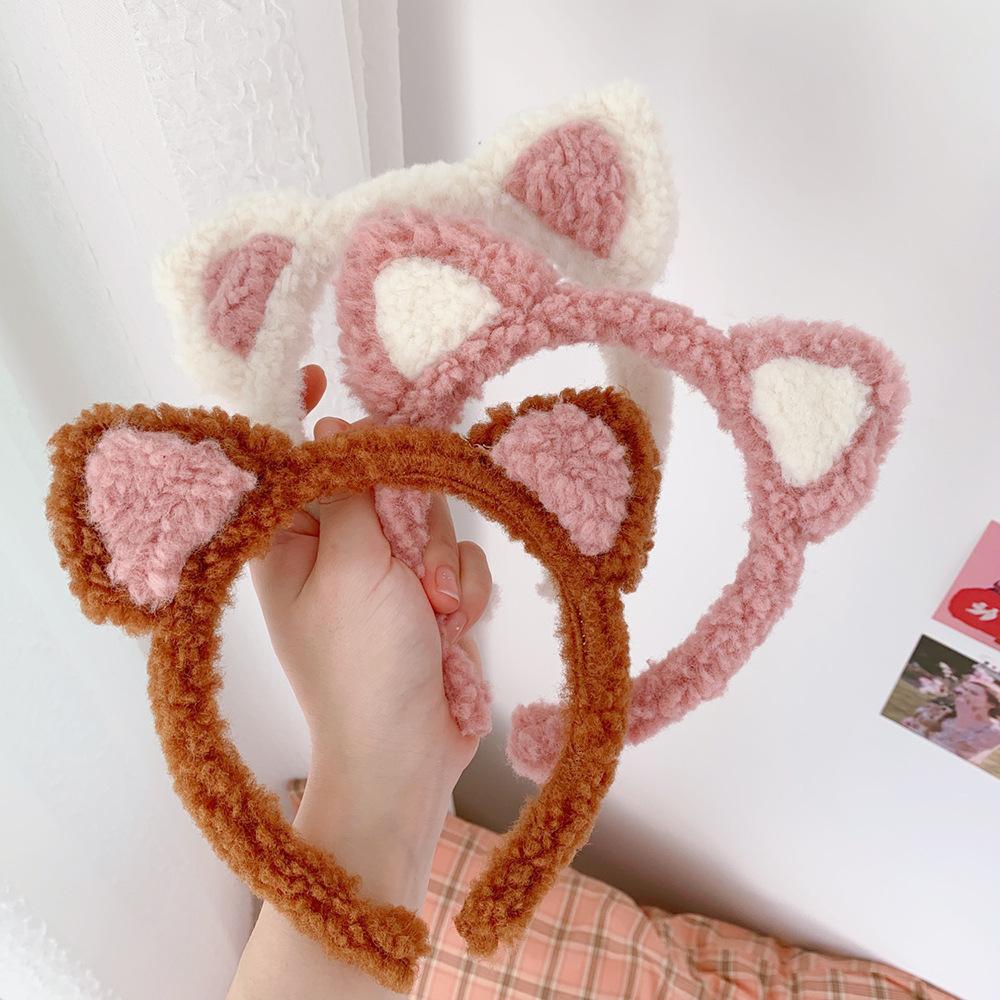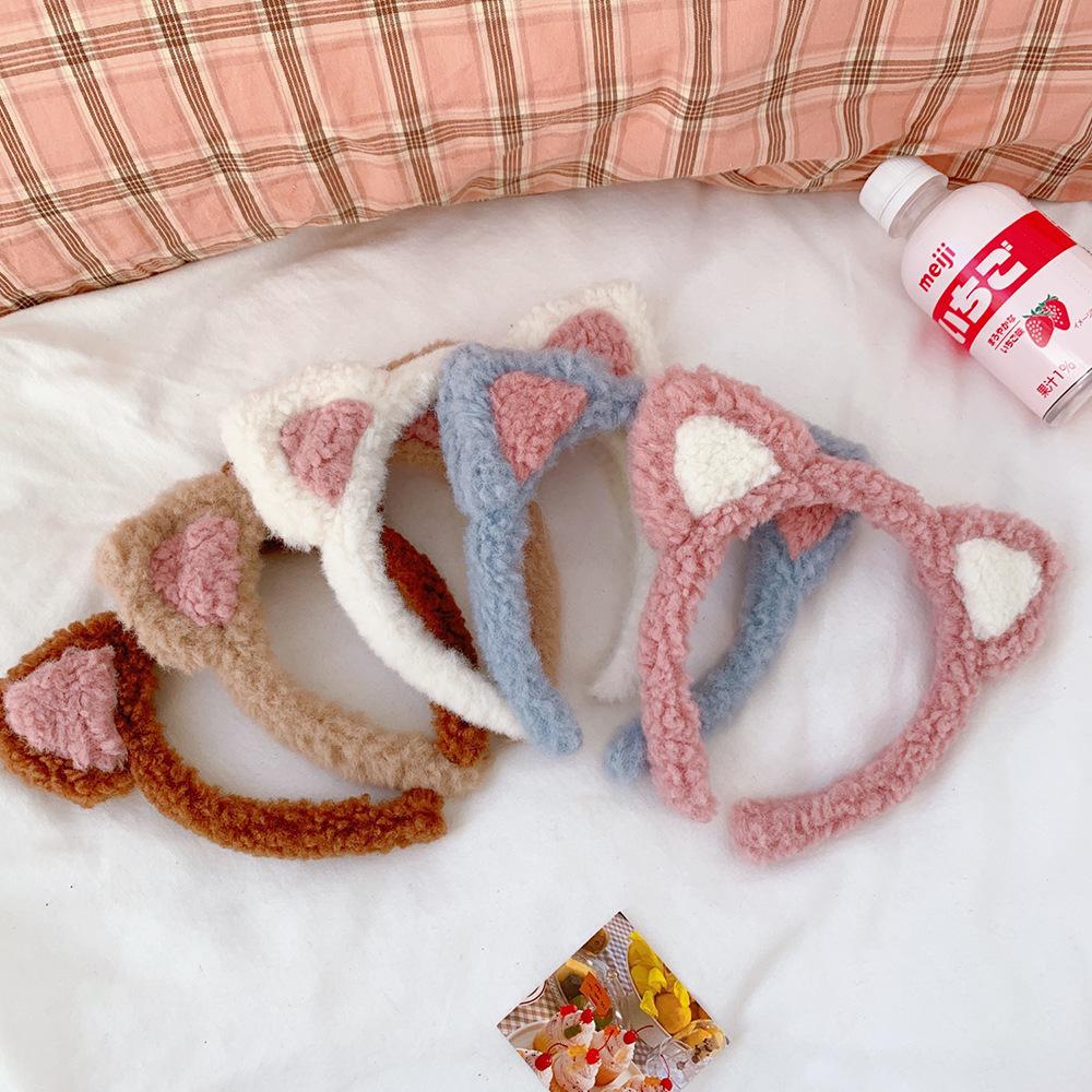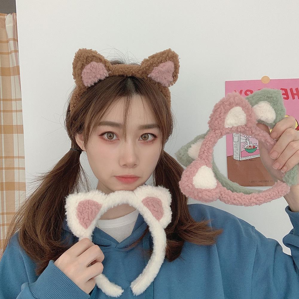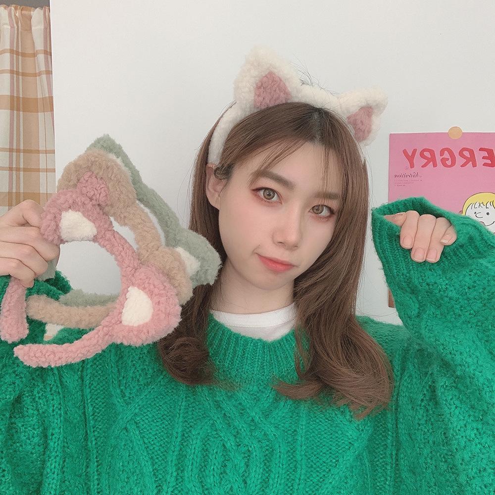 Diadema con orejas de gato de Corea del Sur, bonita y bonita, popular en Internet, para chicas dulces, de peluche, combina con todo, para lavarse la cara, a presión, para el cabello.