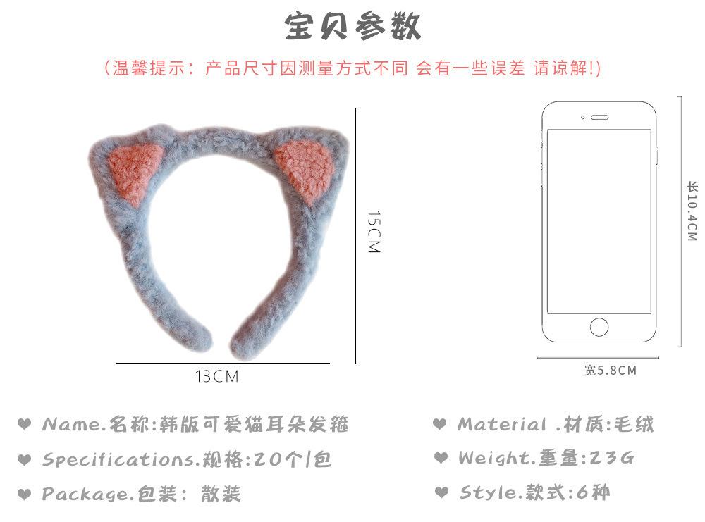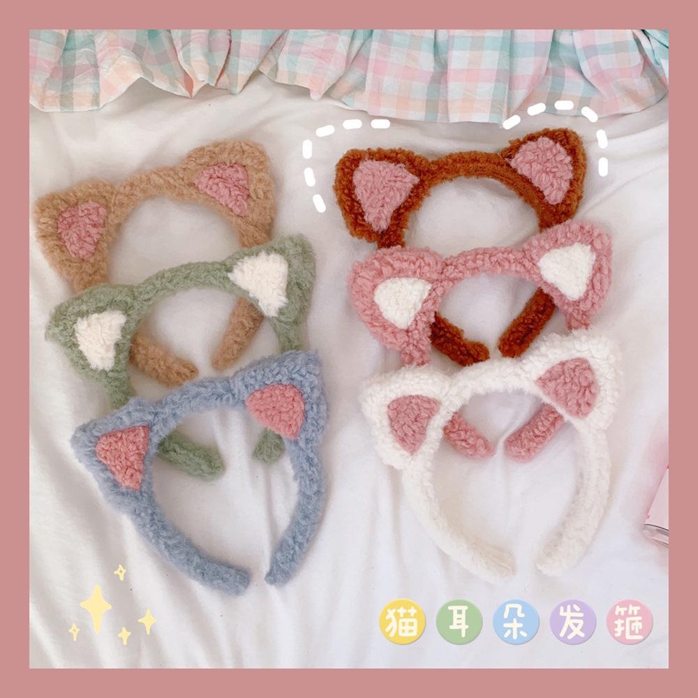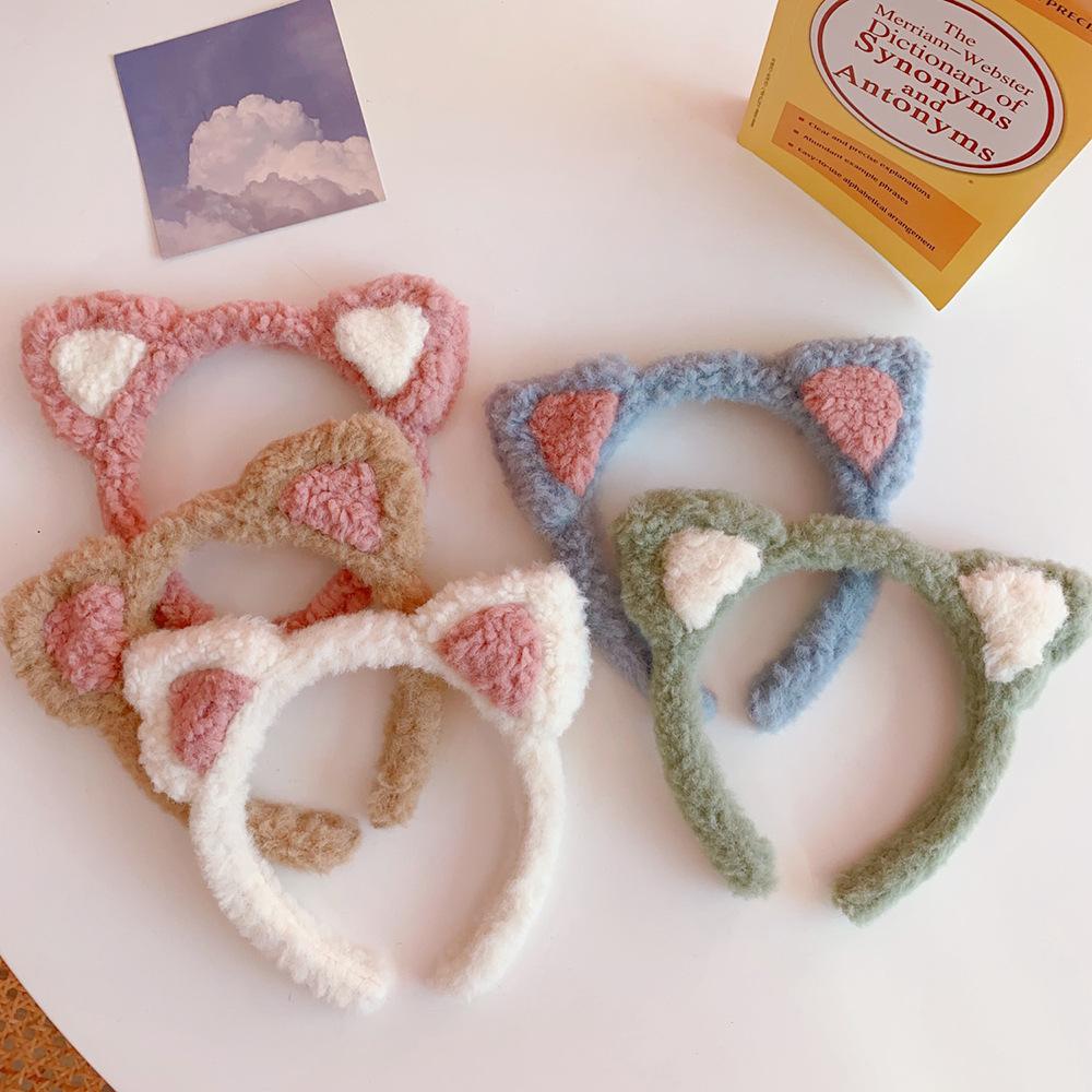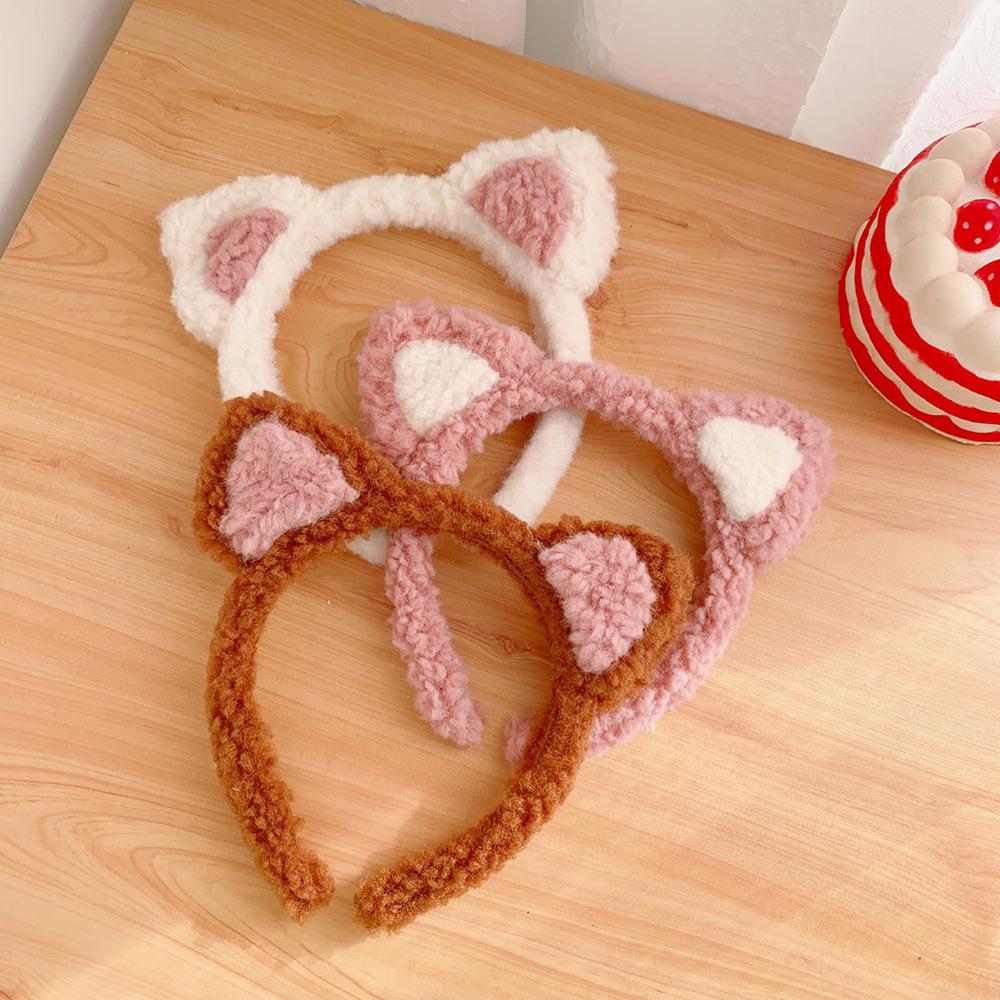 Diadema con orejas de gato de Corea del Sur, bonita y bonita, popular en Internet, para chicas dulces, de peluche, combina con todo, para lavarse la cara, a presión, para el cabello.