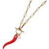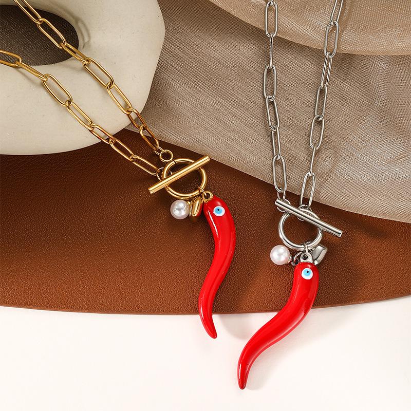 Nuevo collar con colgante de cuerno rojo de Amazon, collar de acero inoxidable con pimiento rojo, estilo dulce y genial.