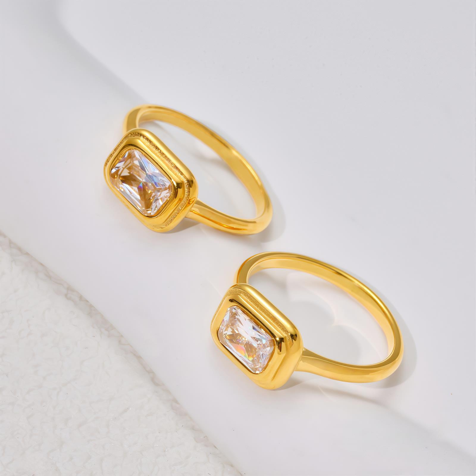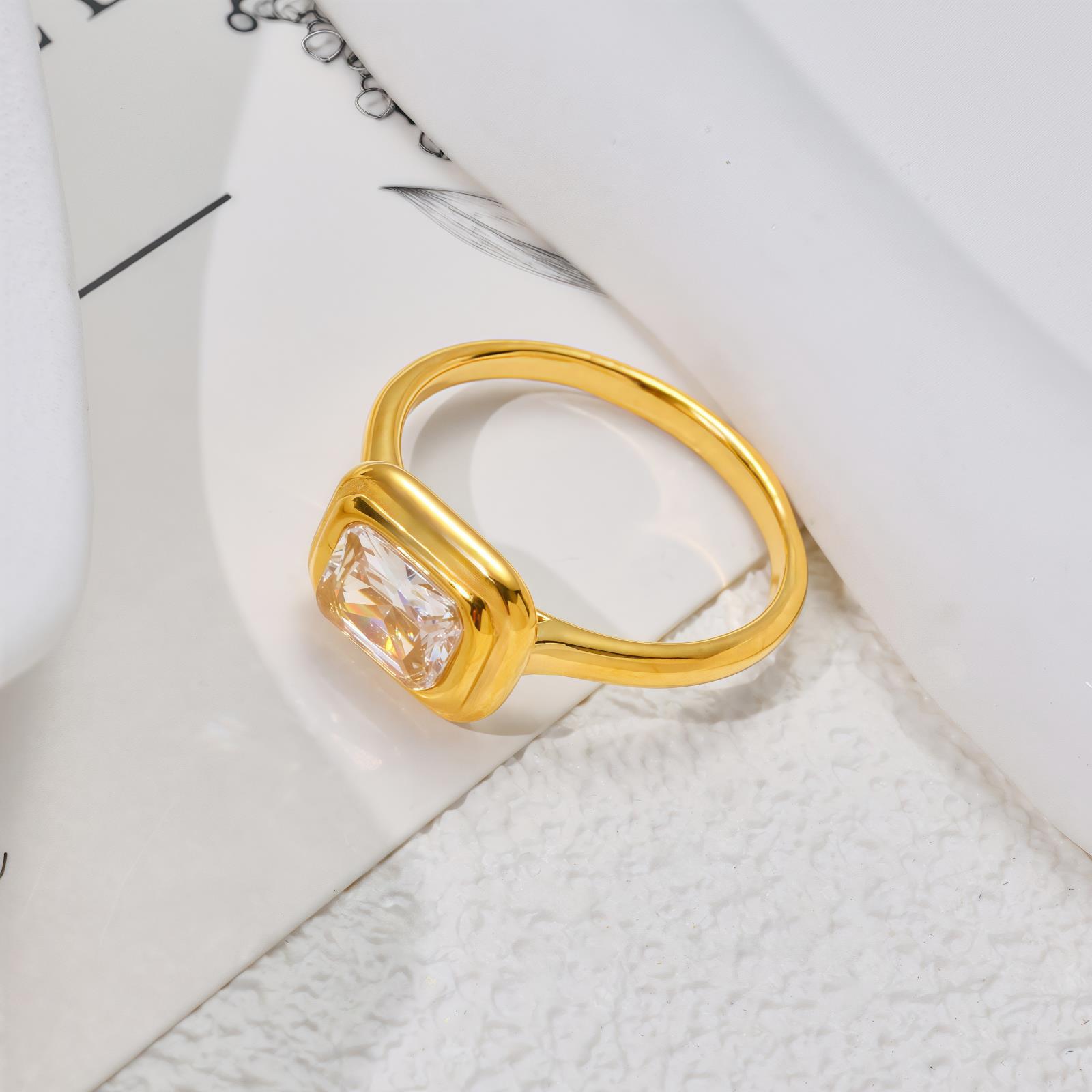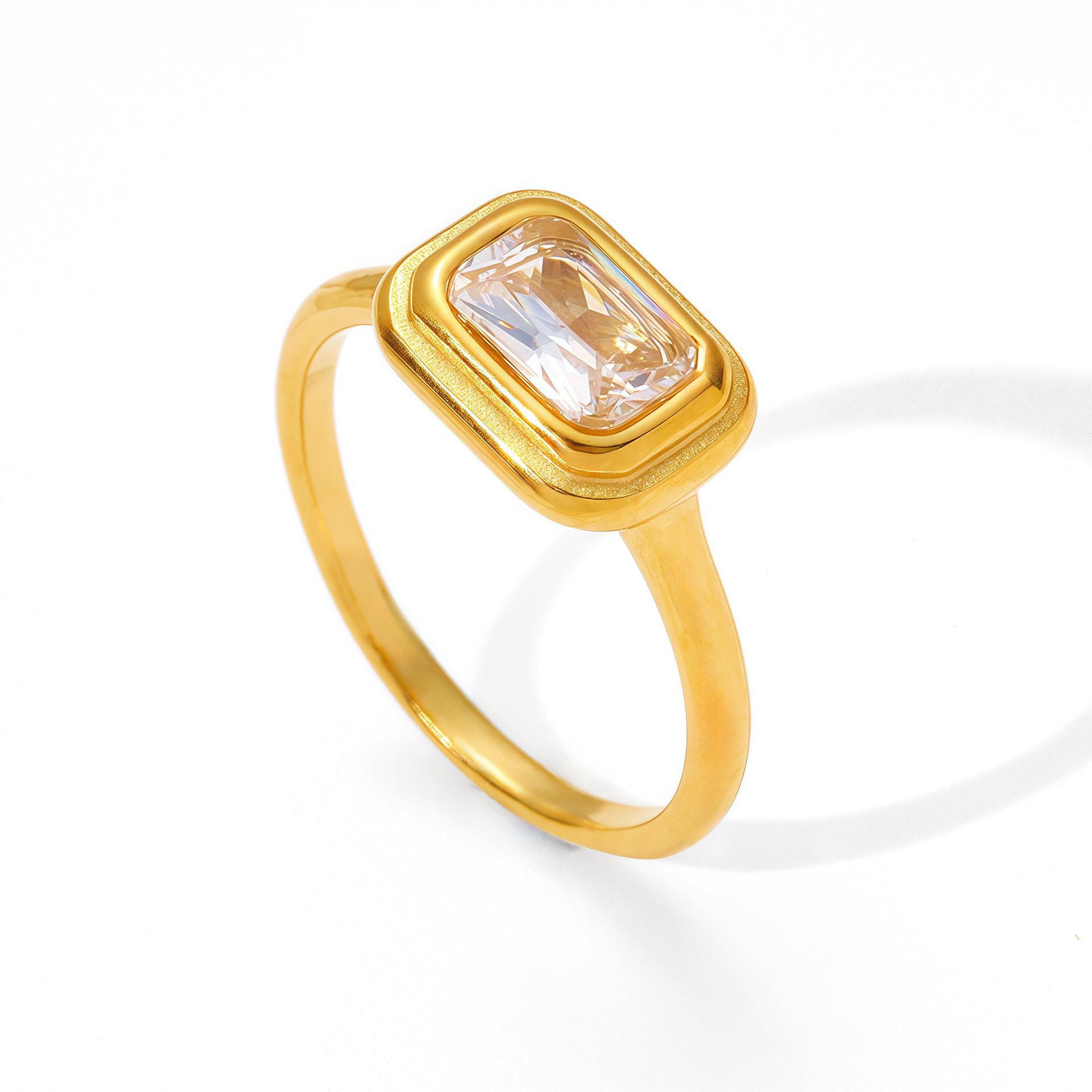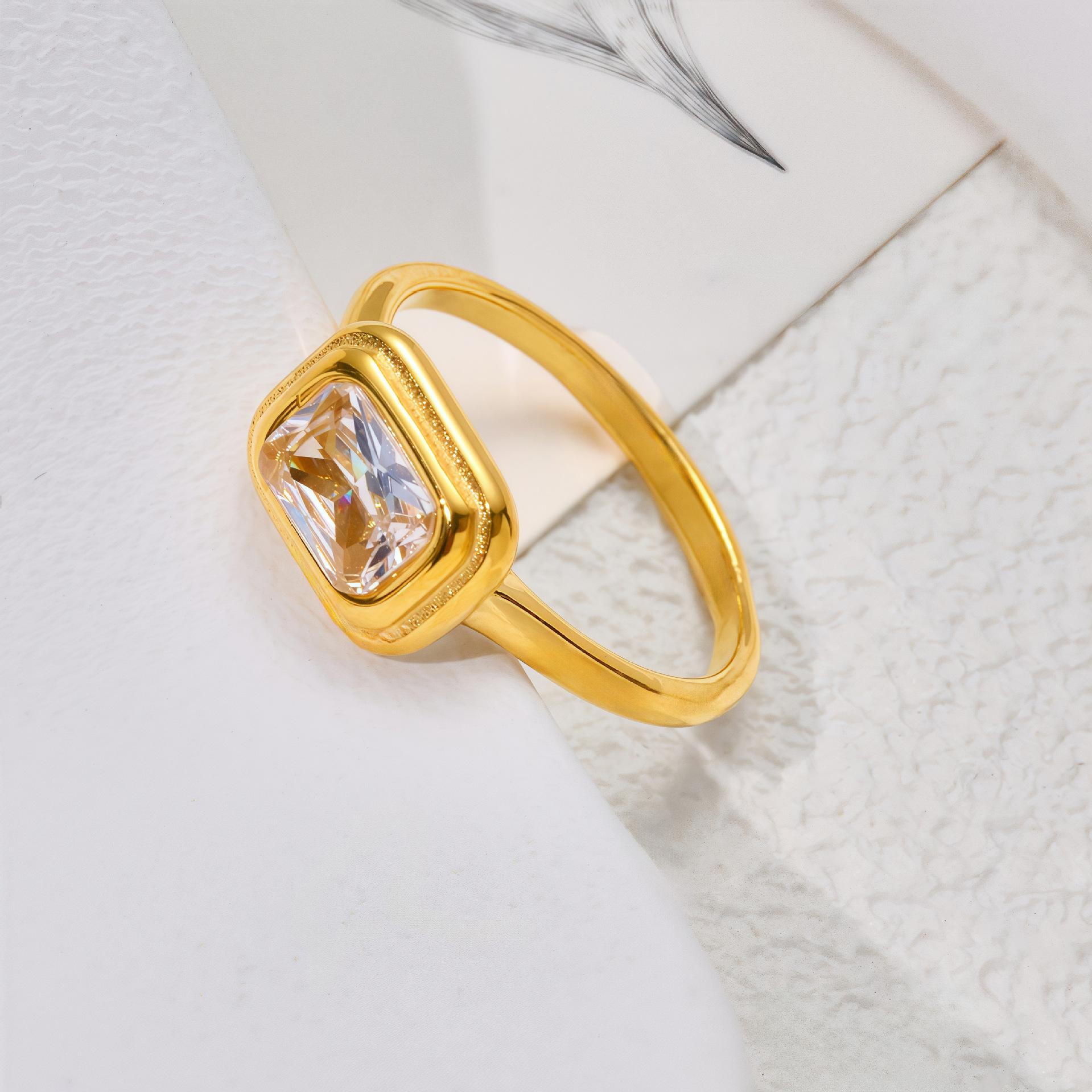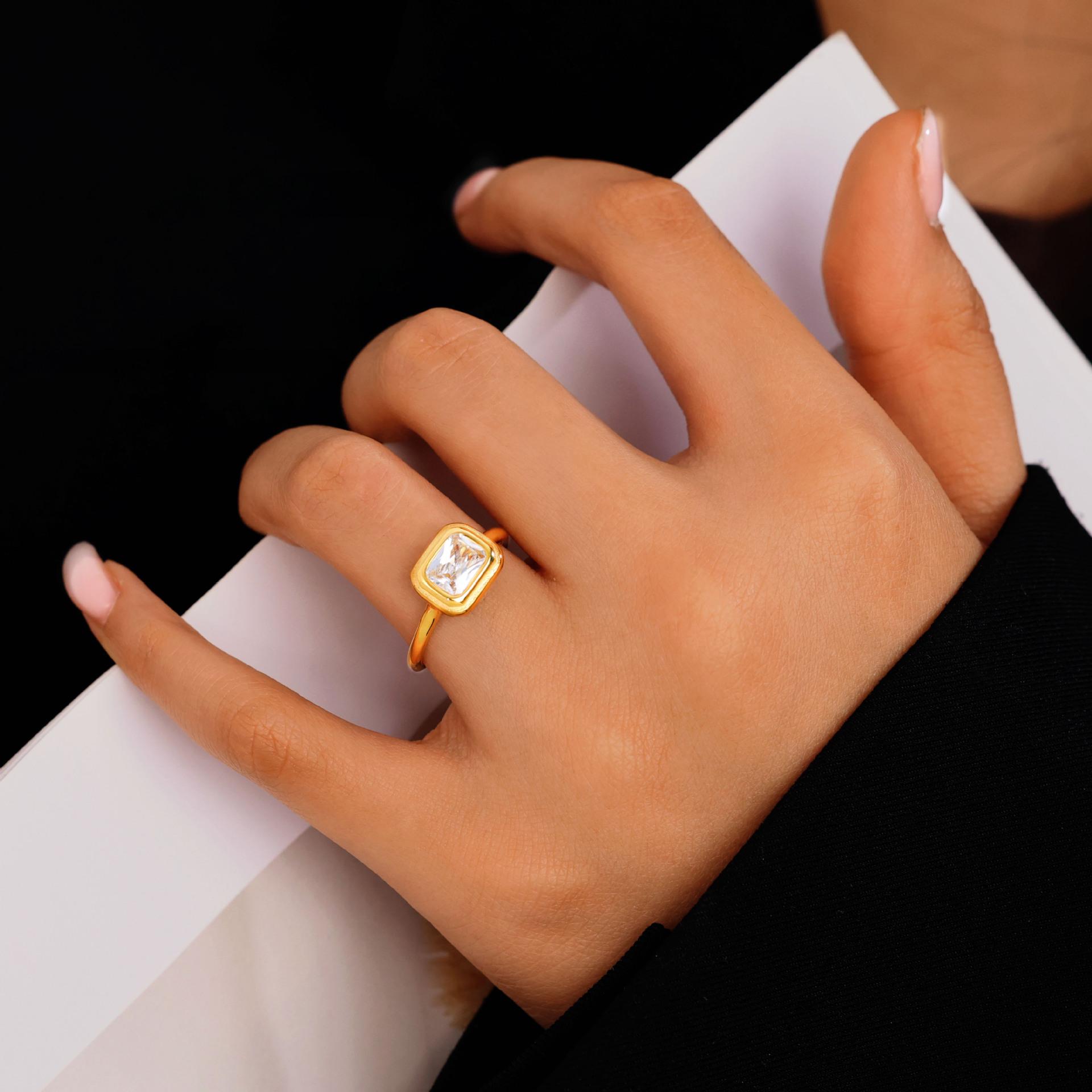 Anillo Casual Estilo Francés Anillo de Acero de Titanio Anillo Simple de Diamante Cuadrado Anillo de Moda para Combinar Anillo de Lujo Ligero Chapado en Oro