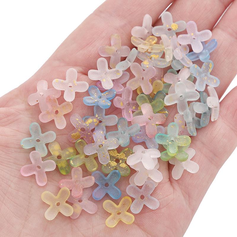 Cuentas acrílicas doradas con punta de flor de cuatro pétalos, cuentas de flores hechas a mano, cuentas dispersas, accesorios para pulseras y collares.