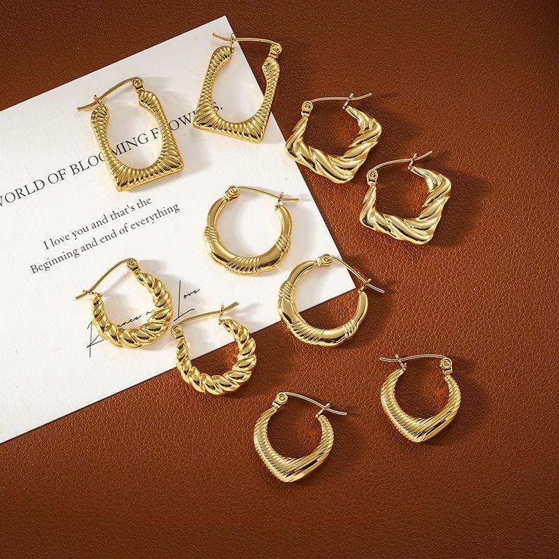 Pendientes de acero de titanio con forma de U geométricos de estilo europeo y americano de moda transfronteriza para damas, pendientes irregulares simples de alta gama al por mayor