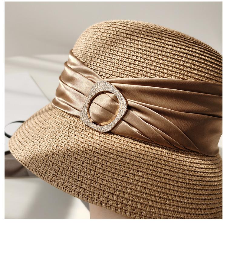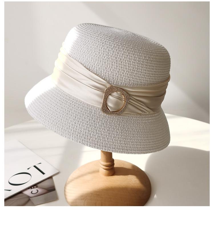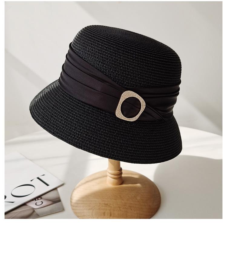 Elegante Casual Plegable Sombrero de Pescador con Pedrería Sombrero de Paja de Verano de Moda para Viaje Sombrero de Sol para la Playa de Mujer