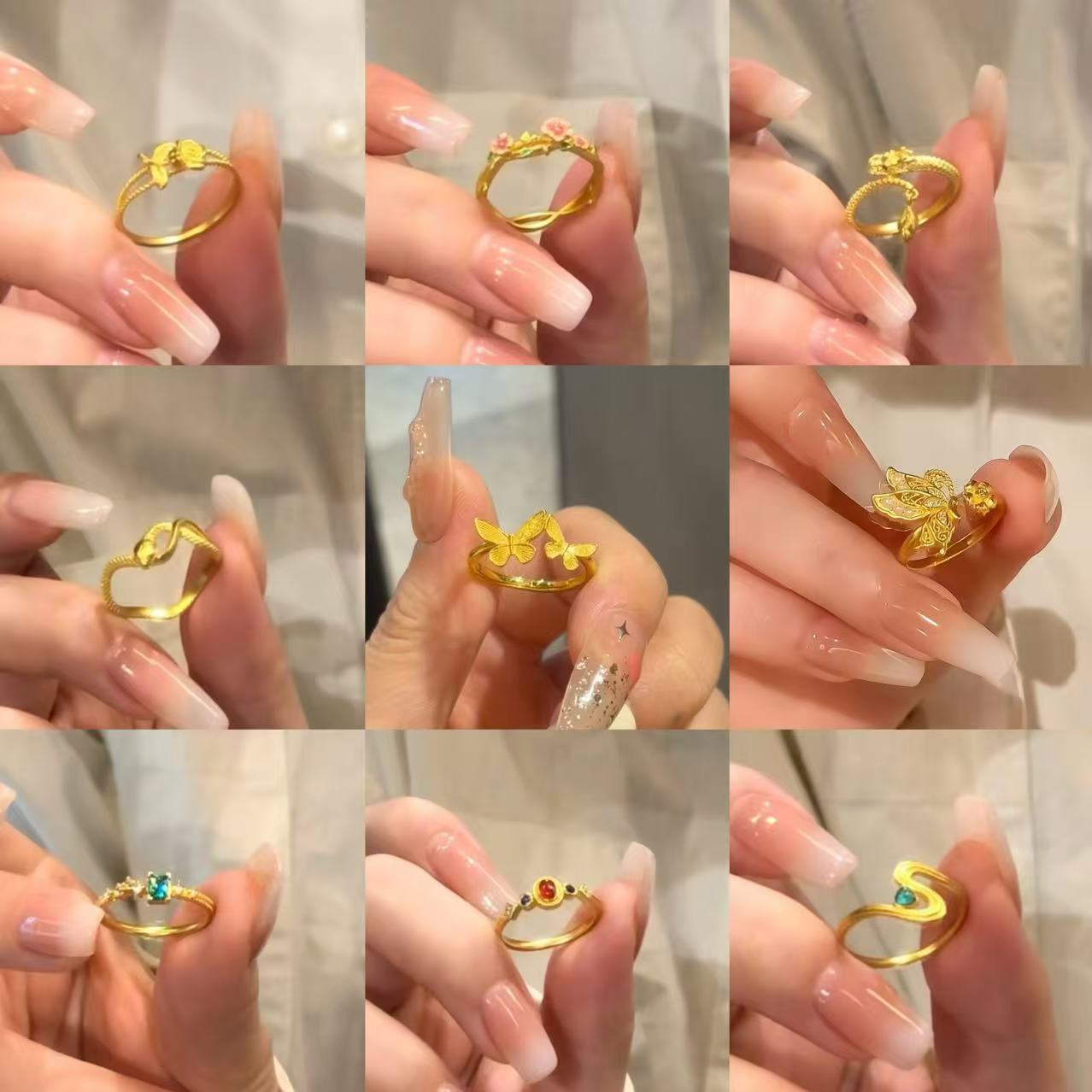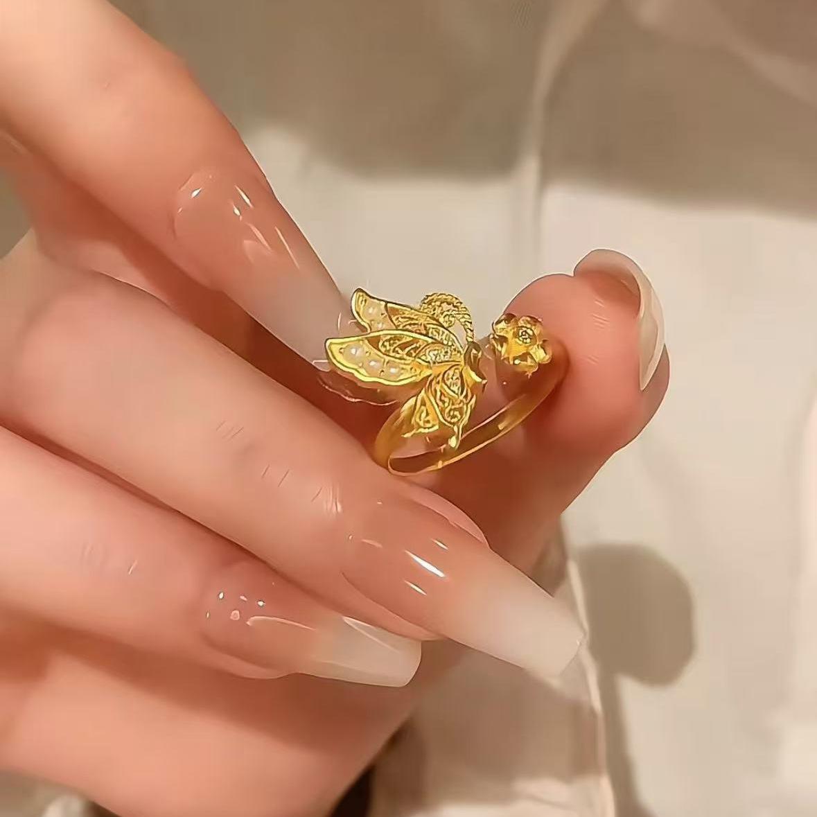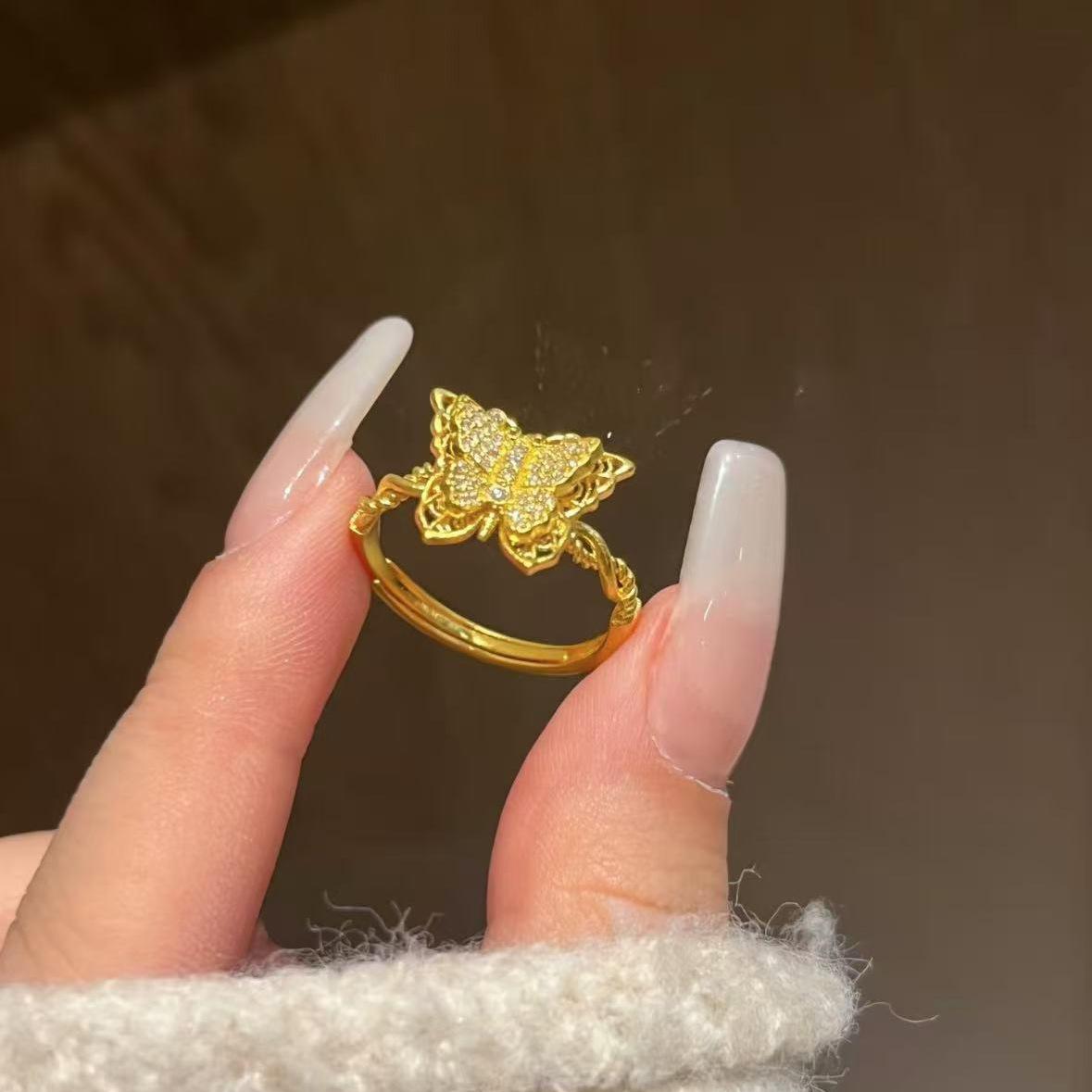 Anillo Nacional de Moda Mariposa Dorada Flor Retro Exquisito Lujo Ligero 2025 Nuevo Estilo Uso Apilado Diario Anillo Abierto para Dedo de Mujer
