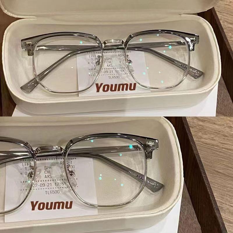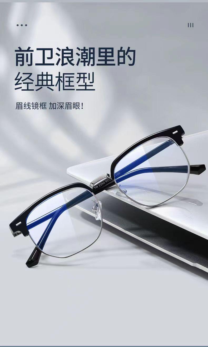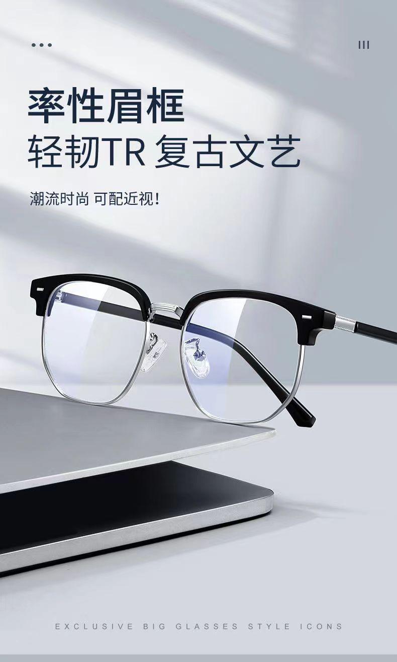 Gafas vintage TR Tong Jin Cheng de media montura para hombre y mujer, ultraligeras, modernas, con líneas de cejas finas.