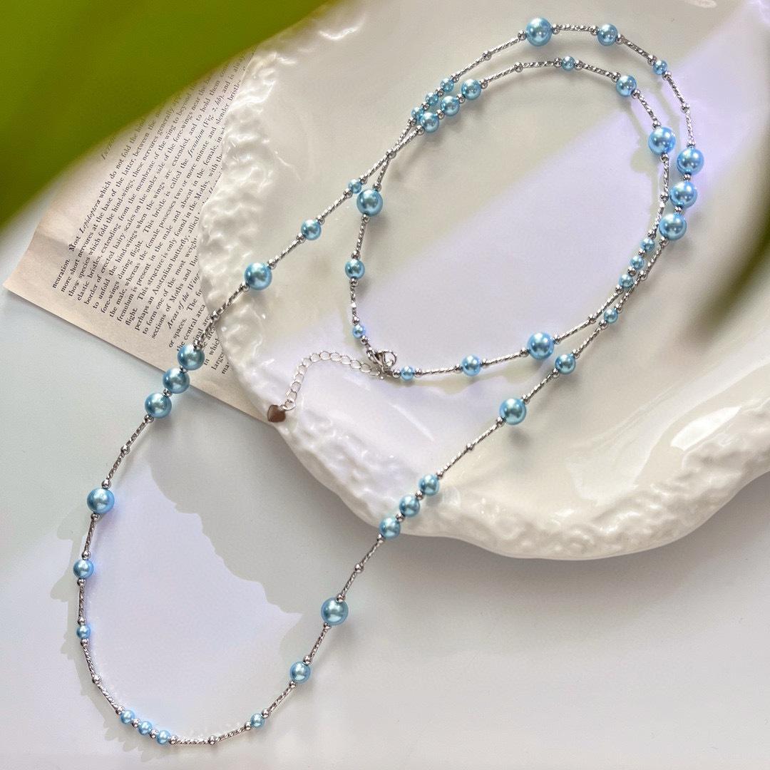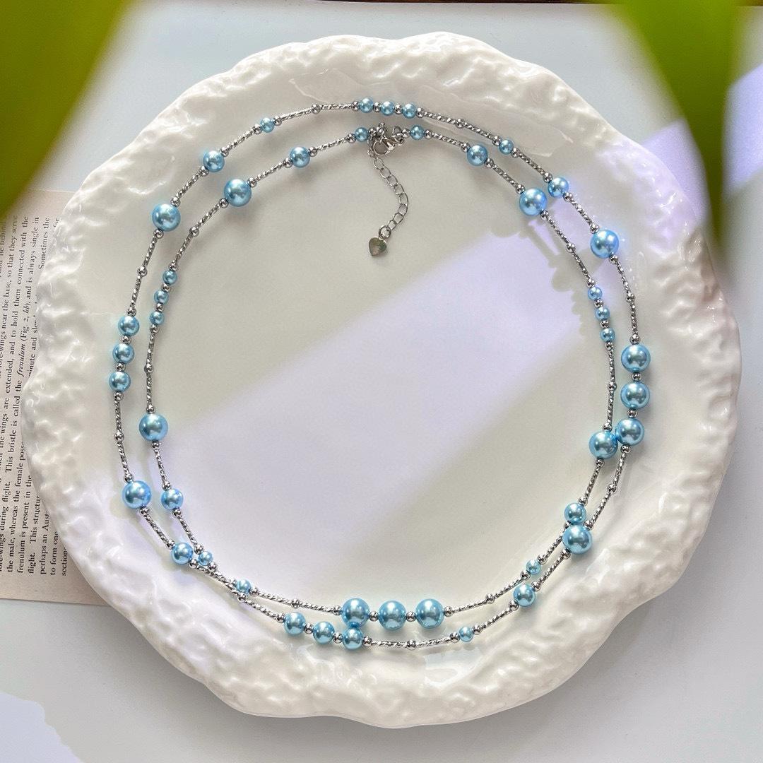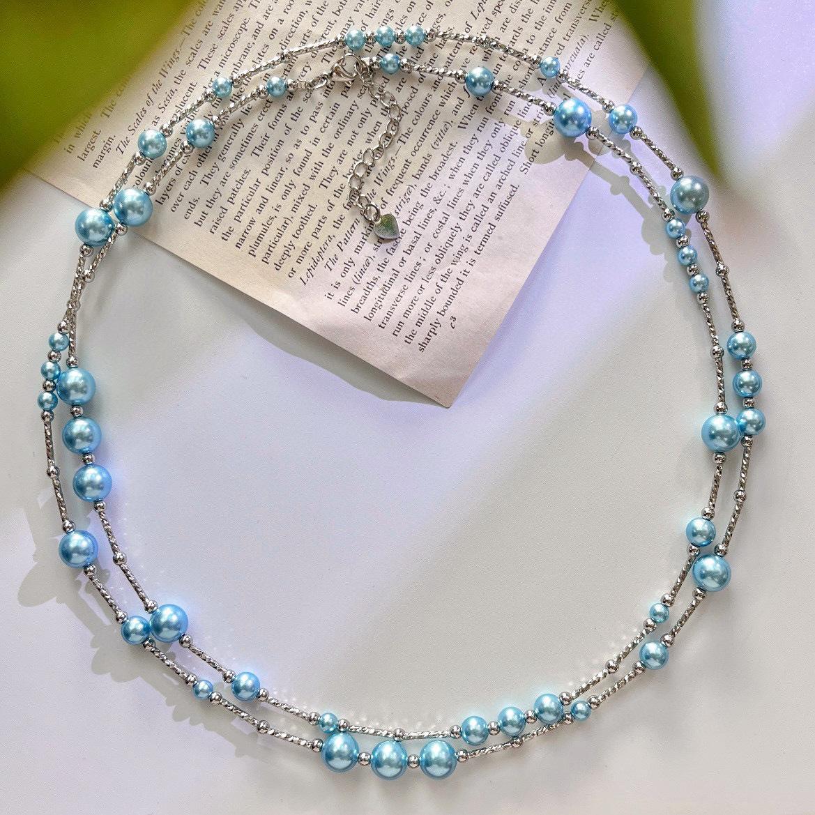 Collar de cadena de clavícula con perlas de cristal de imitación de hechicera azul de alta calidad vintage de Guofeng