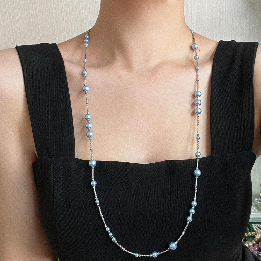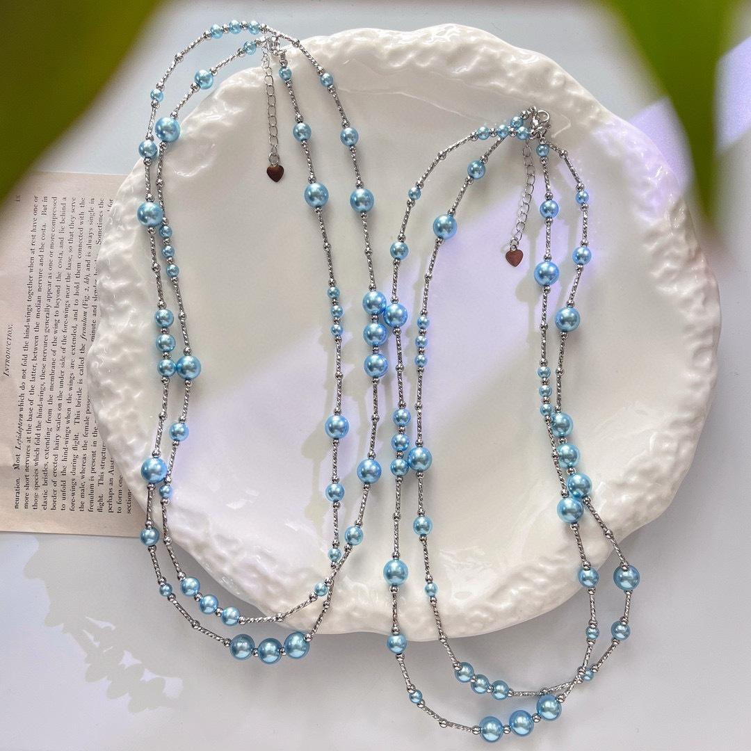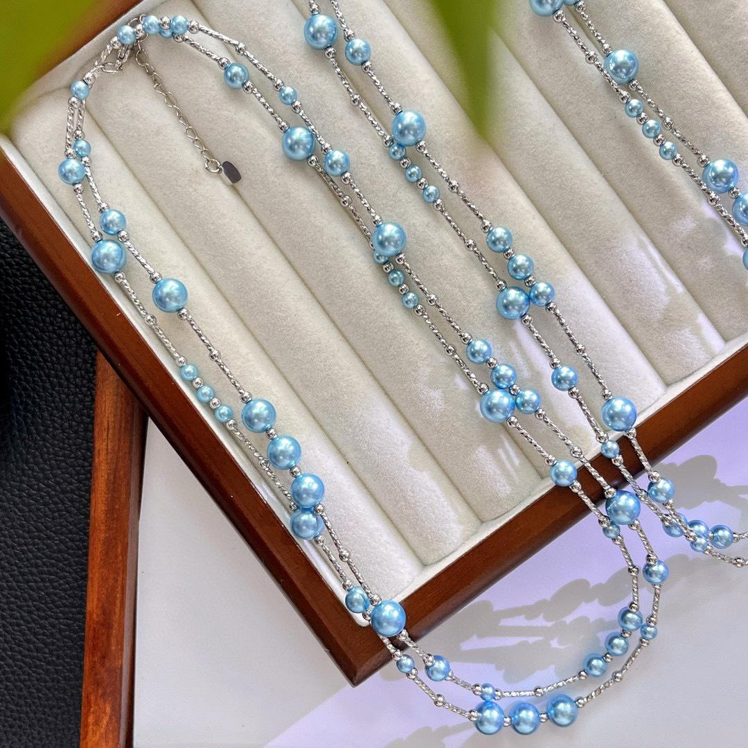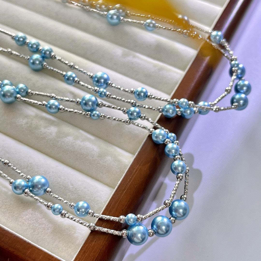 Collar de cadena de clavícula con perlas de cristal de imitación de hechicera azul de alta calidad vintage de Guofeng