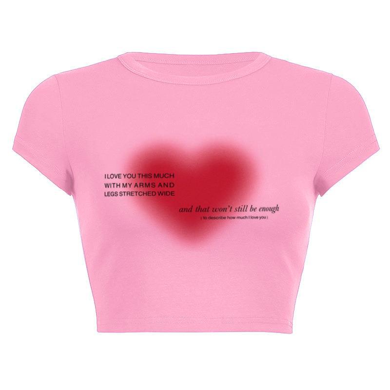 Camiseta corta con estampado sexy de amor inglés para mujer, nueva camiseta de verano europea y americana transfronteriza de comercio exterior 2023