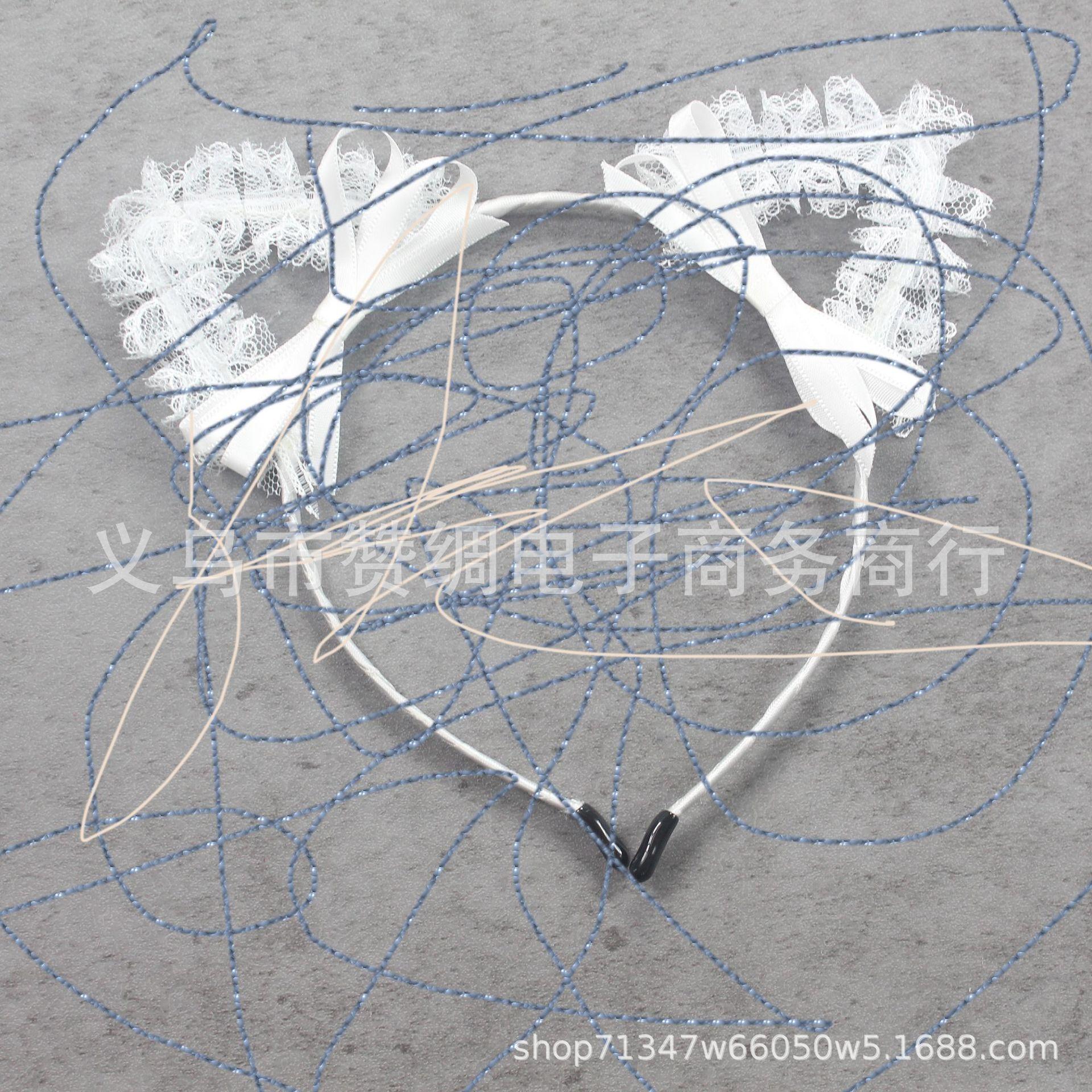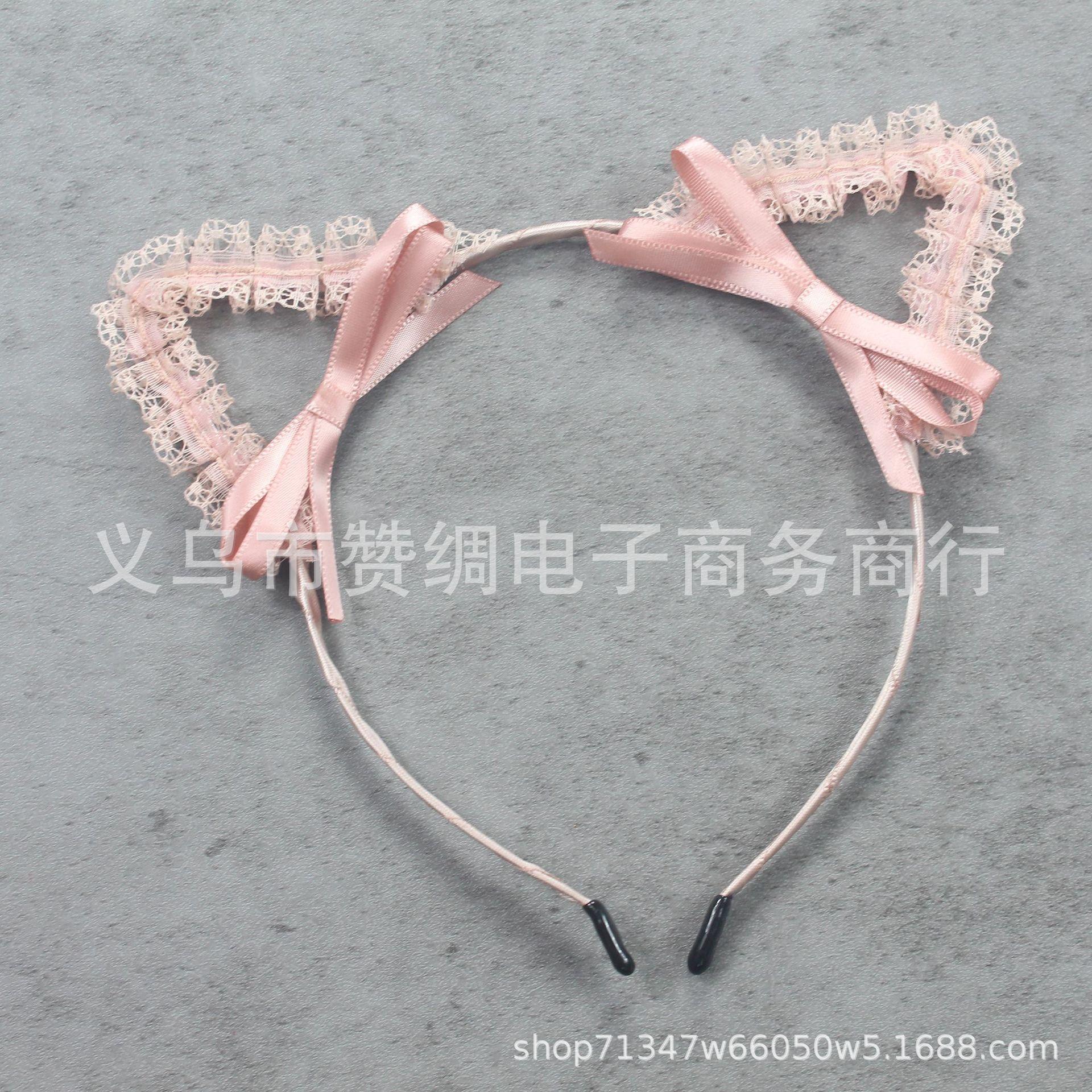 Diadema de Orejas de Gato al por Mayor Encaje Colorido Lazo Adorno para la Cabeza para Lavar la Cara para Mujer Lindo Dulce Flequillo Accesorios para el Cabello Joyería