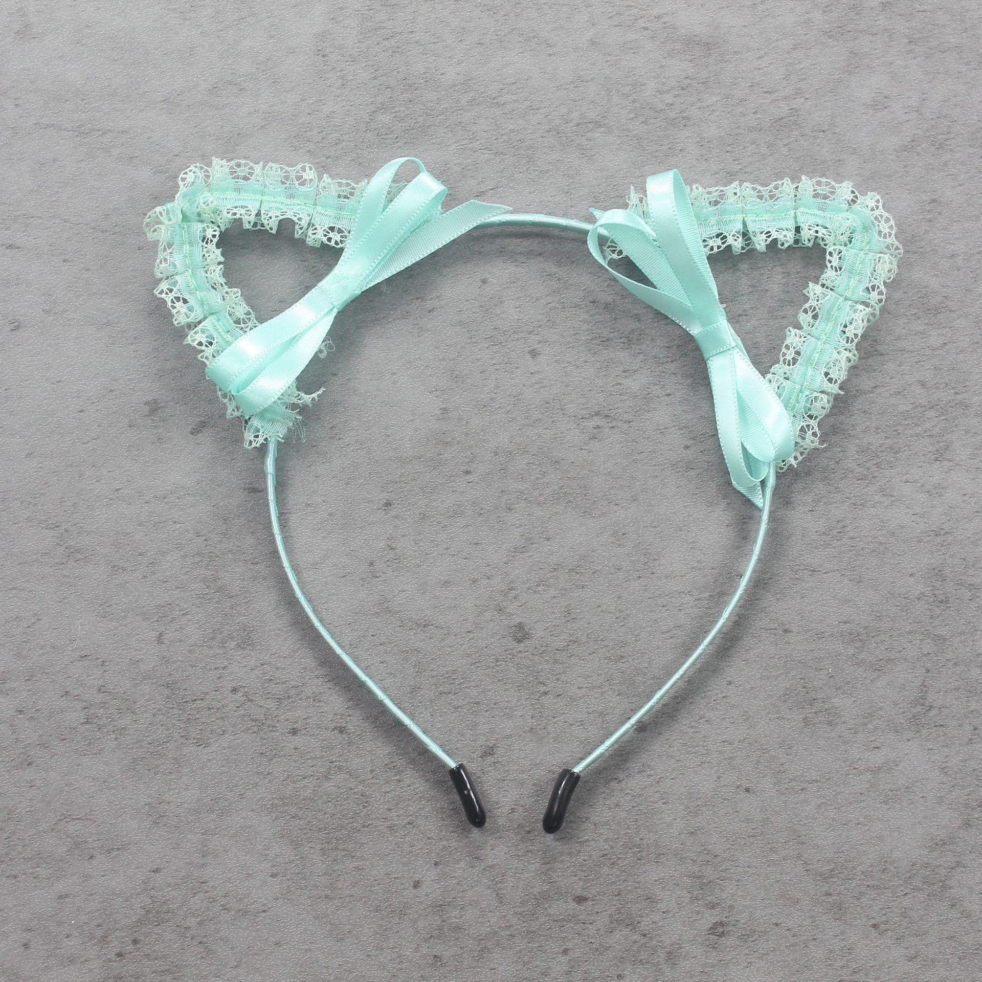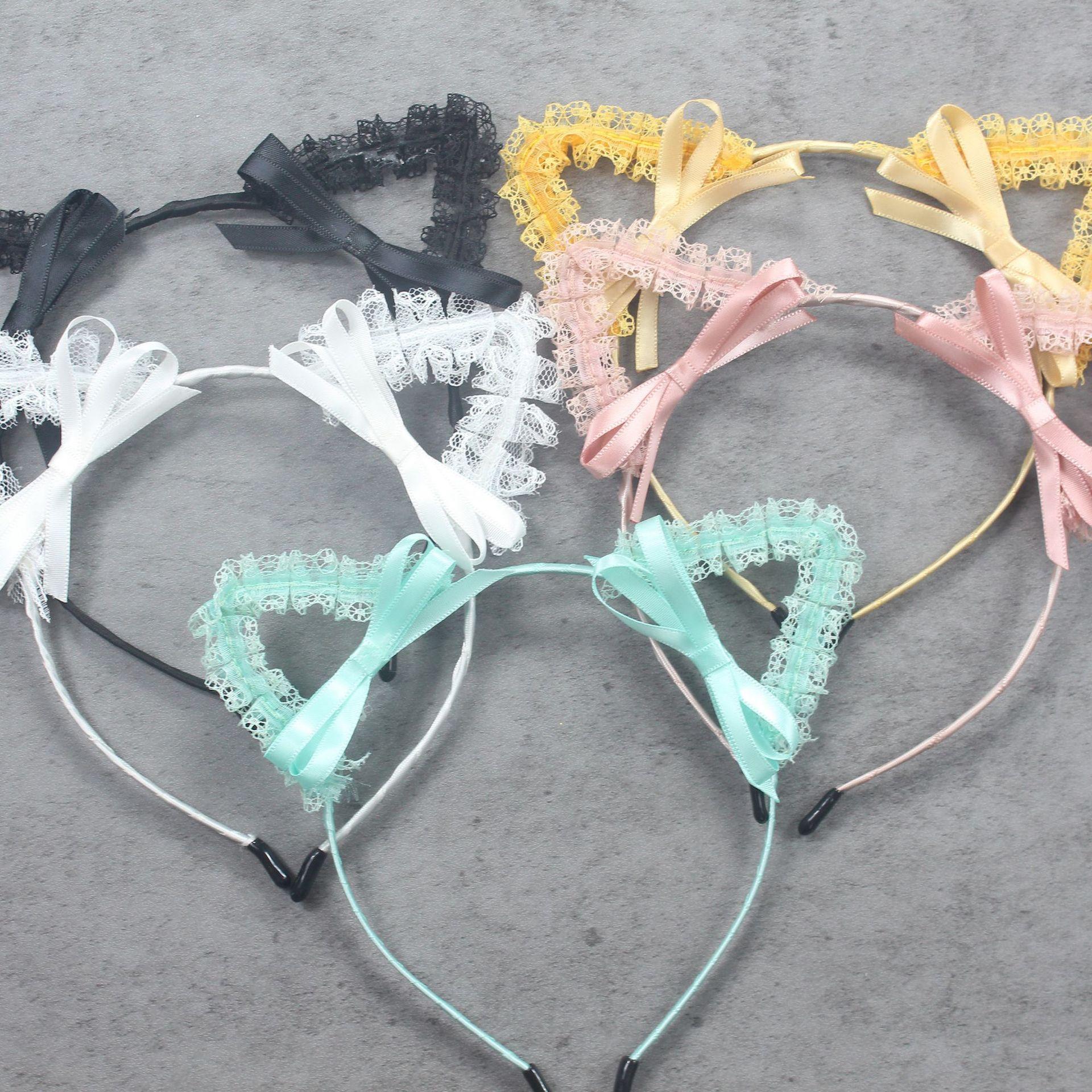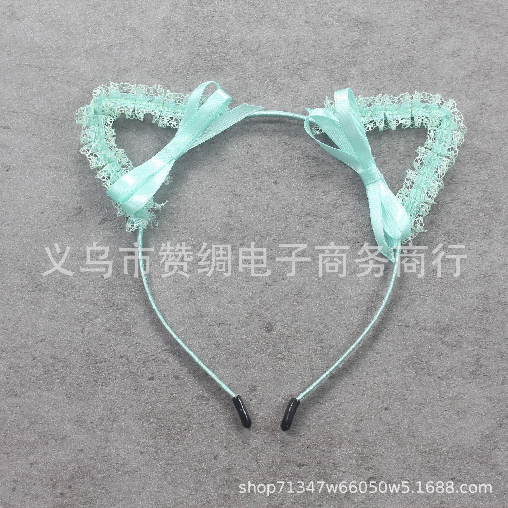 Diadema al por mayor de Orejas de Gato con Lazo de Encaje Colorido para Mujer, Accesorio para el Cabello para Lavar la Cara, Estilo Fresco y Dulce