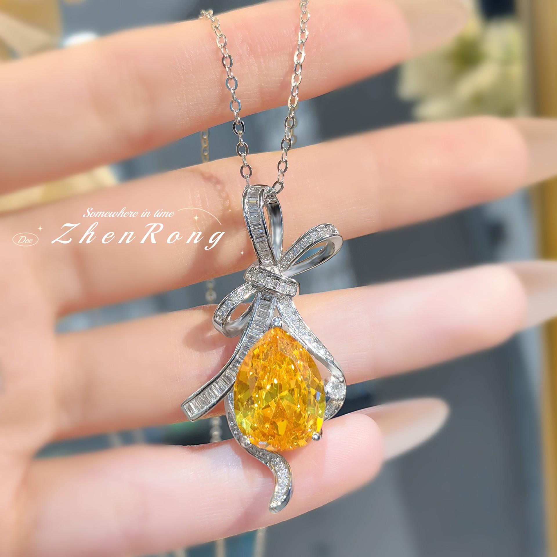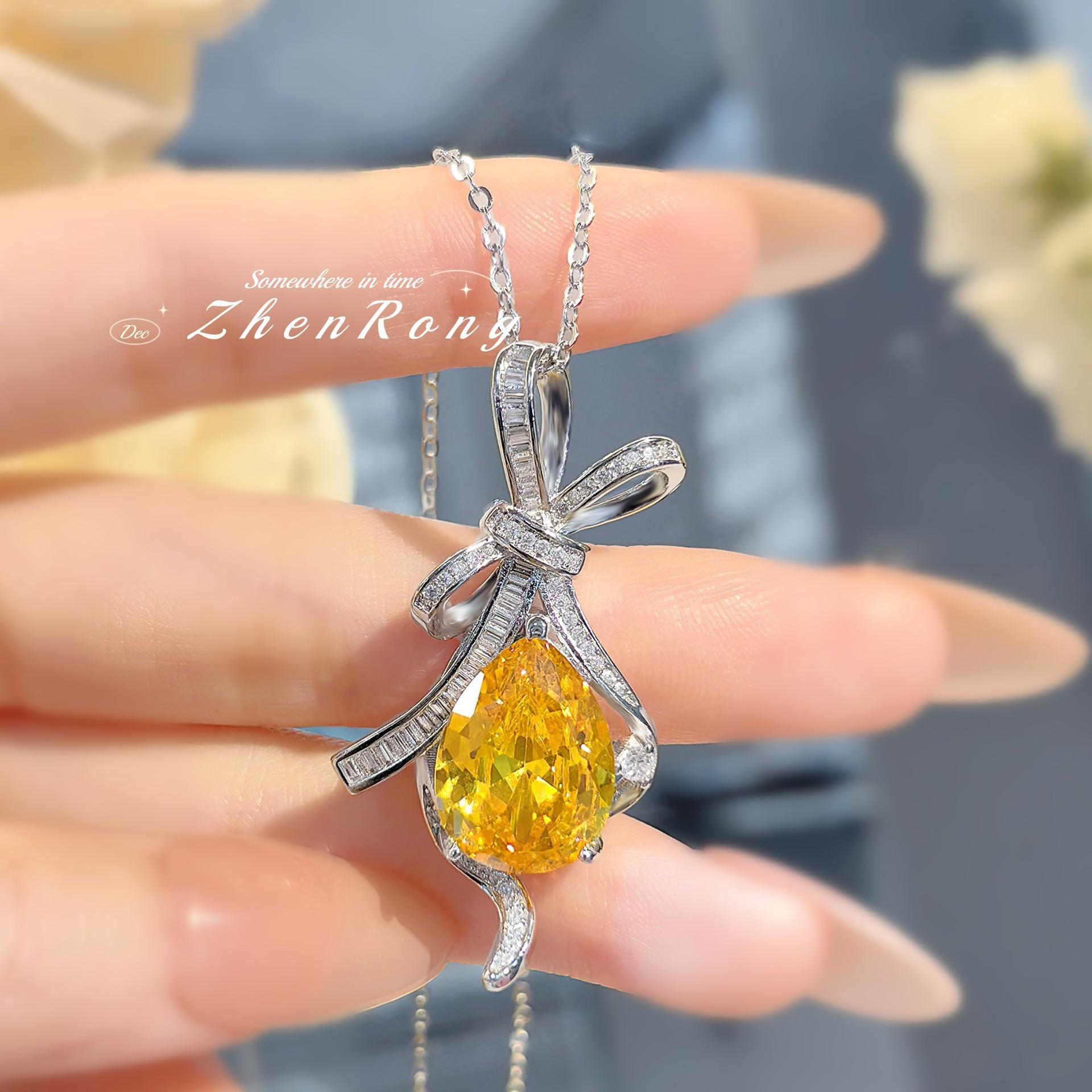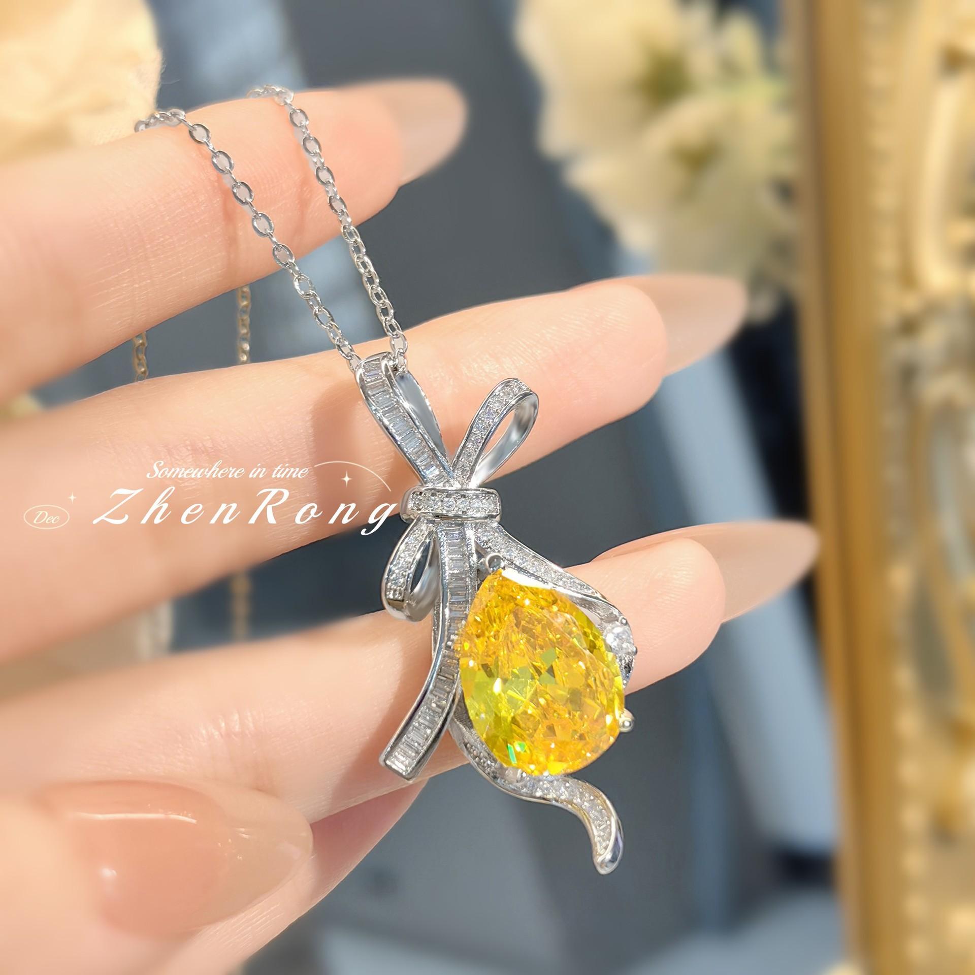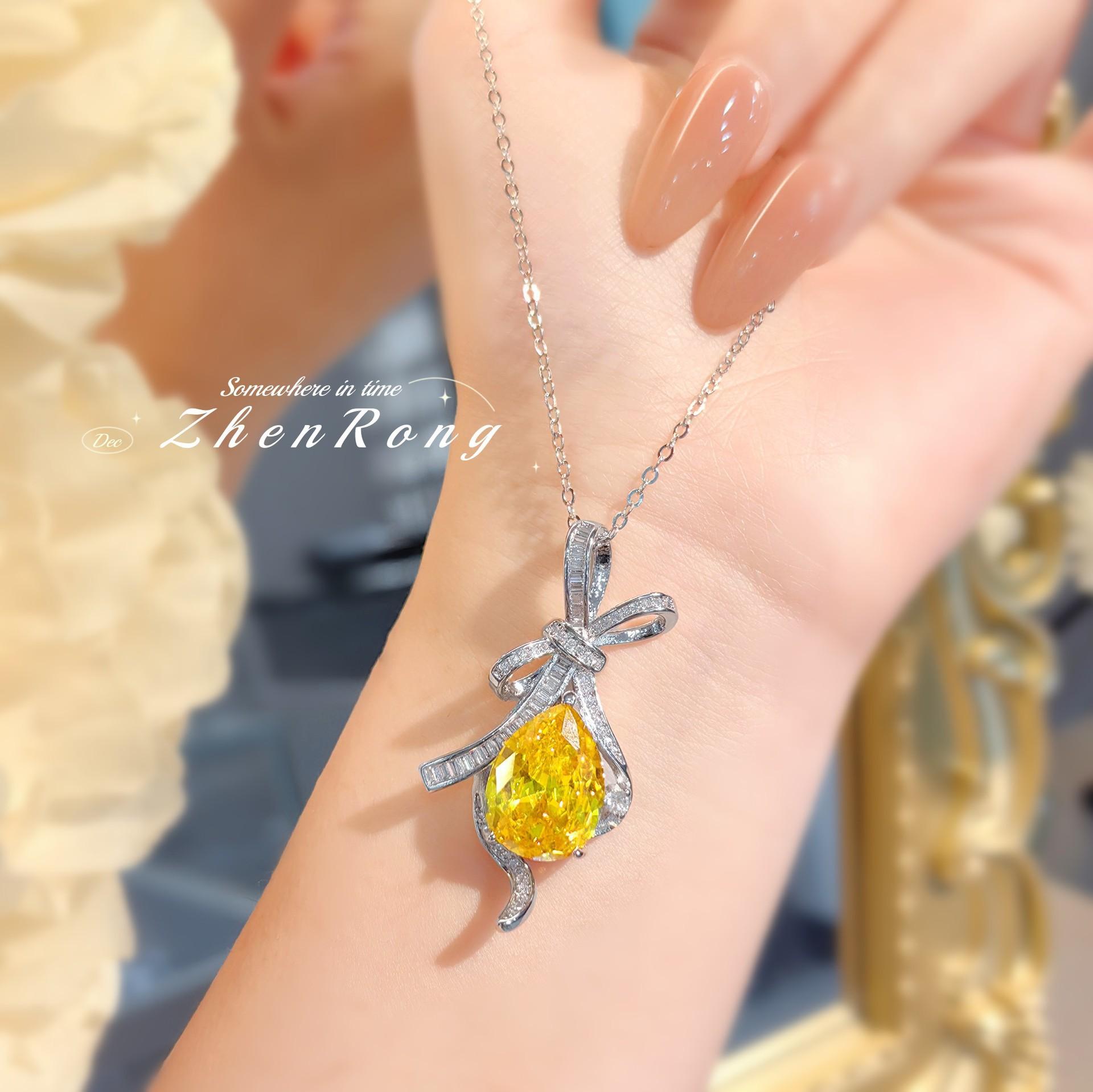Colgante de diamante amarillo con forma de T de lujo, ligero y moderno, con lazo colgante, para mujer.