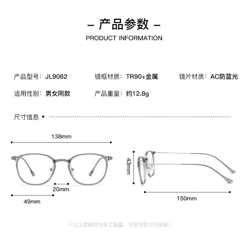 Nuevas gafas cuadradas de montura pequeña para hombre, estilo universitario, antiluz azul, gafas de detección avanzada, gafas para mujer, venta al por mayor de fábrica.