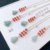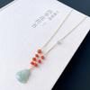 Colgante de Buda verde de jadeíta natural de grado A. Tamaño: 29,5 x 16,5 mm. Incluye cadena de oro de 14 quilates con jadeíta, jadeíta roja y rojo del sur. Estilo original. Precio de venta en vivo.