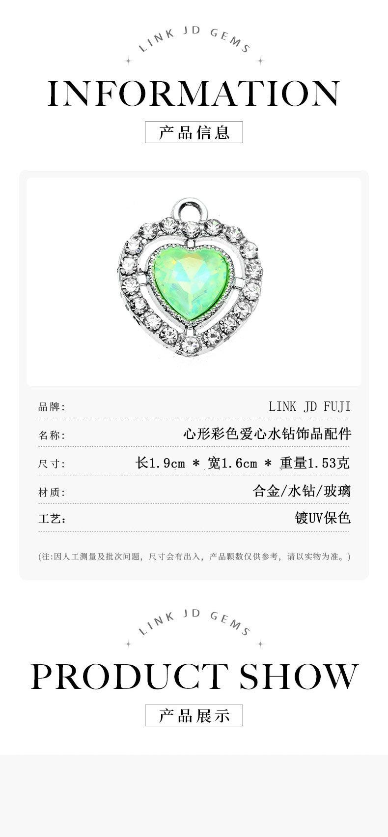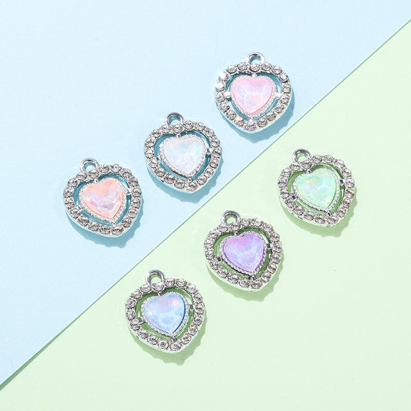 Accesorios Colgante de Corazón Colorido Colgante Transparente en Forma de Corazón Accesorios de Joyería de Aleación de Diamantes Collar Pulsera DIY Ropa