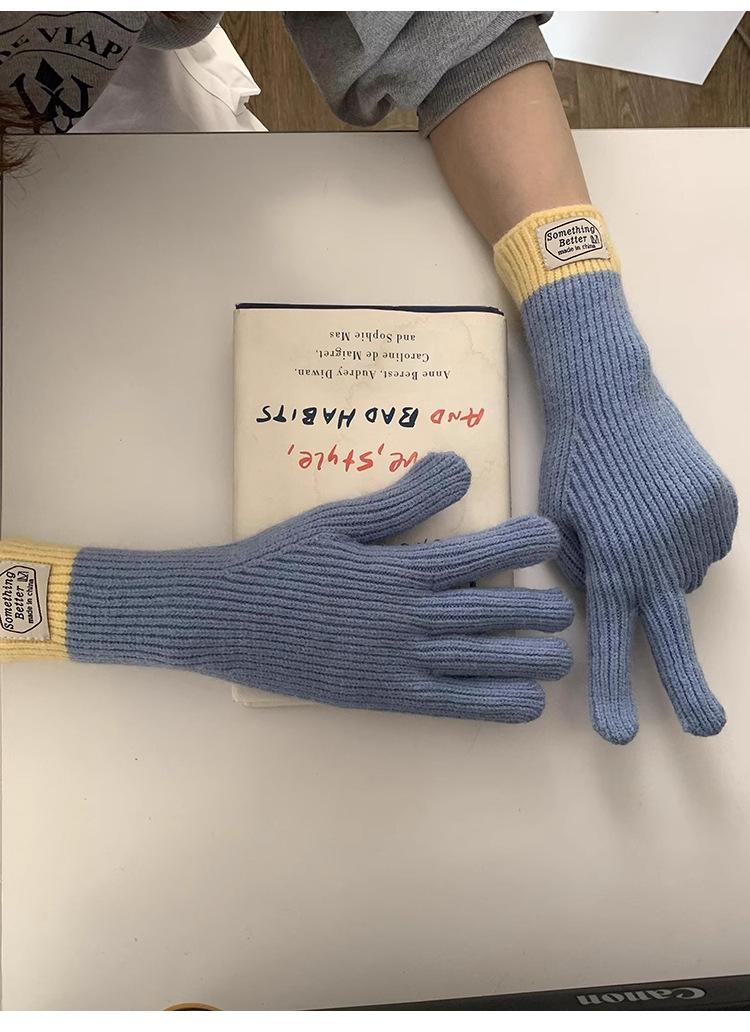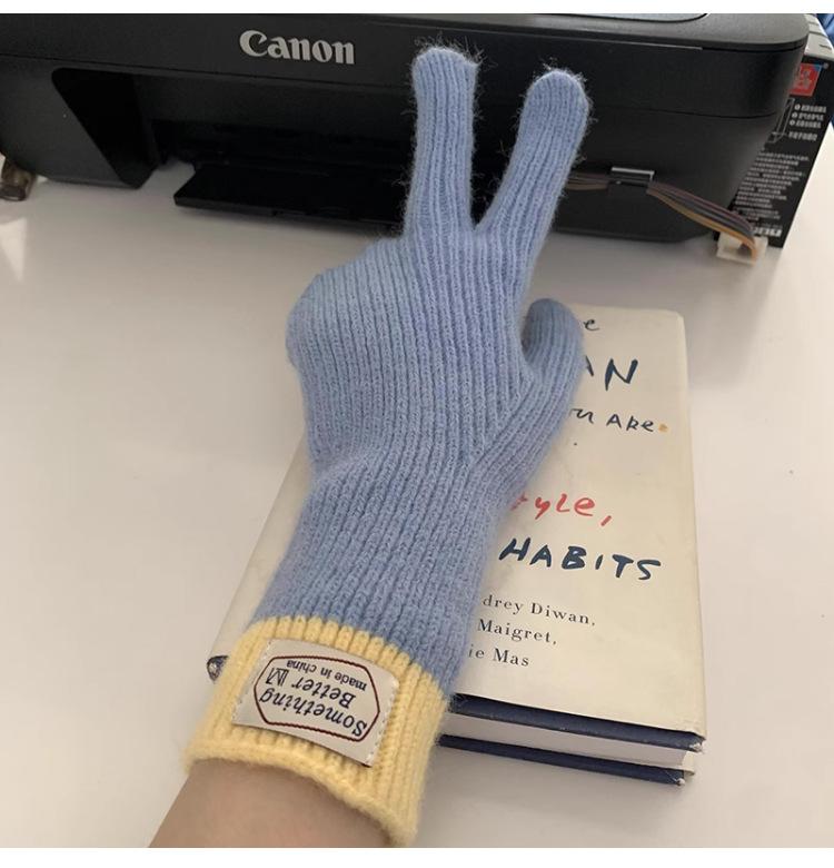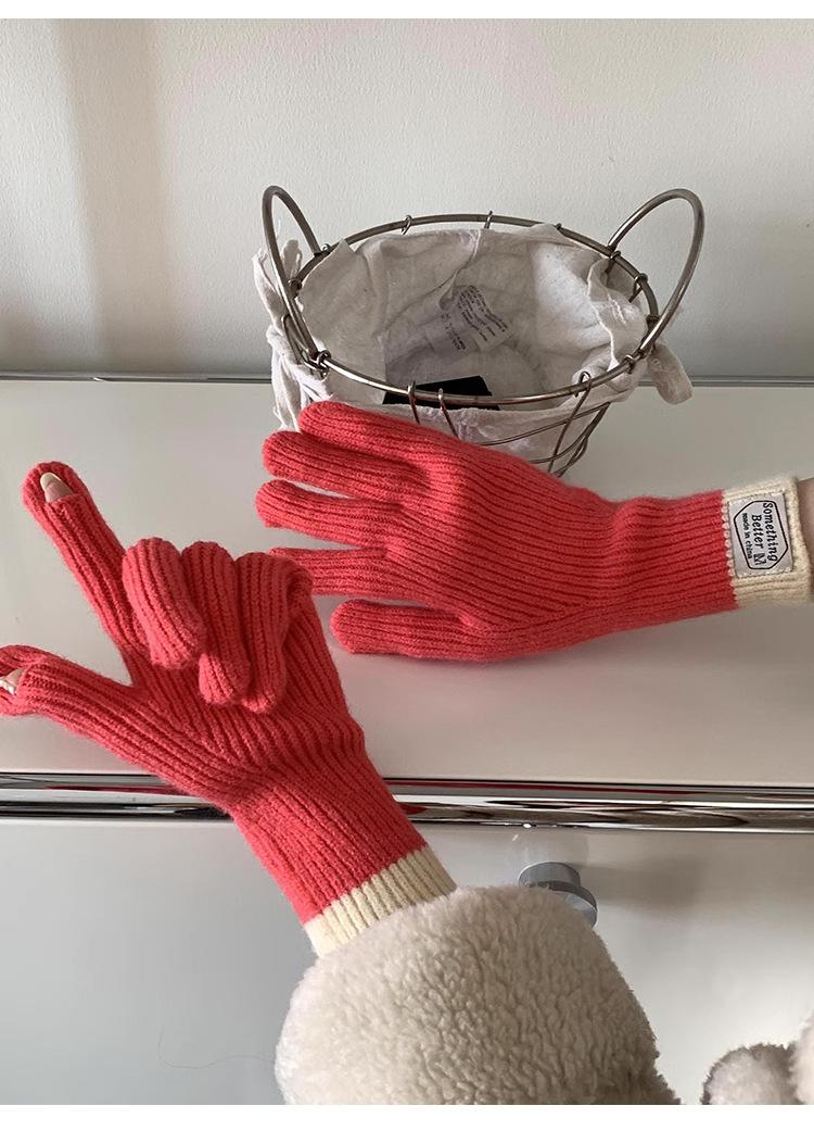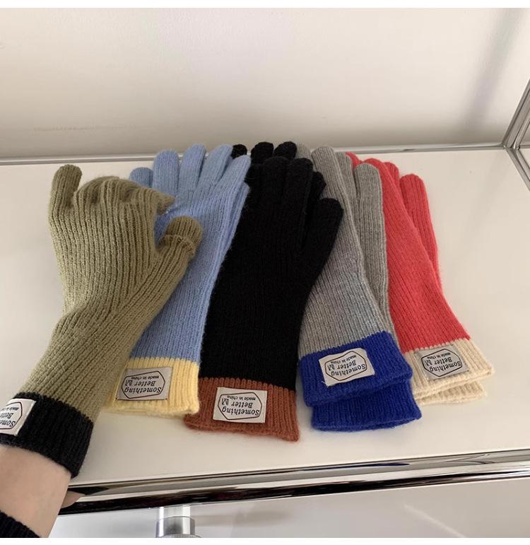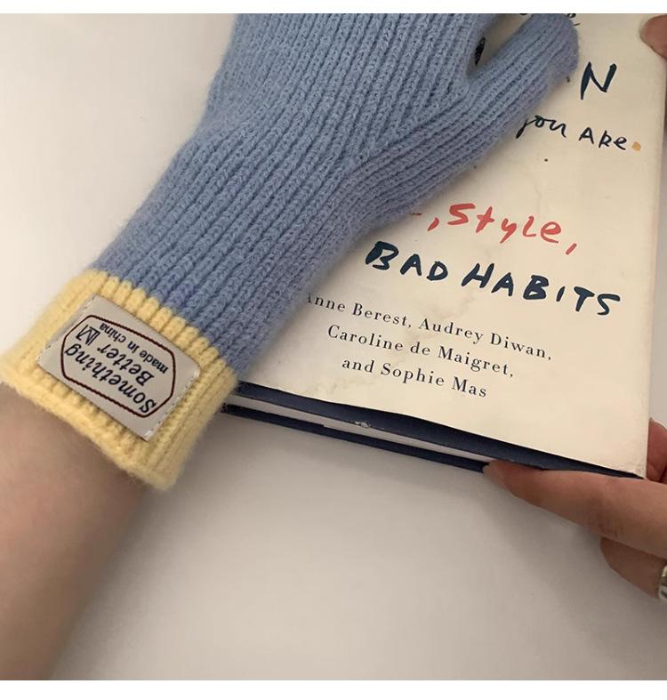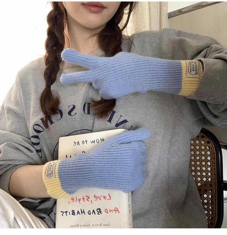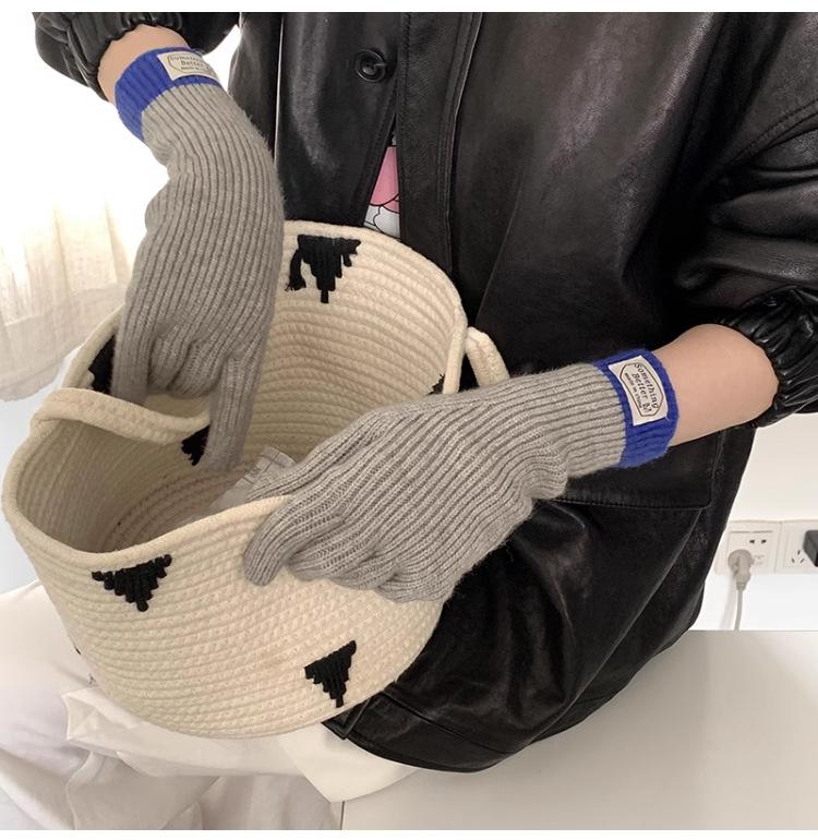 Guantes de punto cálidos para mujer, con dedos separados, para ciclismo, con pantalla táctil, estilo coreano, resistentes al frío, largos, de lana para invierno.