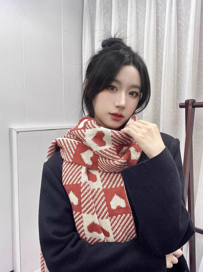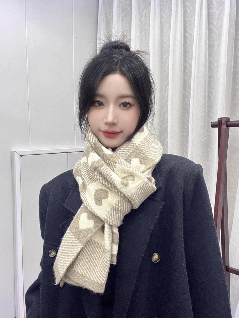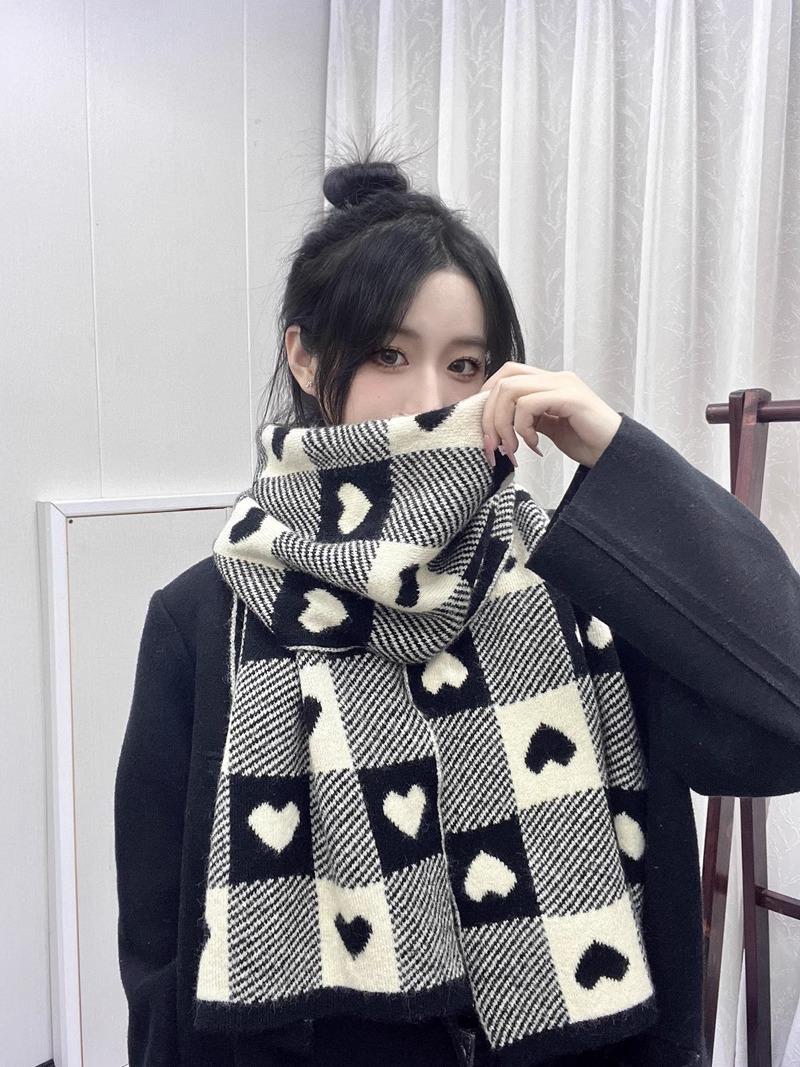 Bufanda Suave y Cerosa de Cuadros para Mujer Otoño e Invierno Bufanda Gruesa y Cálida Estilo Japonés Dulce Más Fácil de Combinar Chal Estilo Personalizado