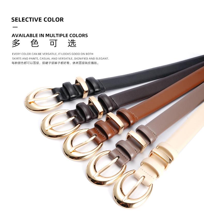 Cinturón de Mujer Transfronterizo Nuevo Cinturón con Hebilla de Pin Moda Combinable de Alta Calidad Imitación Cuero Cinturón de Mujer en stock