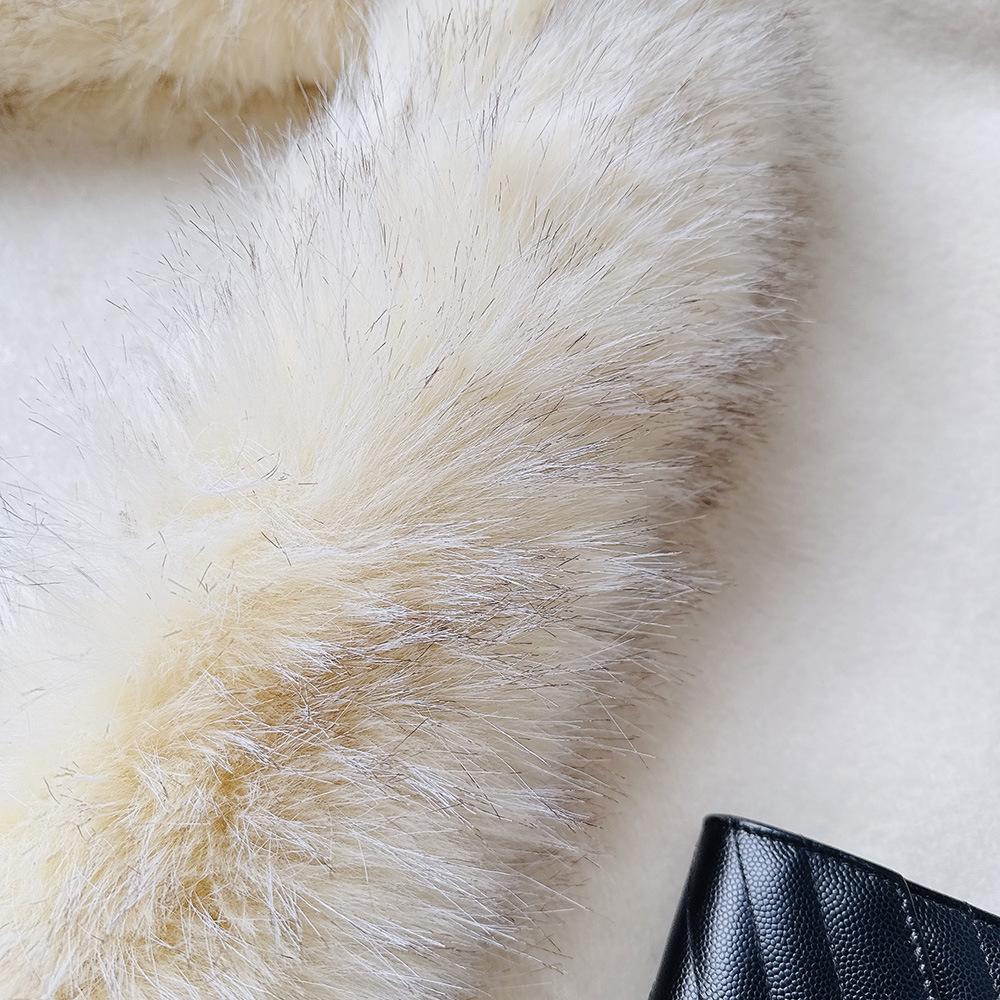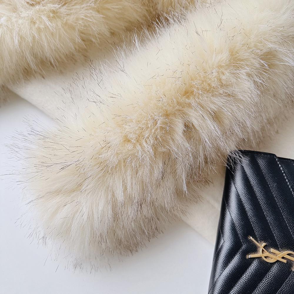 El cuello de pelo largo es esponjoso y no tiene olor. El pelo es estampado y viene en beige y negro, dándole una sensación de muy alta gama.