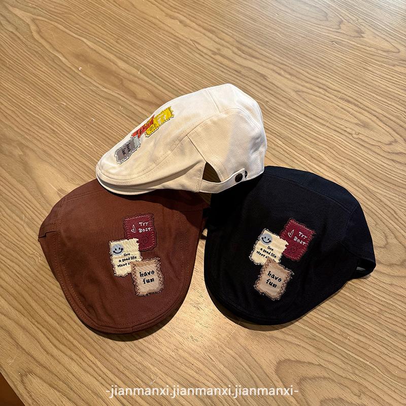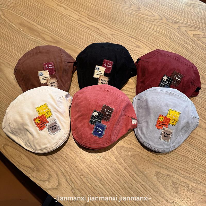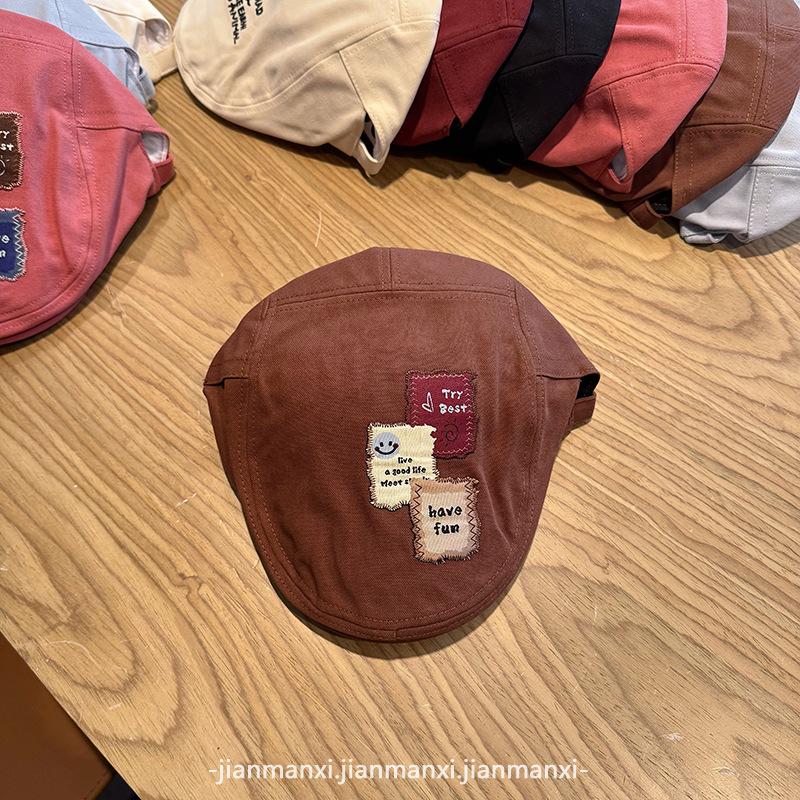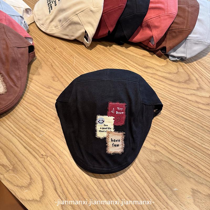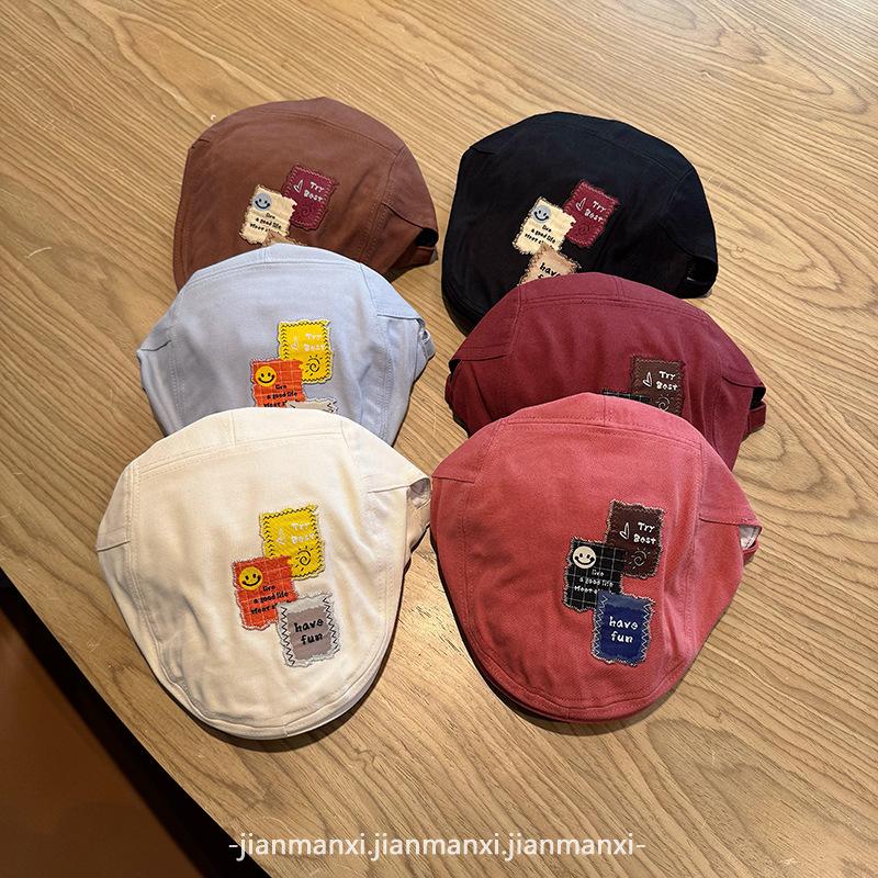 2025 Primavera Temprana Cara Sonriente Costuras Pic Gorra Hacia Adelante Simple para Mujer Cara de Chica Caliente Pequeña Boina Inversa