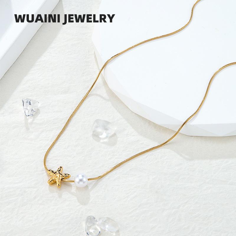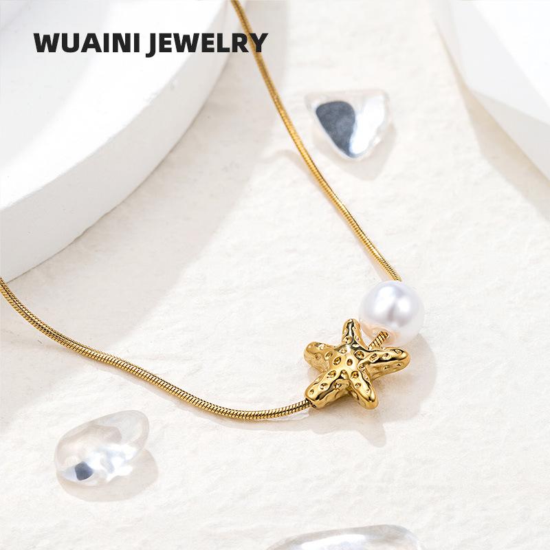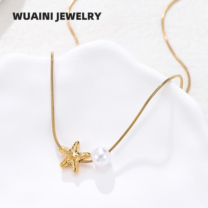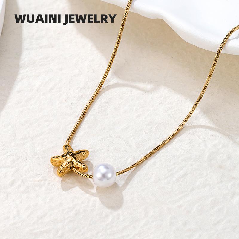 Nuevo collar de perlas de estrella de mar apilado de acero de titanio de alta calidad que no se decolora cadena de clavícula femenina accesorios de nicho de lujo ligero al por mayor
