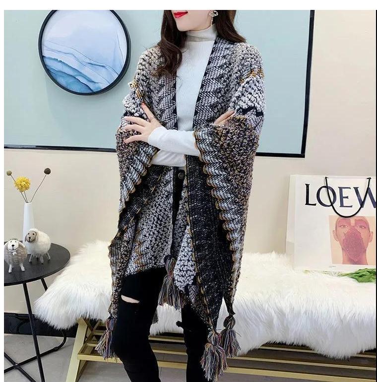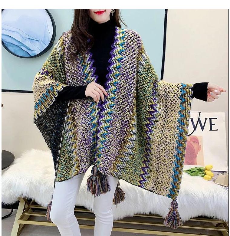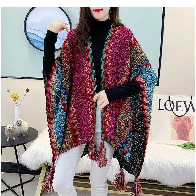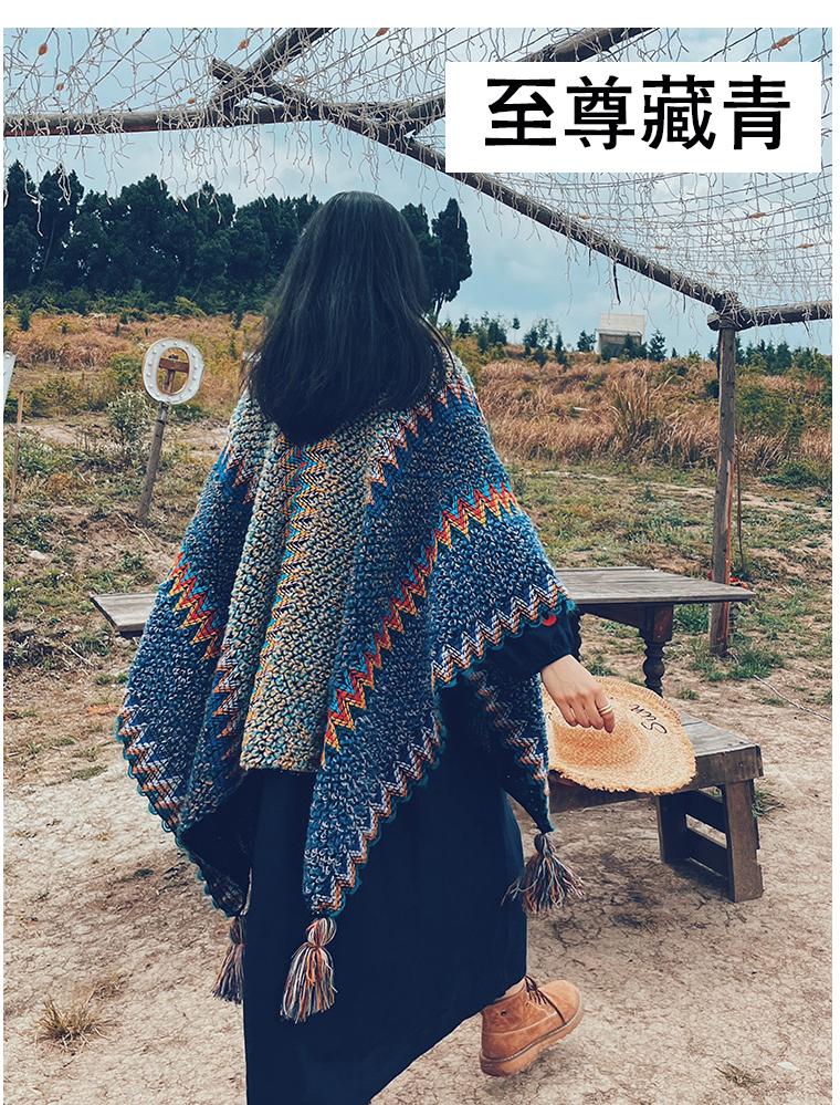 Chal Capa Bufanda Nuevo Estilo Primavera y Otoño Estilo Étnico Qinghai Xizang Yunnan Dali Turismo Capa Gruesa con Abertura Mujer