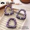 A cat apple, A love pepper bear, A heart bear, A brown doll, A pink doll, One black and purple frame, One brow...