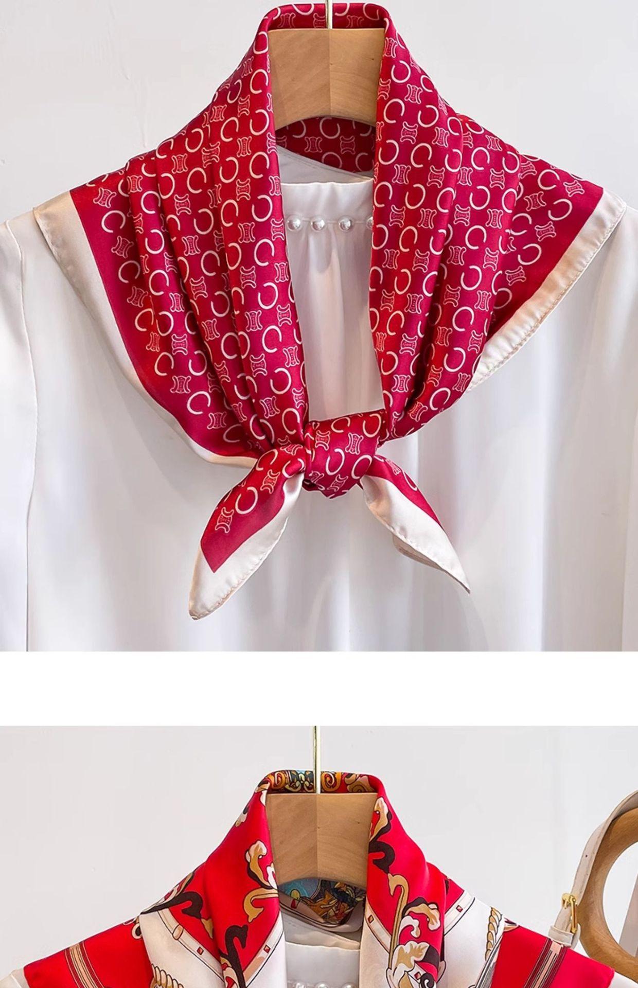 Pañuelo Cuadrado Pequeño Letra C Estilo Lujo Ligero Pañuelo de Seda Banda para el Cabello de Seda Imitación para Mujer Pañuelo de Cinta de Alta Gama Primavera Otoño Verano para Madre