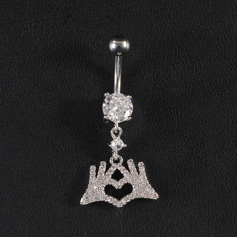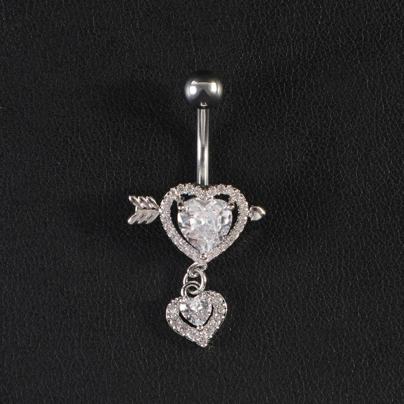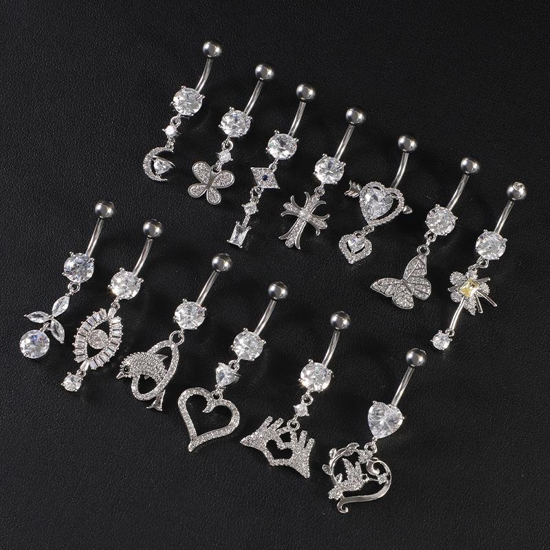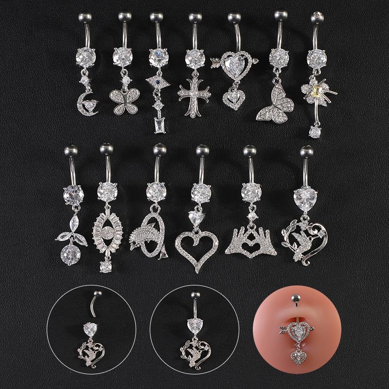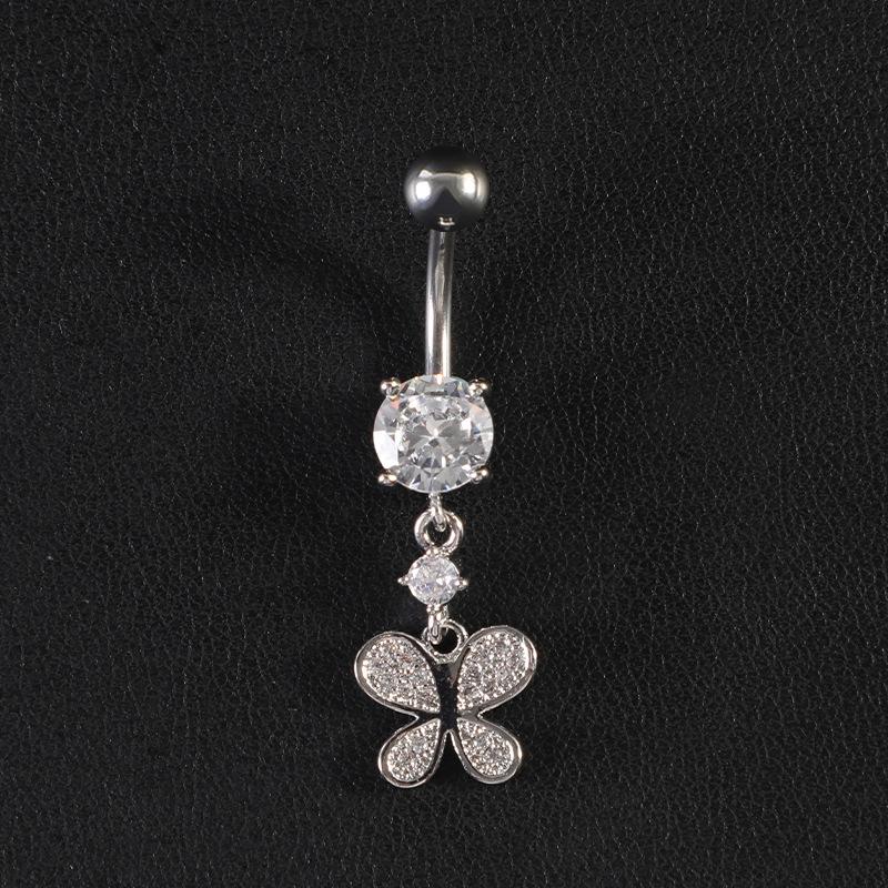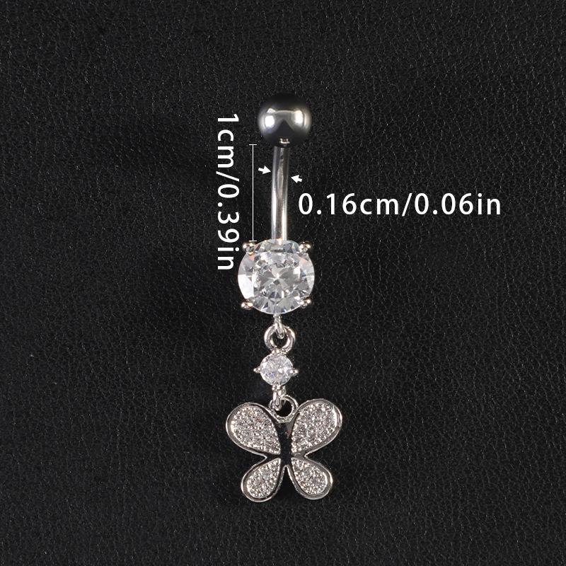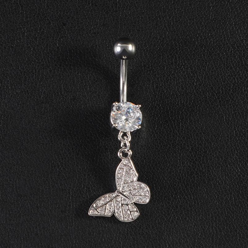 Nuevo anillo para ombligo con forma de corazón de circonita con incrustaciones de cobre y acero inoxidable de comercio electrónico transfronterizo, joyería exquisita para perforar el ombligo con forma de mariposa