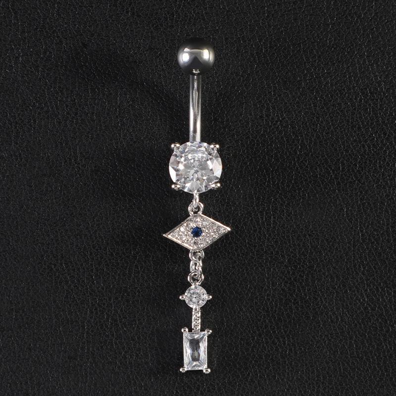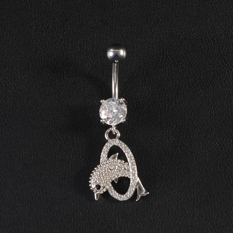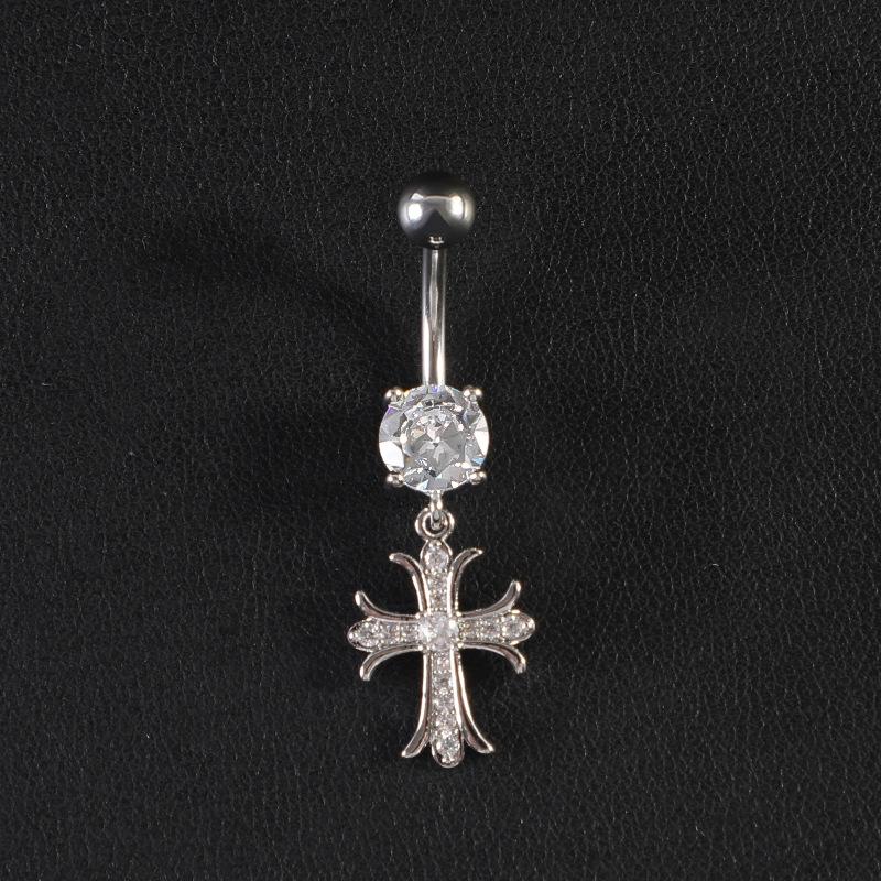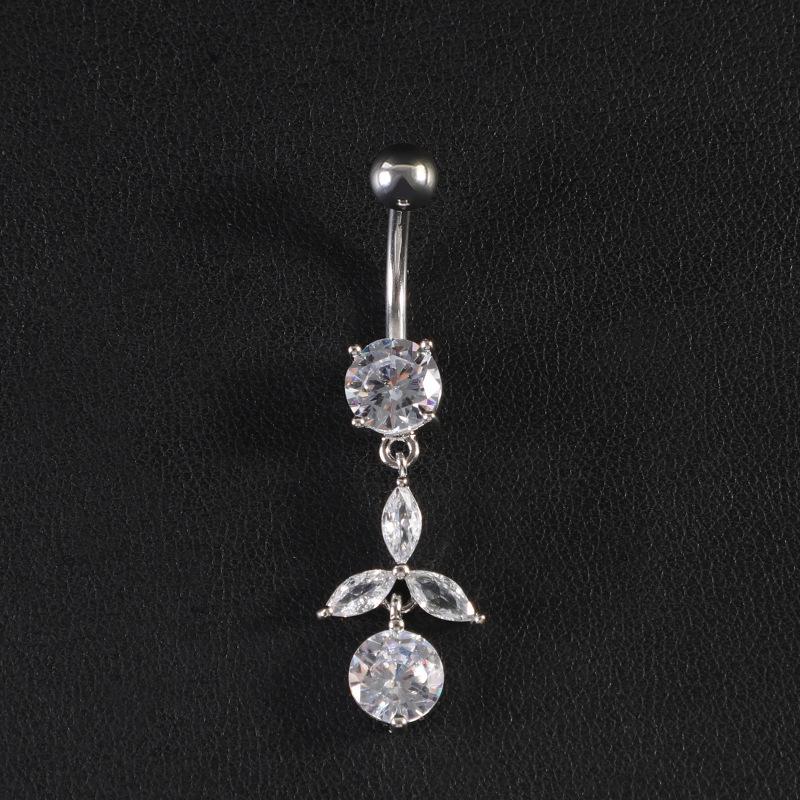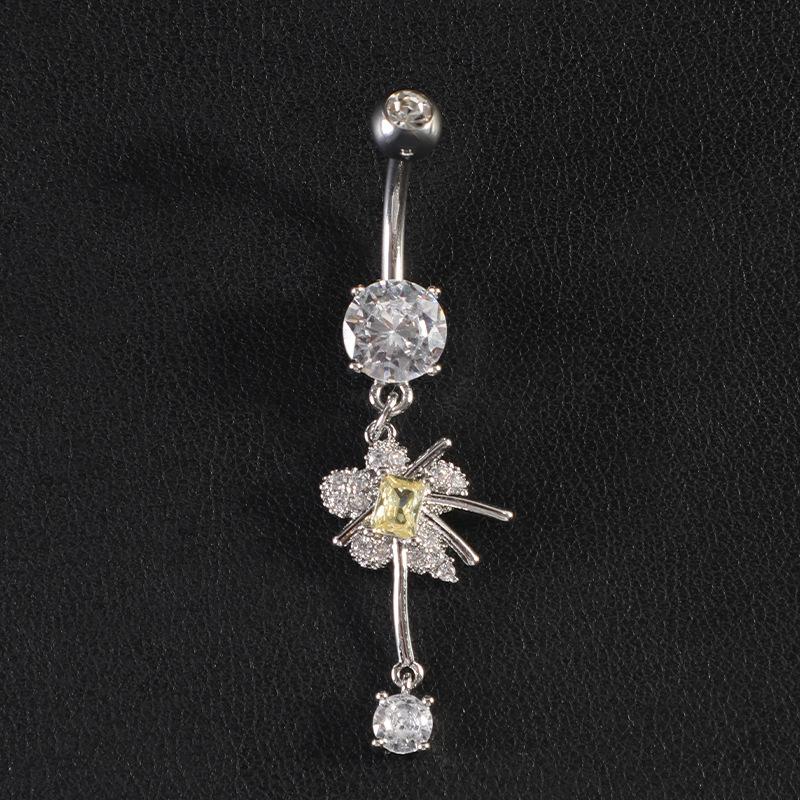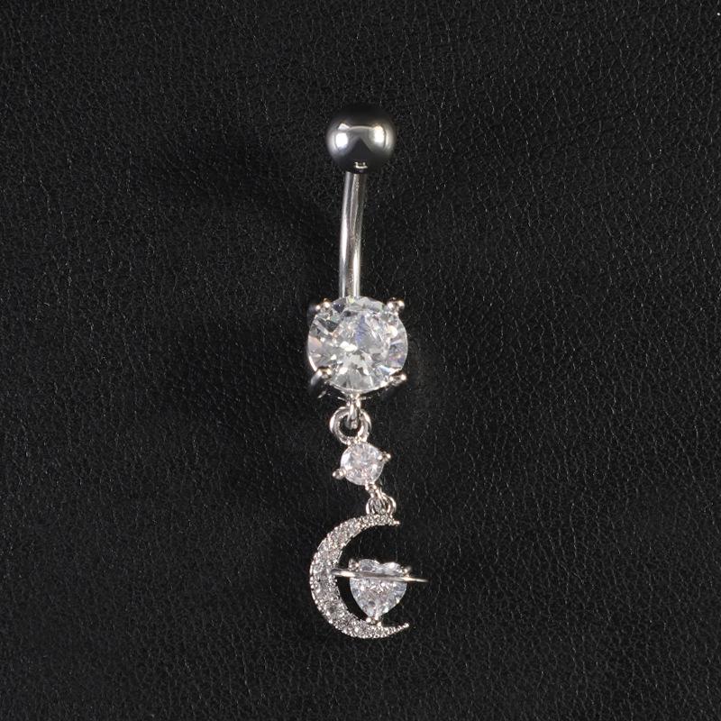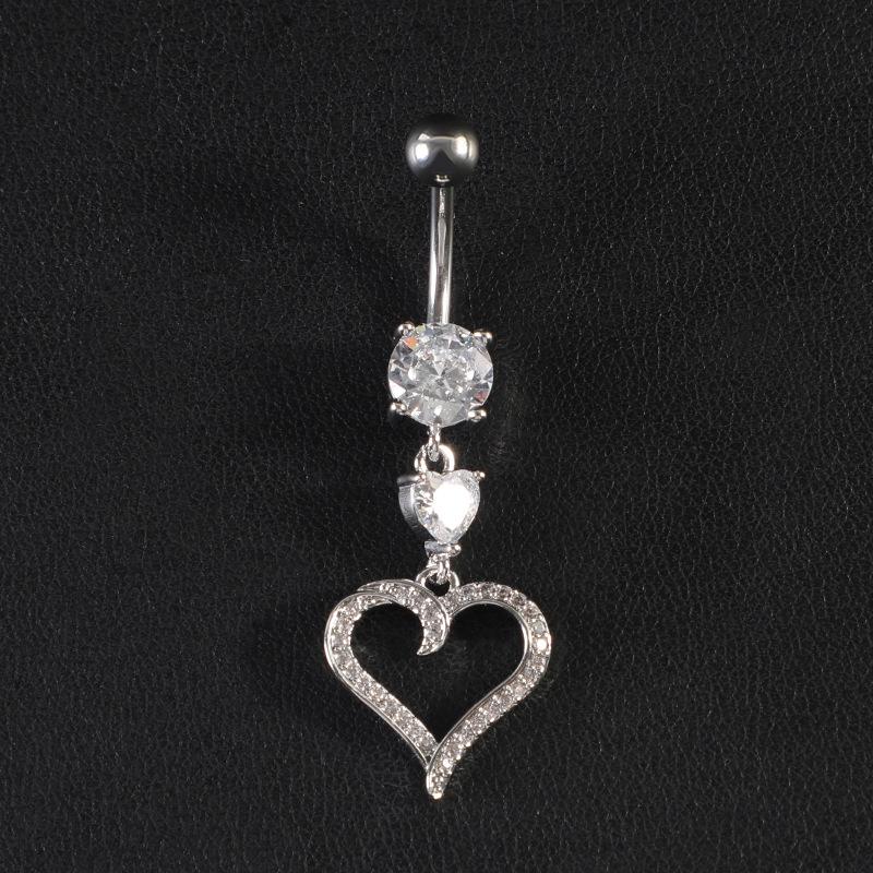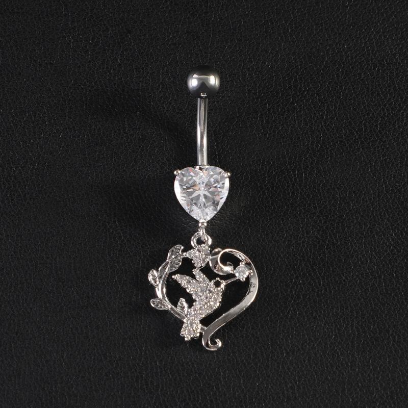 Nuevo anillo para ombligo con forma de corazón de circonita con incrustaciones de cobre y acero inoxidable de comercio electrónico transfronterizo, joyería exquisita para perforar el ombligo con forma de mariposa