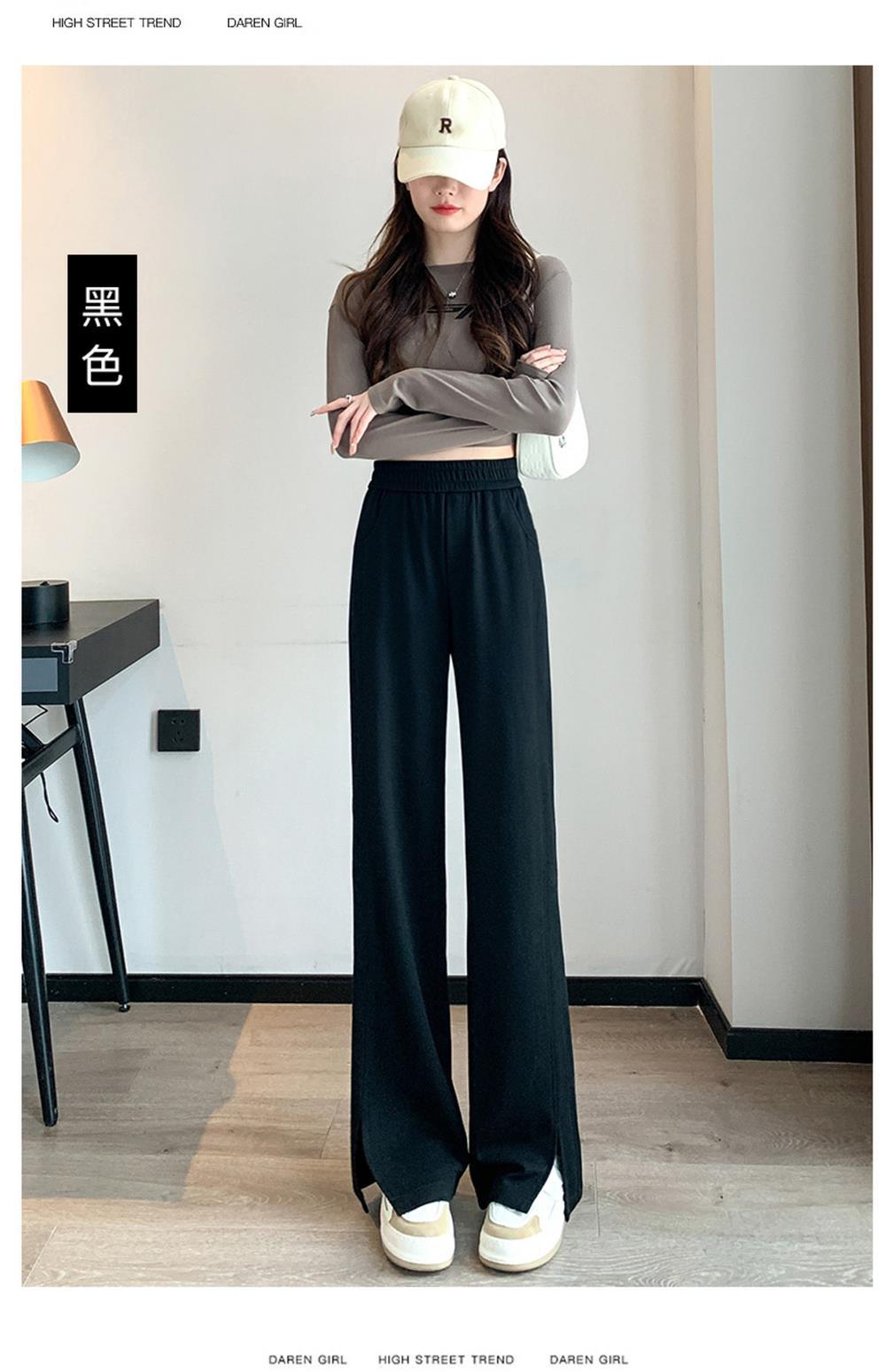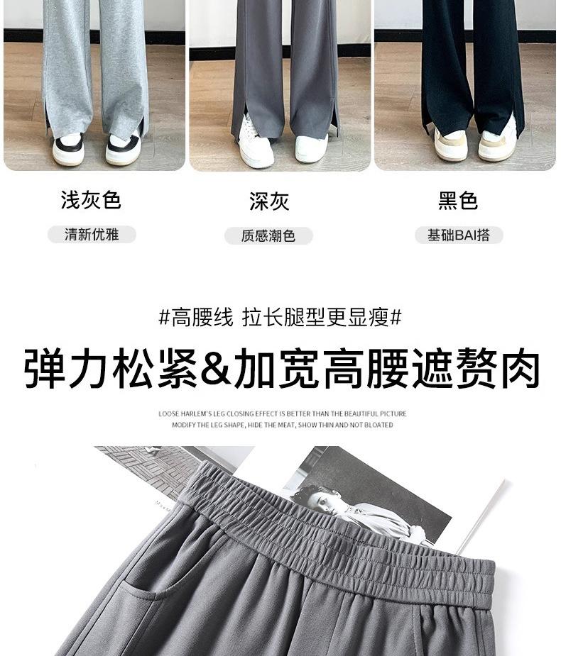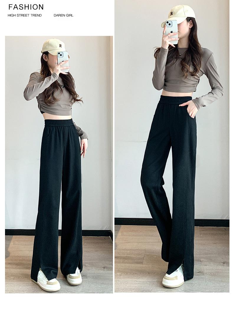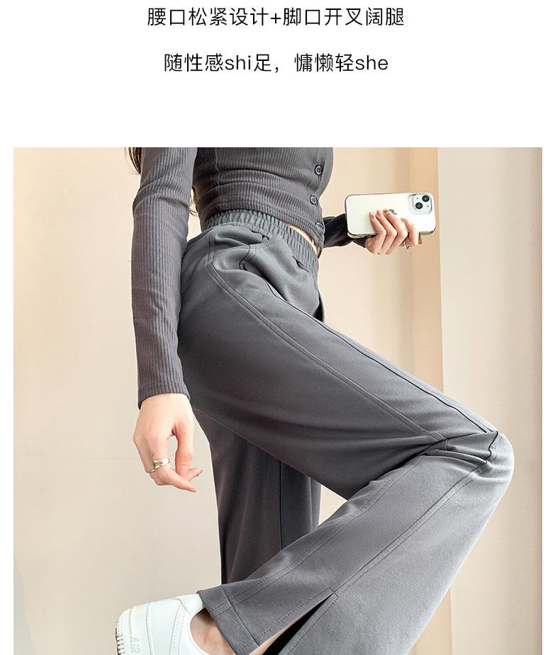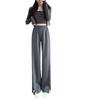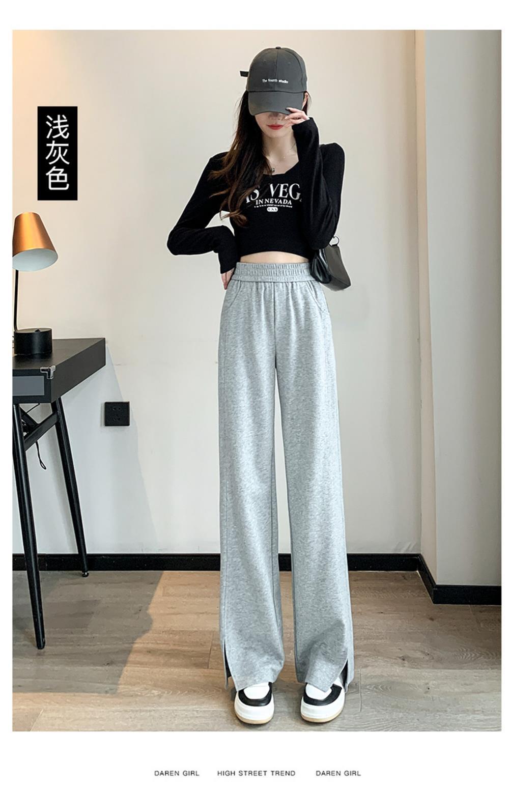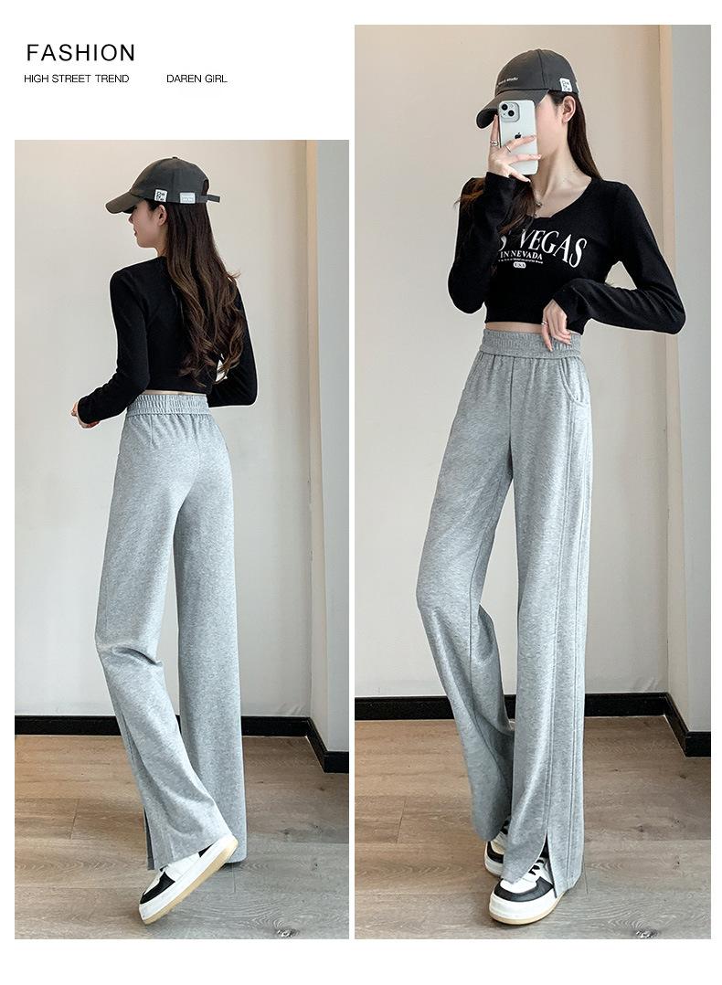Pantalones anchos con abertura gris para mujer, primavera y otoño, cintura alta, estrechos, informales, rectos, deportivos, pequeños, 2025