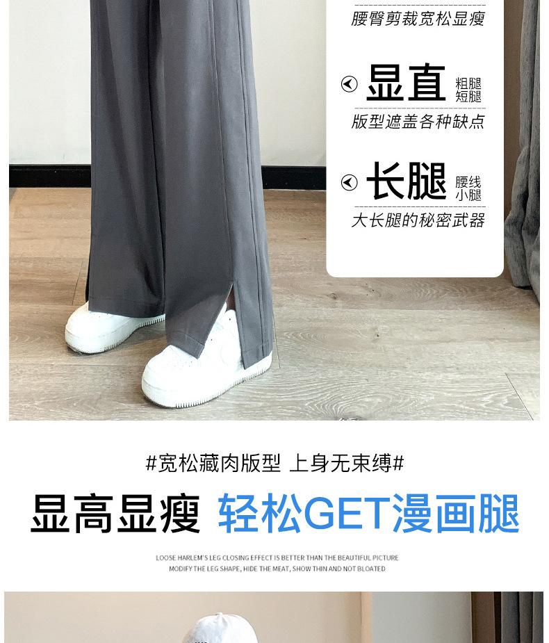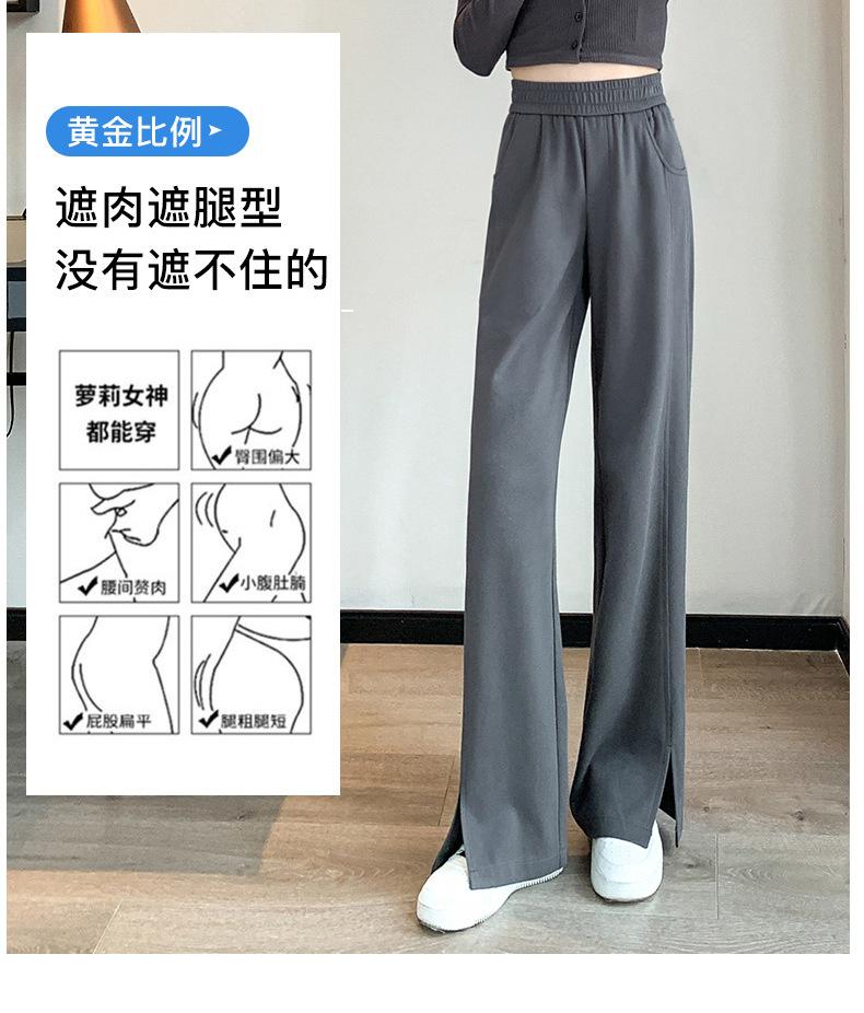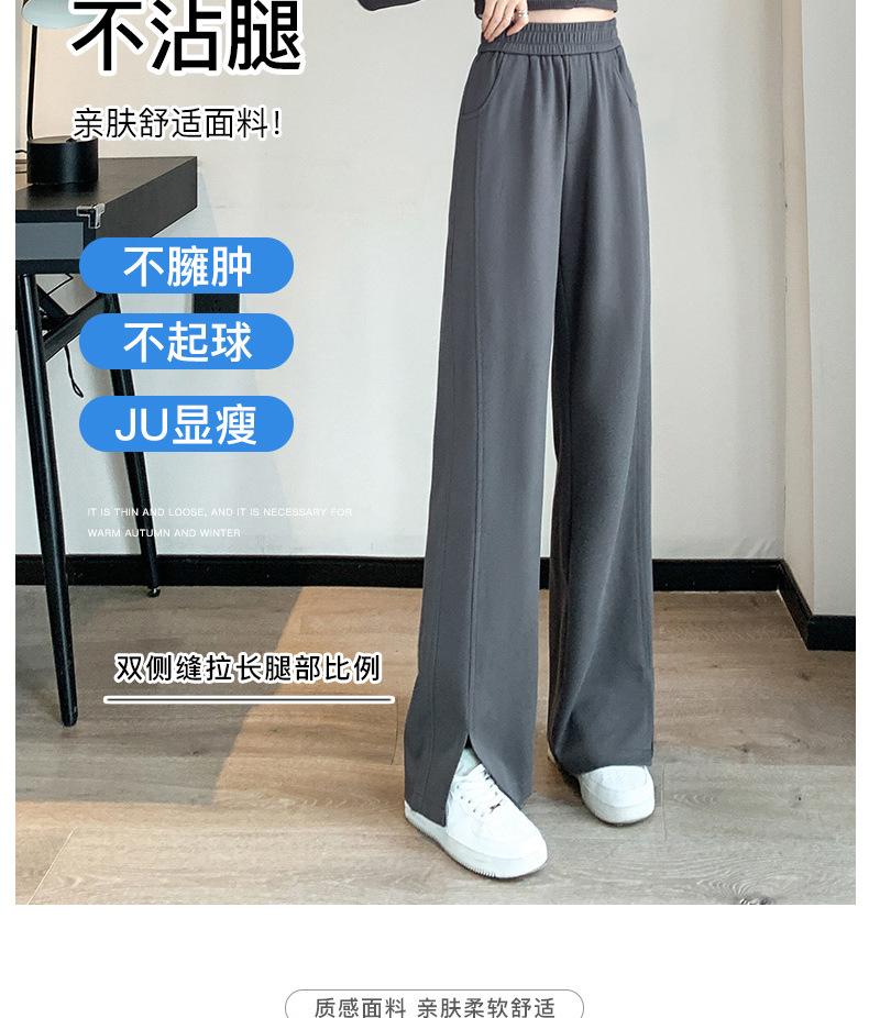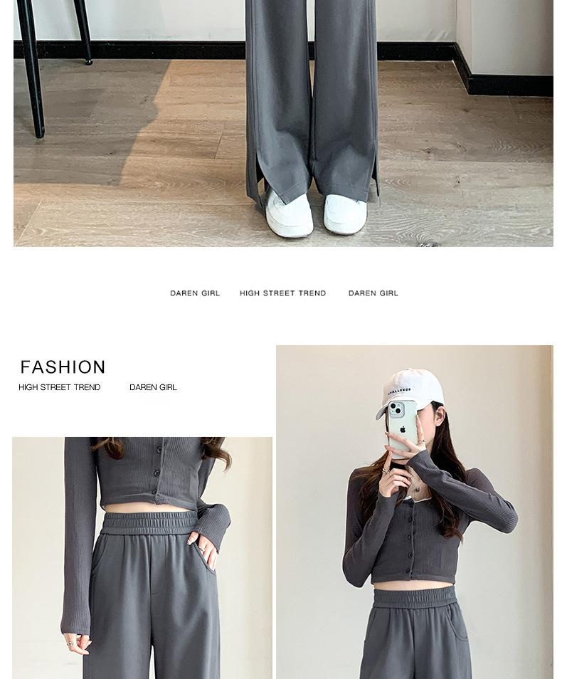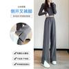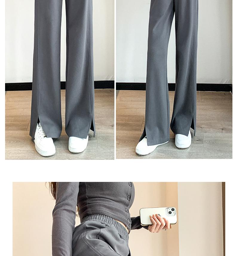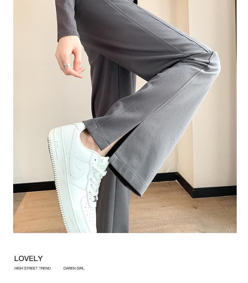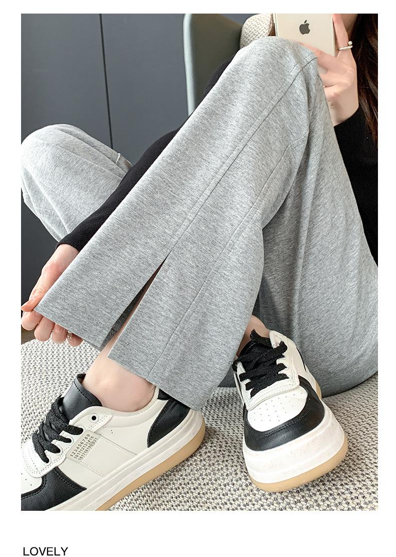 Pantalones anchos con abertura gris para mujer, primavera y otoño, cintura alta, estrechos, informales, rectos, deportivos, pequeños, 2025