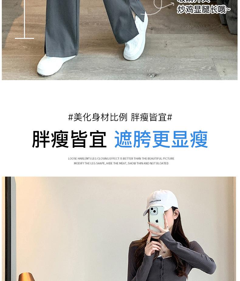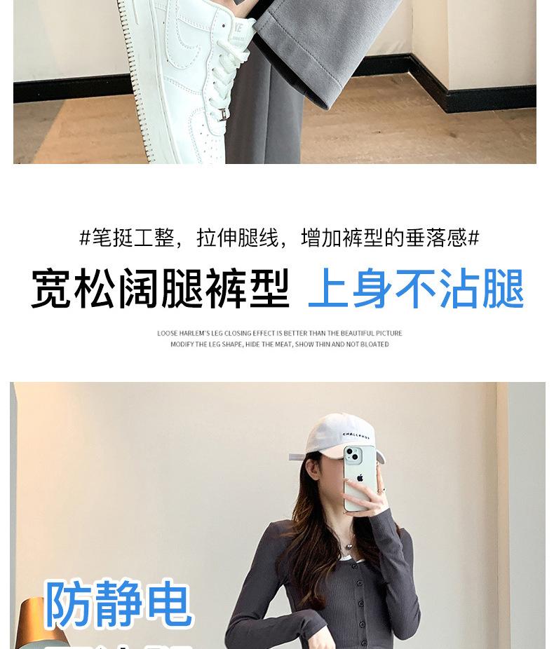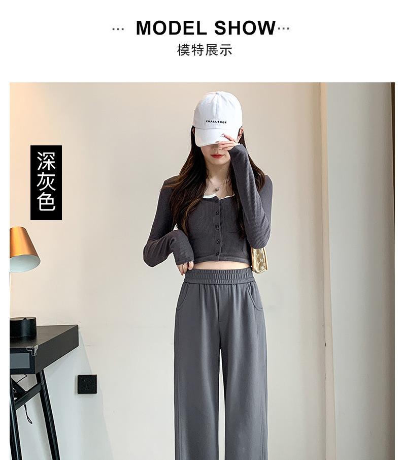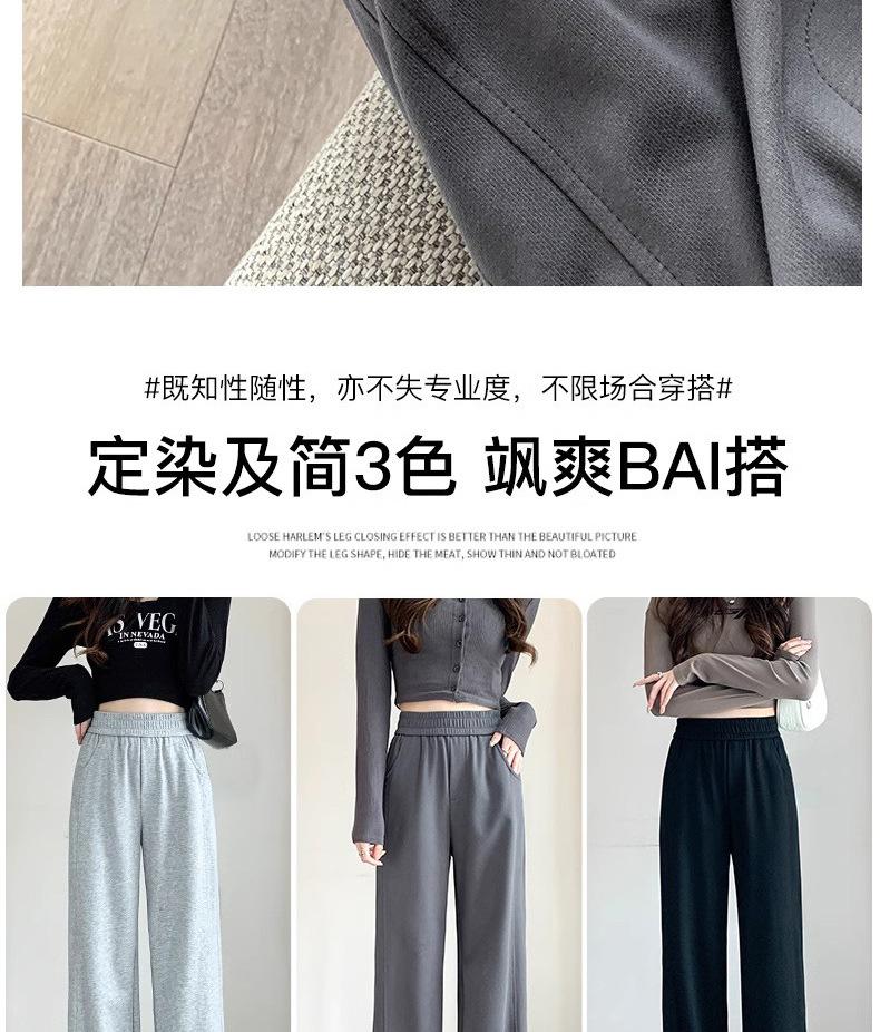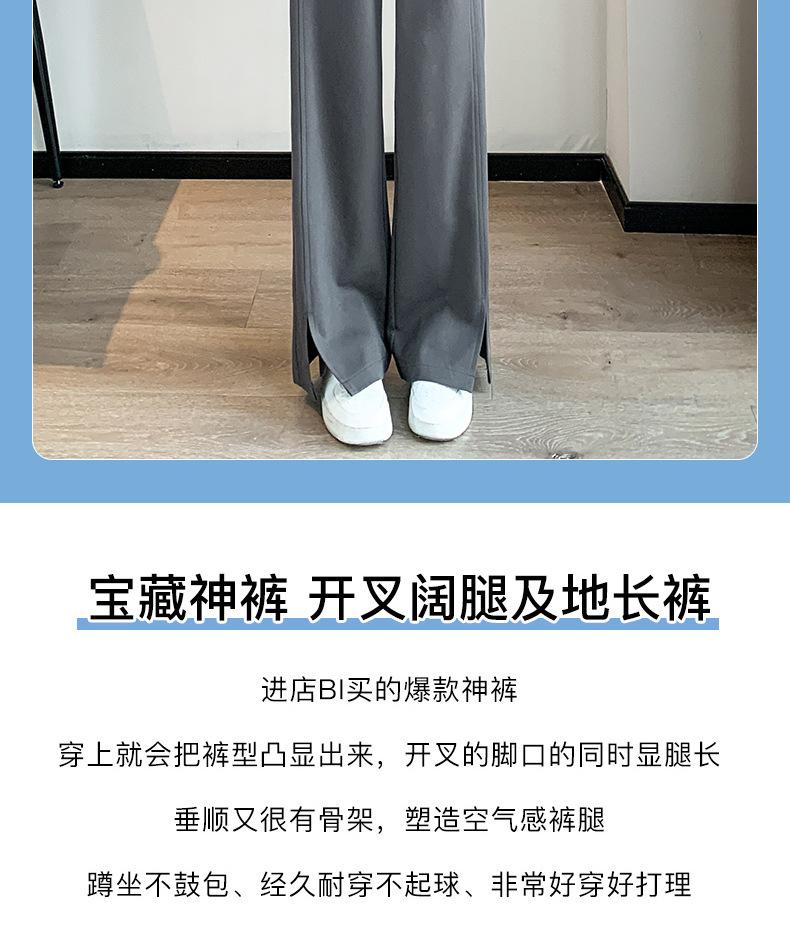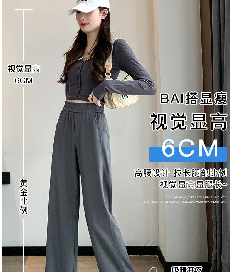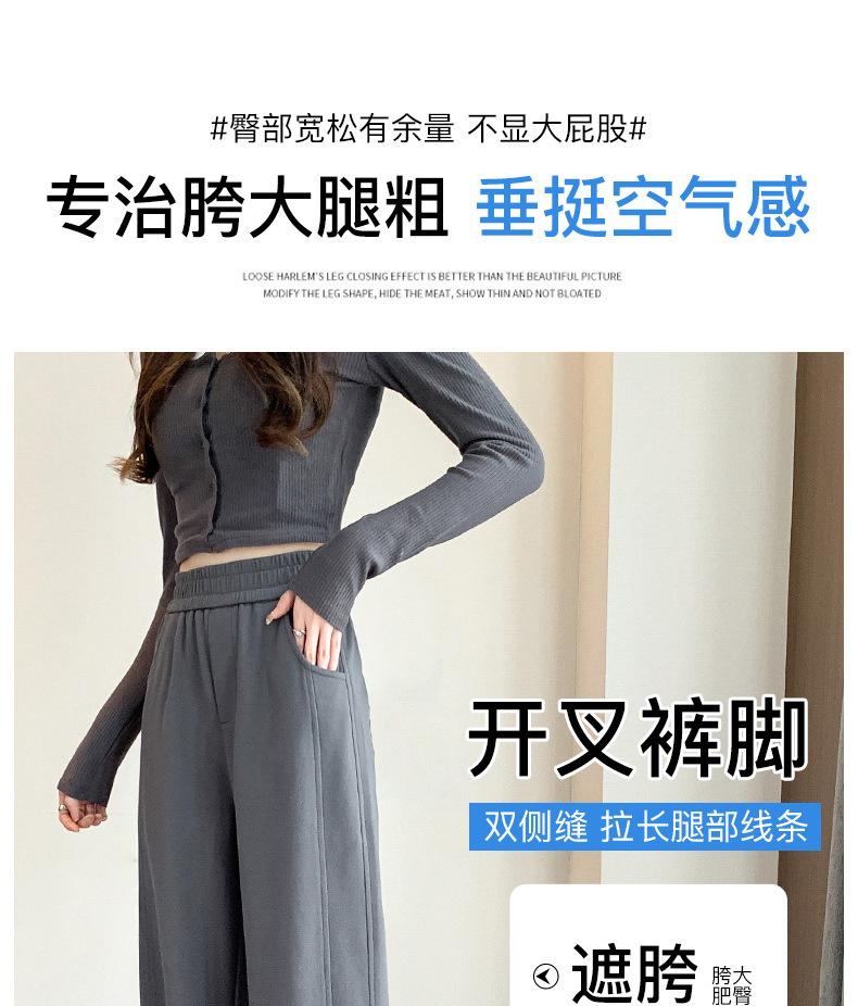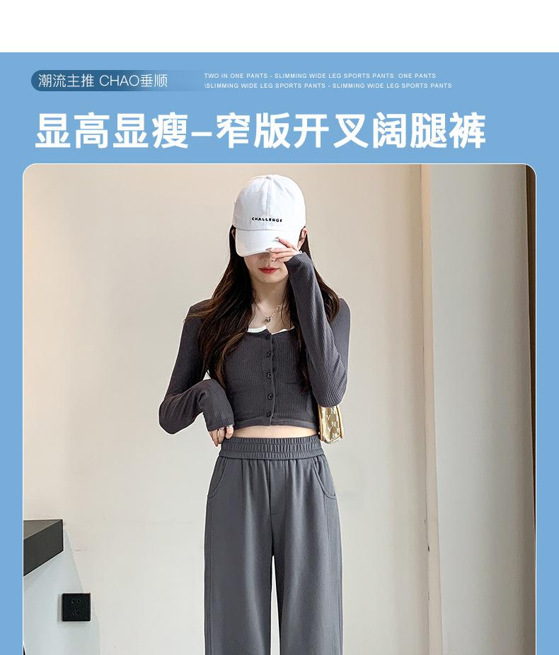 Pantalones anchos con abertura gris para mujer, primavera y otoño, cintura alta, estrechos, informales, rectos, deportivos, pequeños, 2025