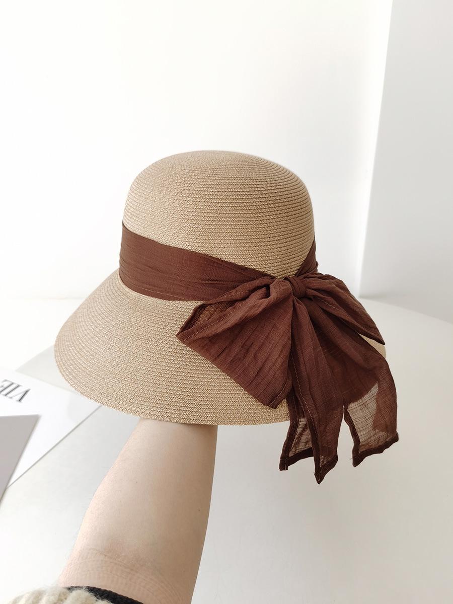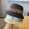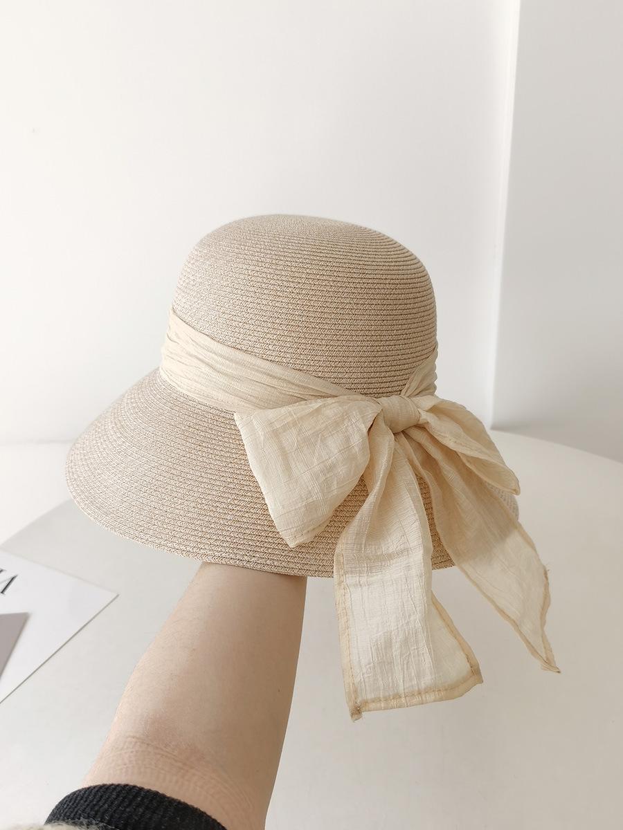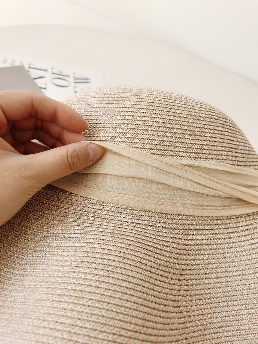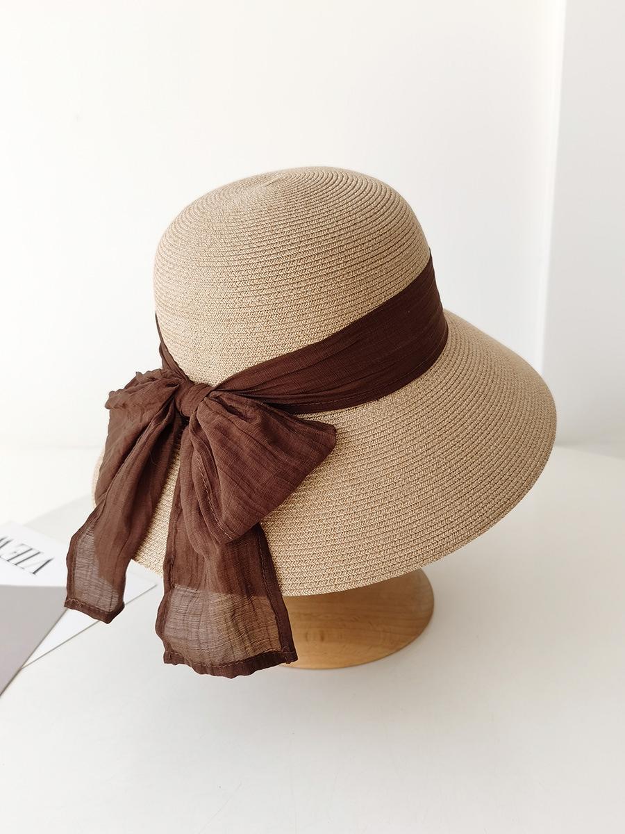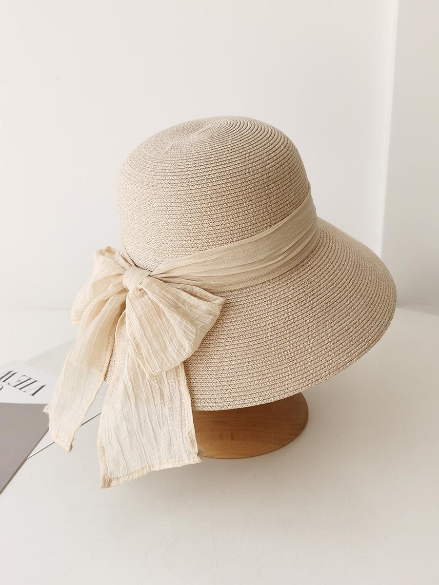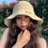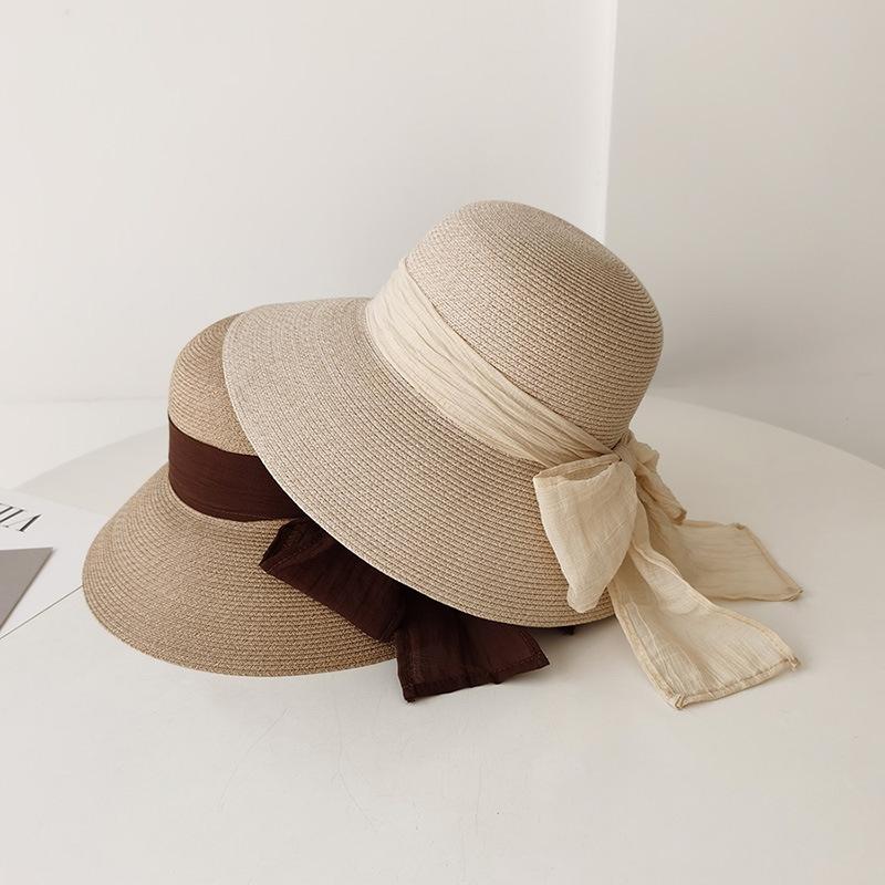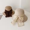 Sombrero de Paja Grande Cornu con Lazo Estilo Fresco Pequeño para Mujer Plegable Protector Solar para la Playa de Verano Sombrero de Pescador de Moda