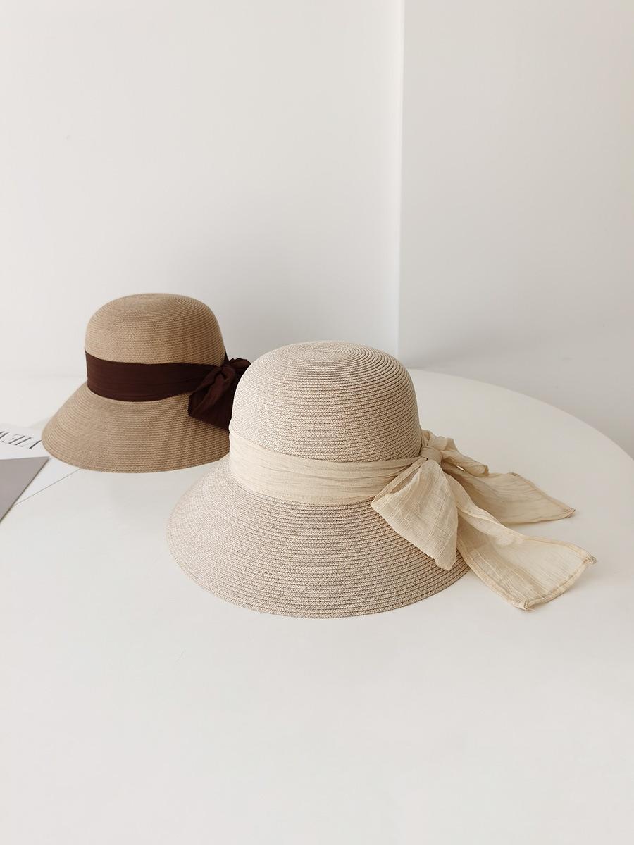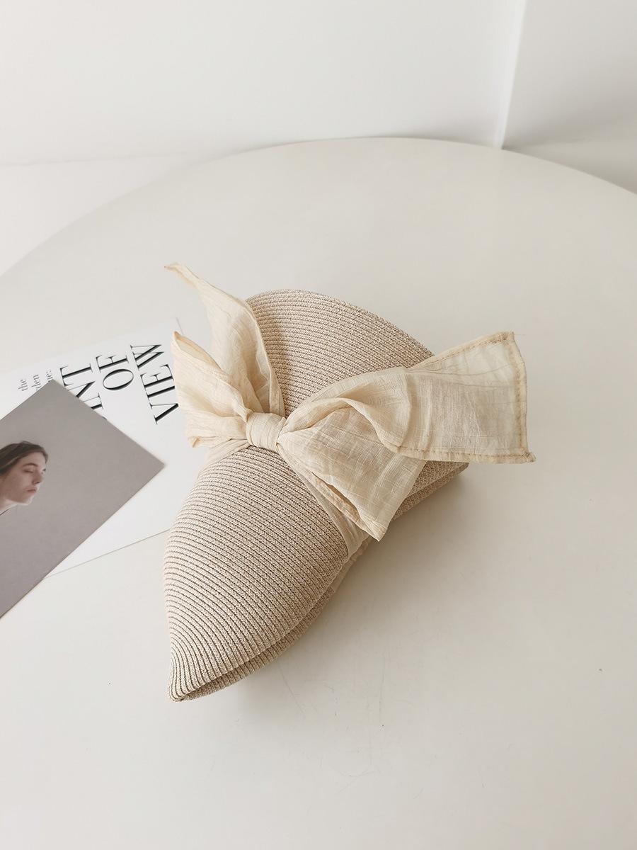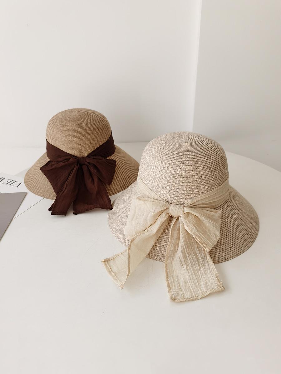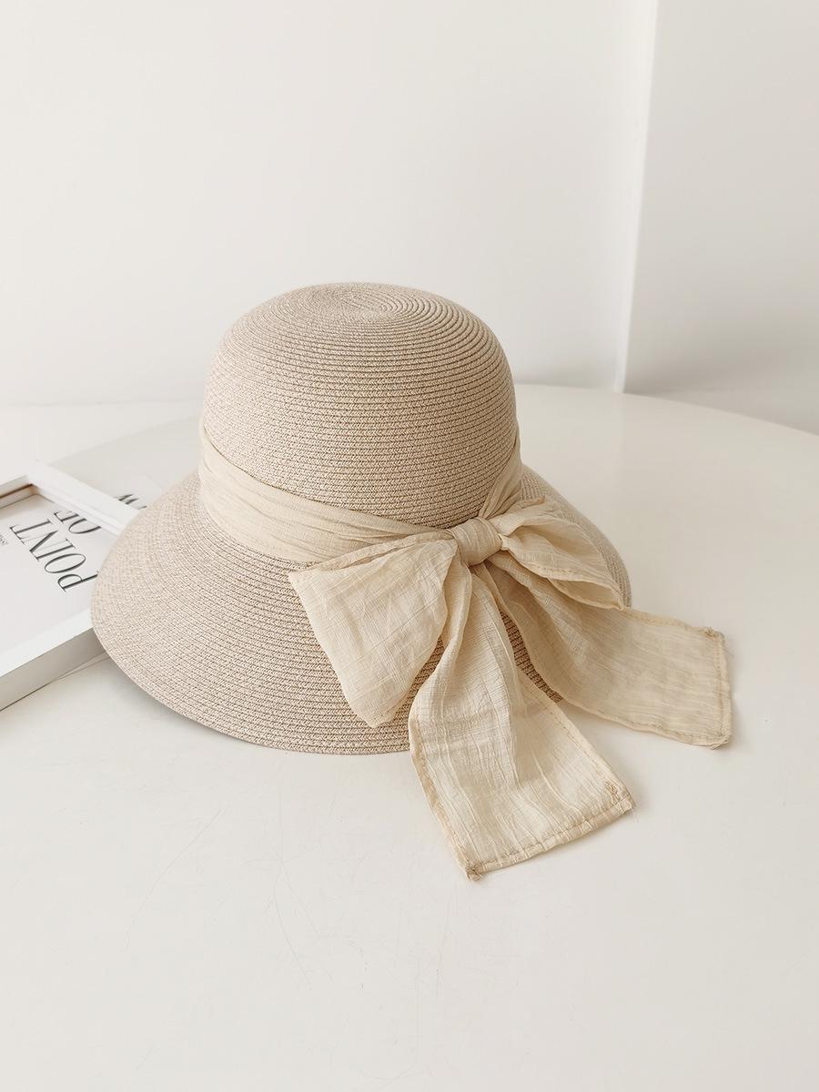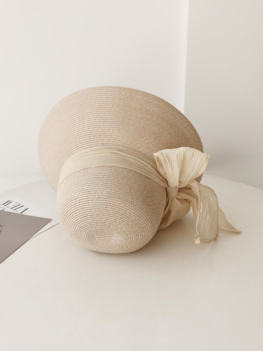 Sombrero de Paja Grande Cornu con Lazo Estilo Fresco Pequeño para Mujer Plegable Protector Solar para la Playa de Verano Sombrero de Pescador de Moda