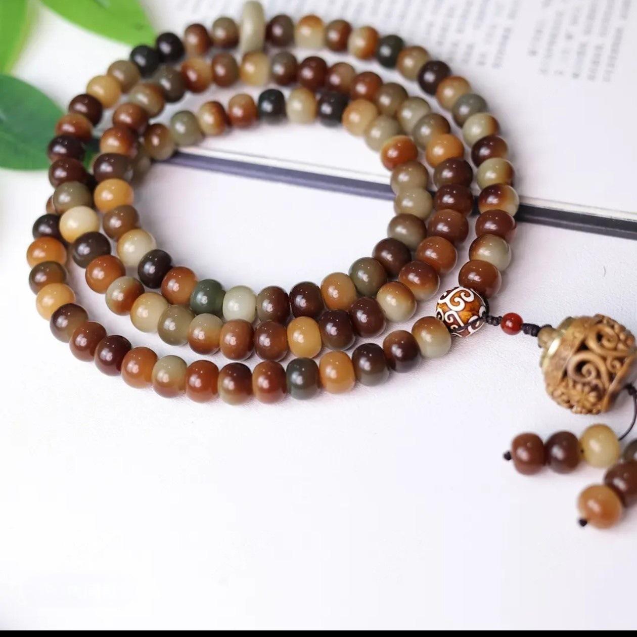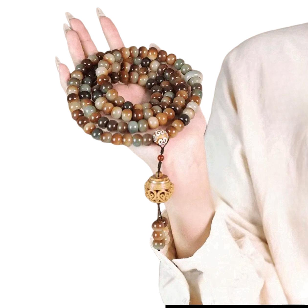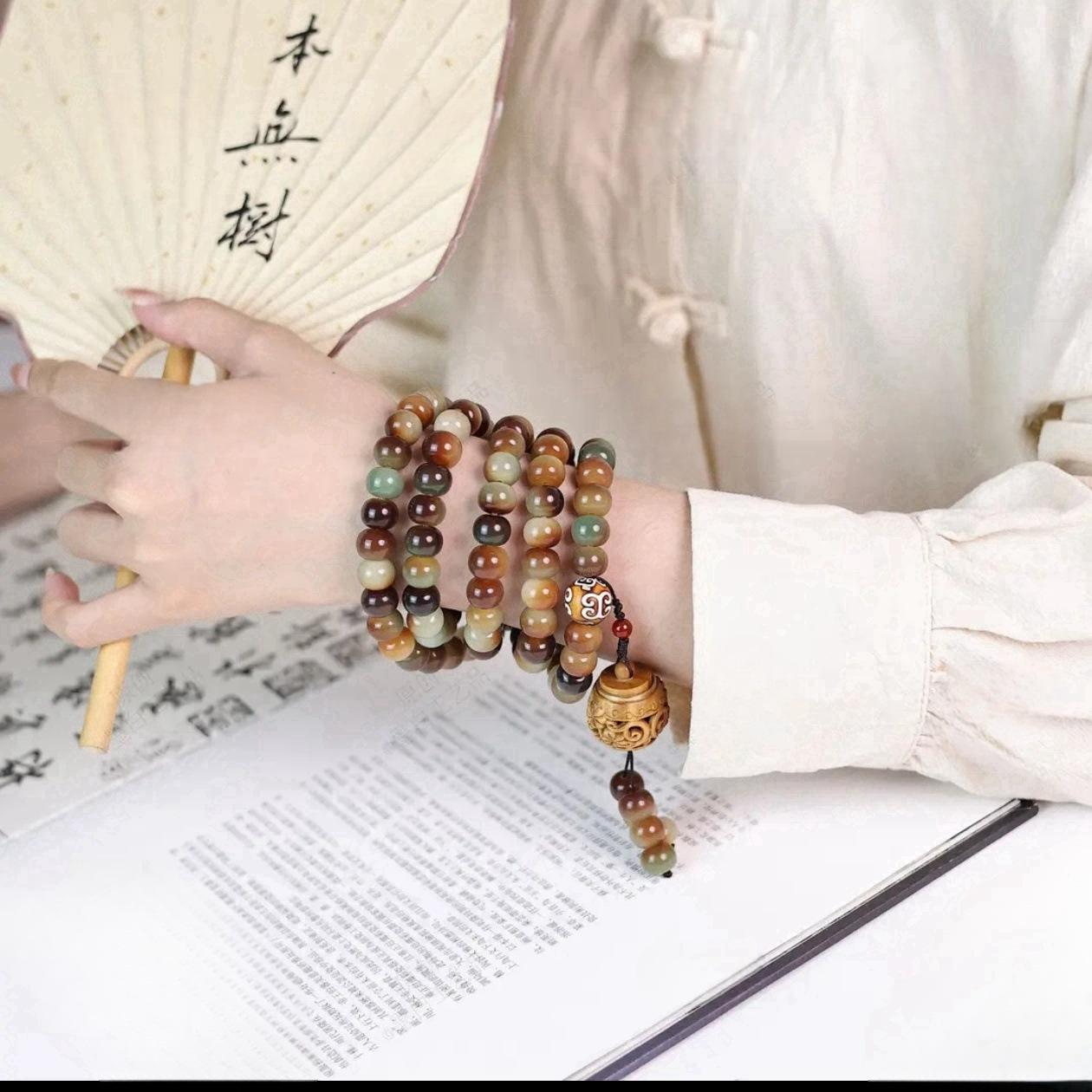 Pulsera Rosario de Raíz de Bodhi Original de 108 Cuentas Cuentas Grandes de Manzana Día de Pregunta de Dunhuang Muchos Círculos Anillo Ruyi Corredizo para Hombres y Mujeres