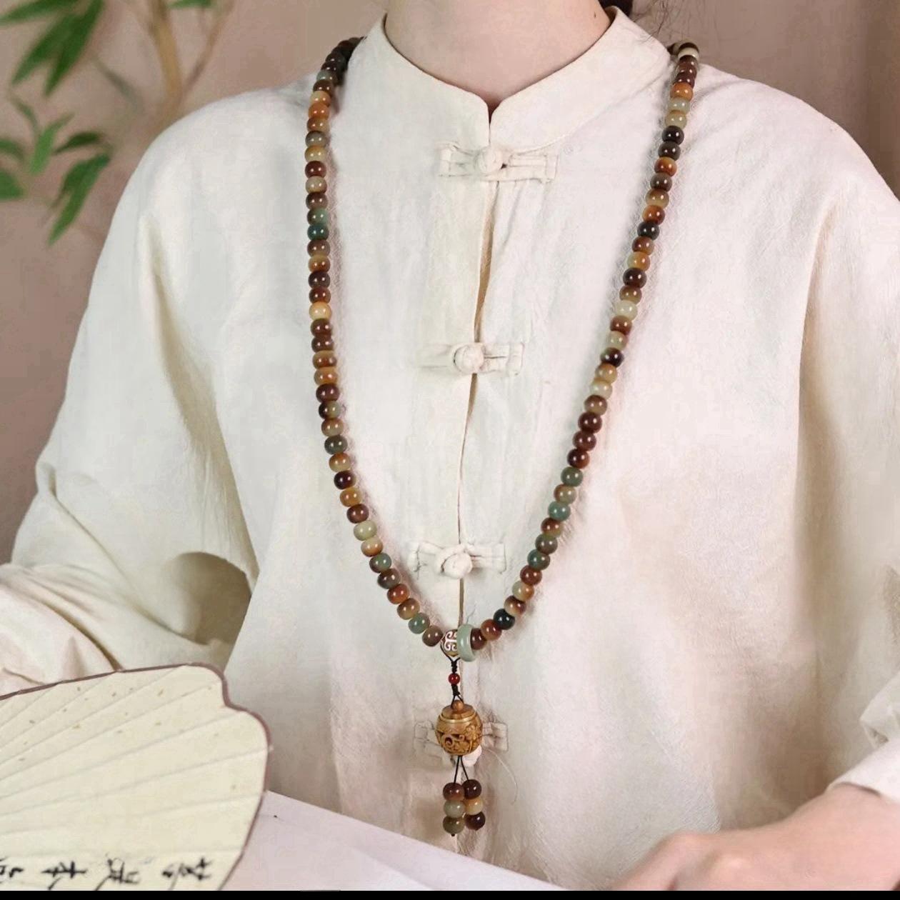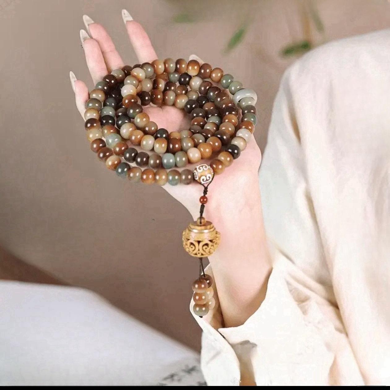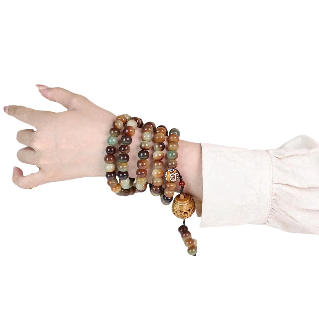 Pulsera Rosario de Raíz de Bodhi Original de 108 Cuentas Cuentas Grandes de Manzana Día de Pregunta de Dunhuang Muchos Círculos Anillo Ruyi Corredizo para Hombres y Mujeres