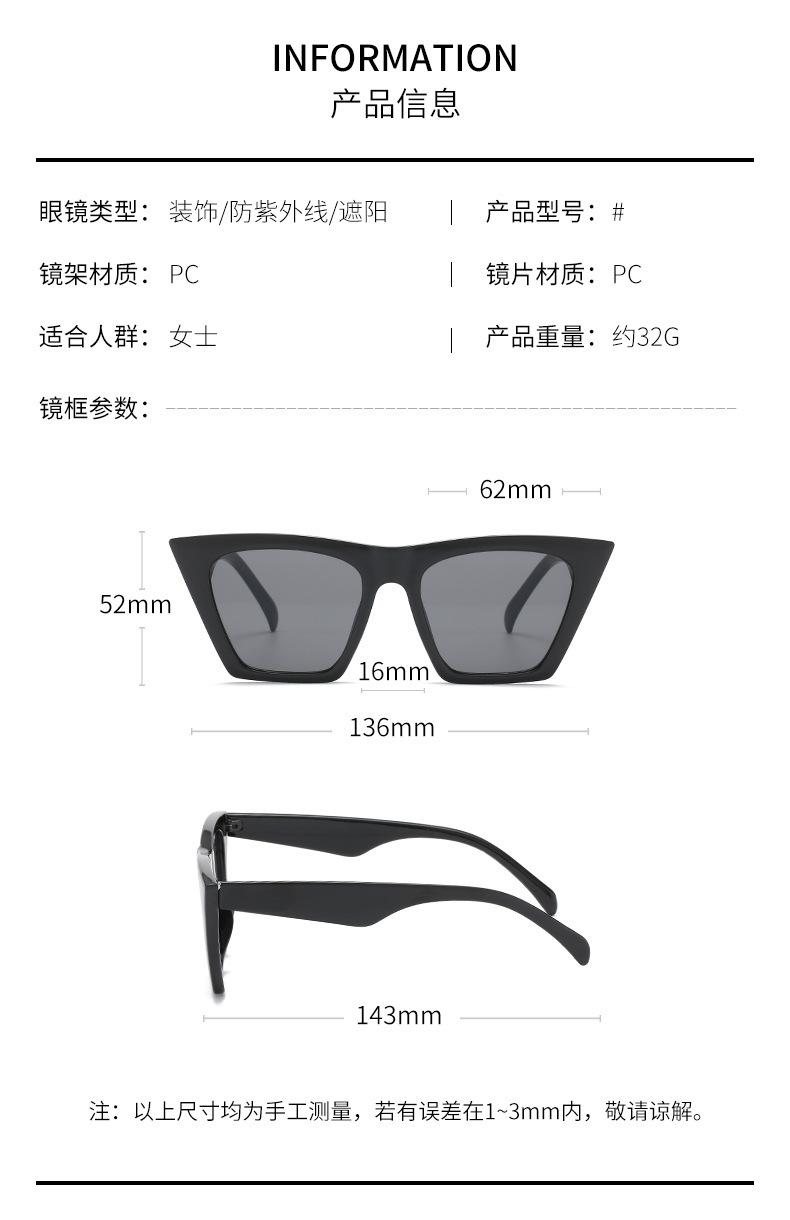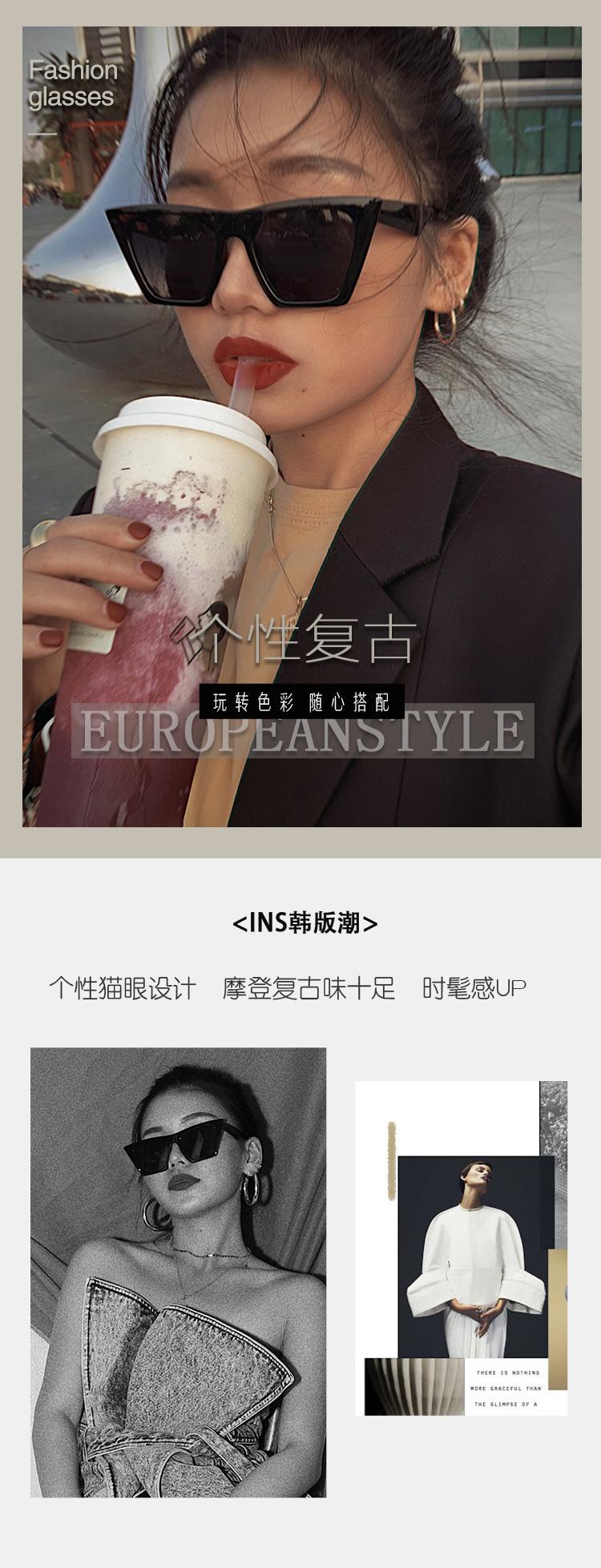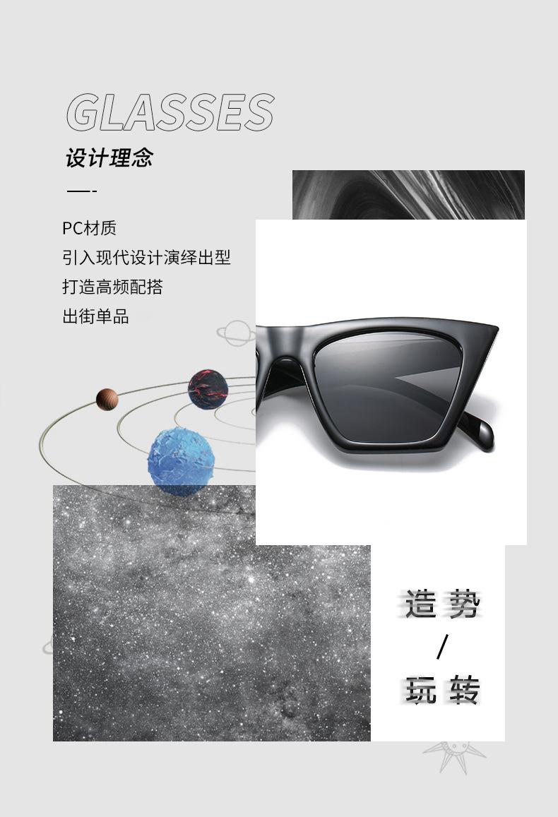 Gafas de sol estilo ojo de gato con personalidad europea y americana, estilo retro de caja pequeña, para hombre y mujer, populares en Internet para sesiones de fotos callejeras.
