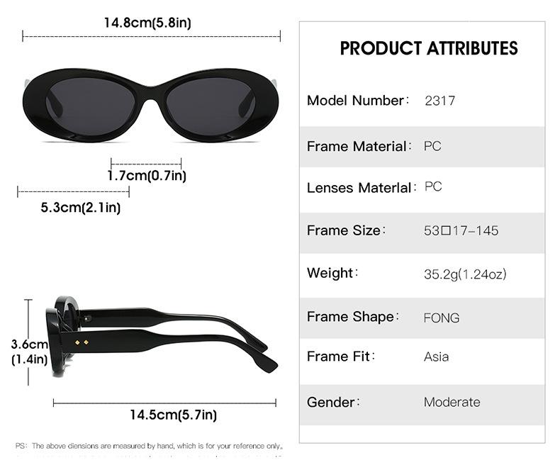 Nuevas gafas de sol con remaches sencillos 2317, gafas de sol de moda europea y americana para mujer, montura ovalada, gafas de sol gruesas y combinables.