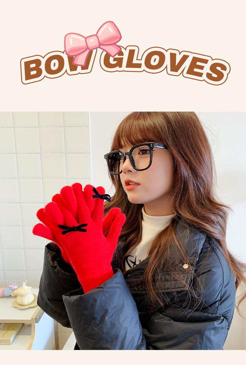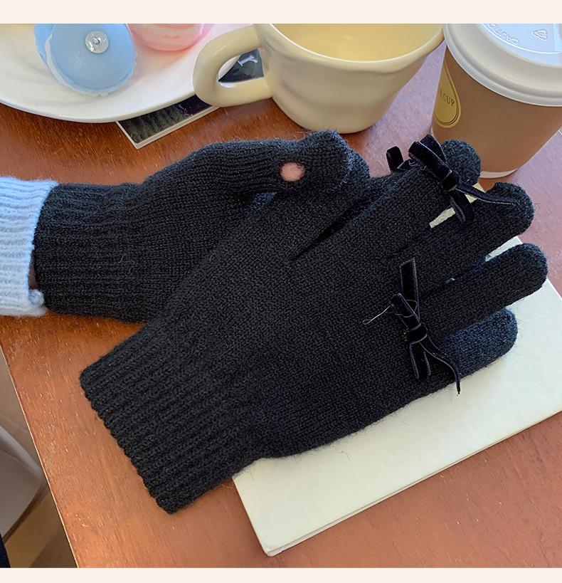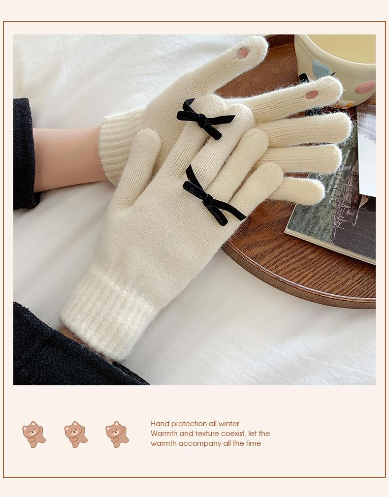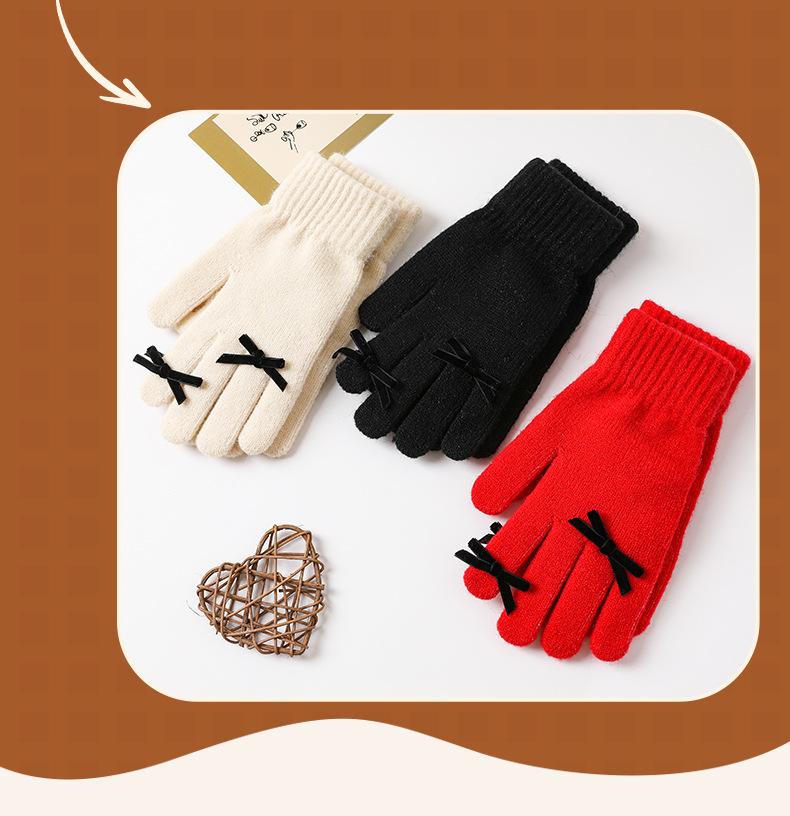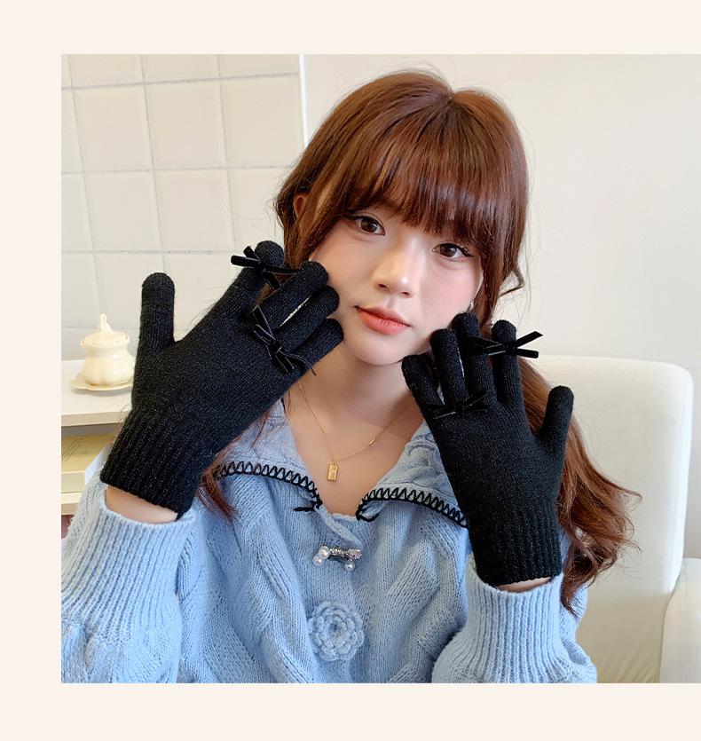 Guantes con Lazo para Mujer en Otoño e Invierno, Dulces y Lindos, Cálidos y a Prueba de Frío, Sin Dedos, Pantalla Táctil, Guantes de Lana Tejidos de Dedos Completos